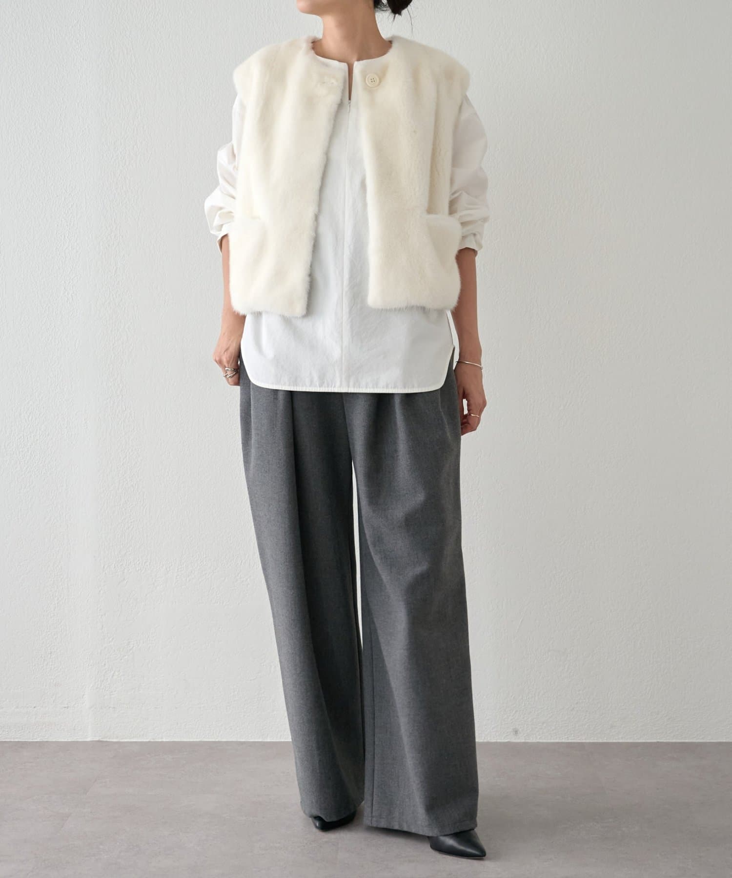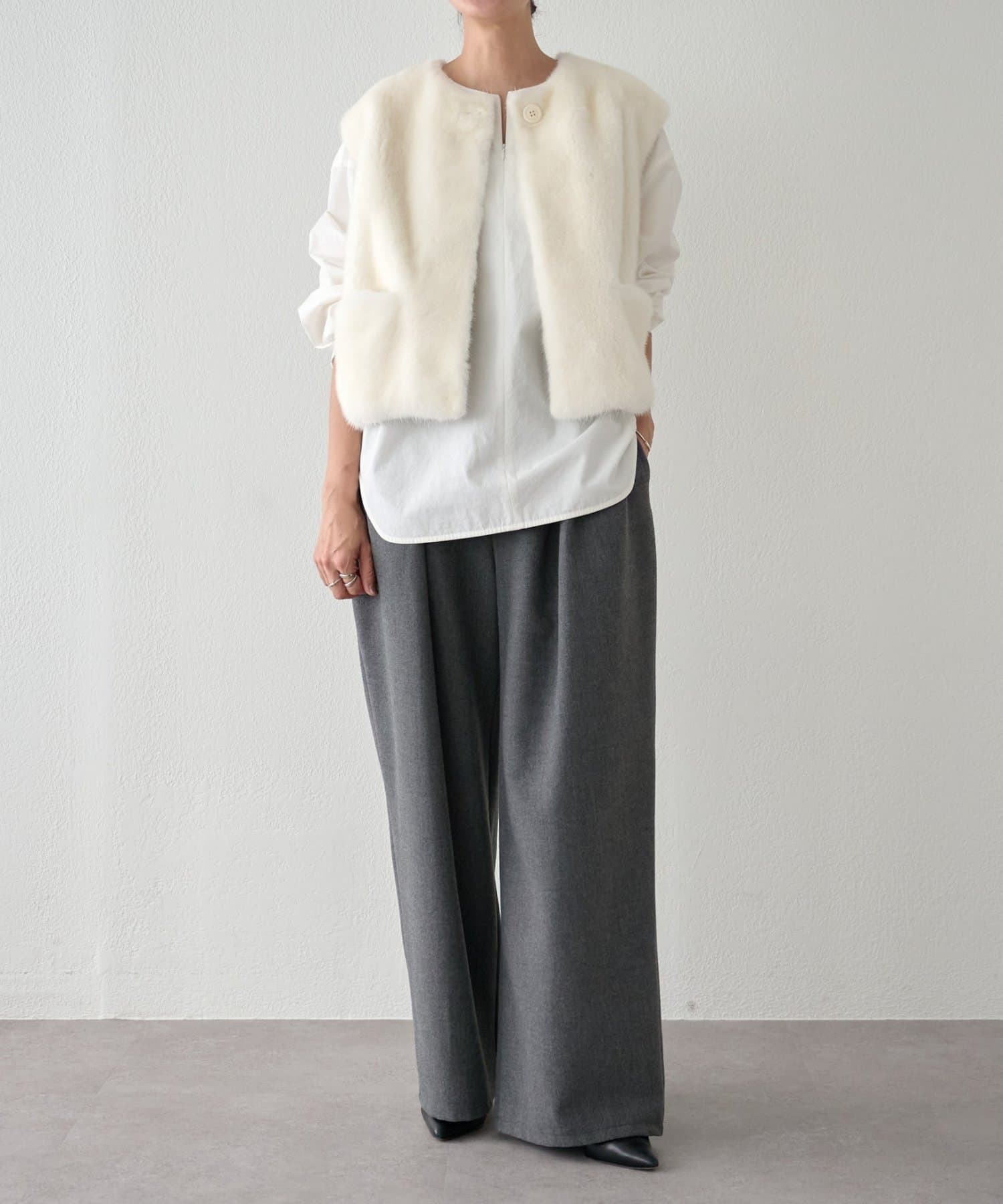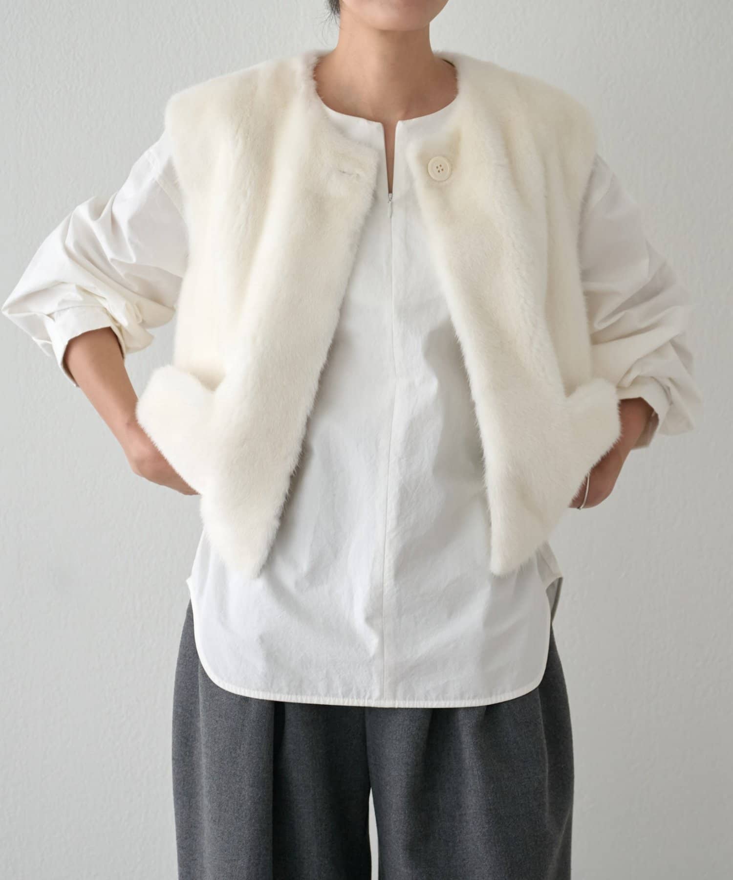 ふんわりとした光沢と、手に吸い付くような柔らかさが魅力のミンクファーを上品なベストに仕立てました。