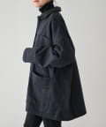 ヒップラインまで隠れる着丈と、肩を落としたオーバーシルエットは一枚でサマになり