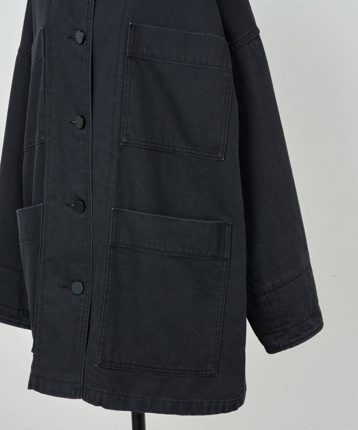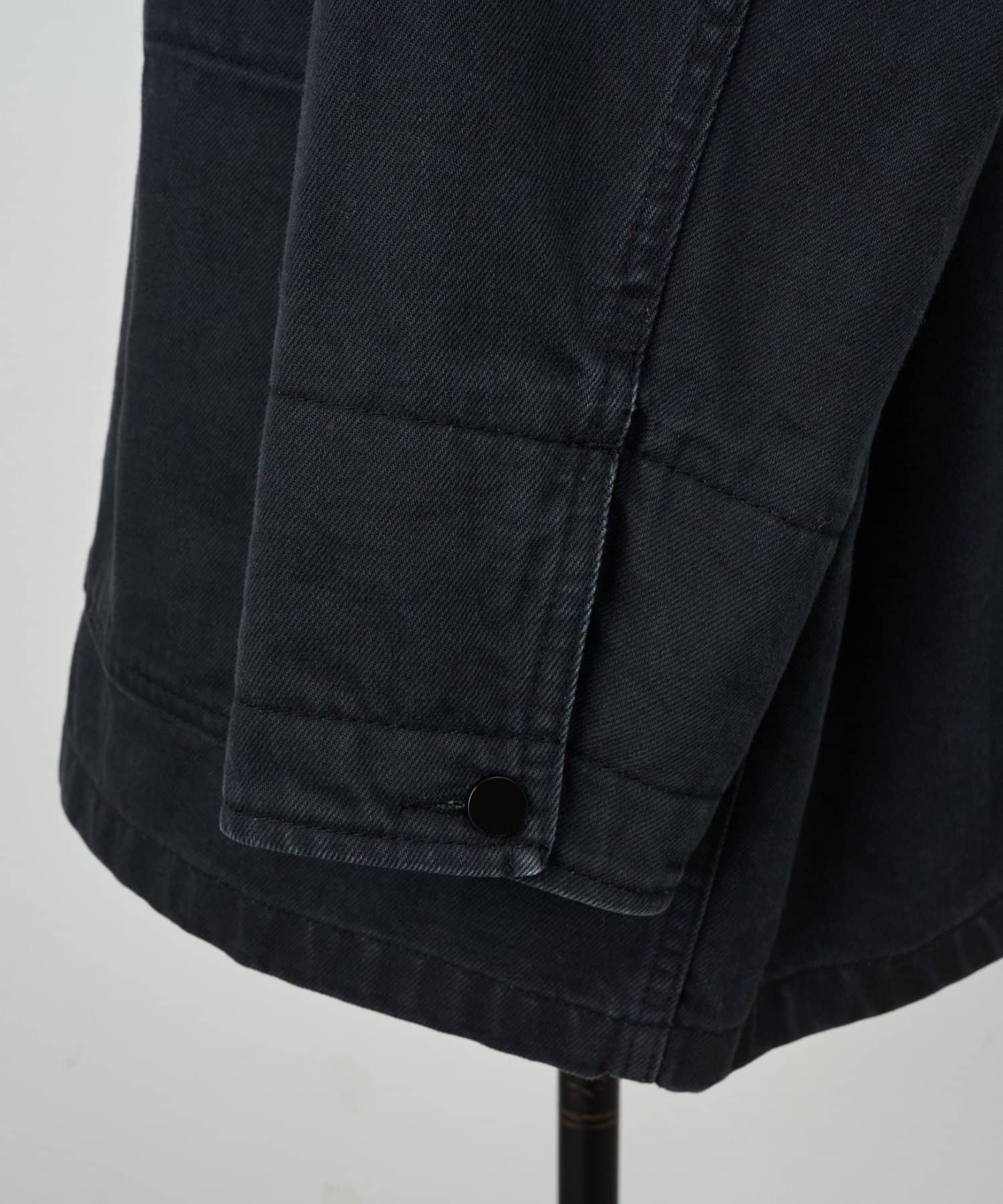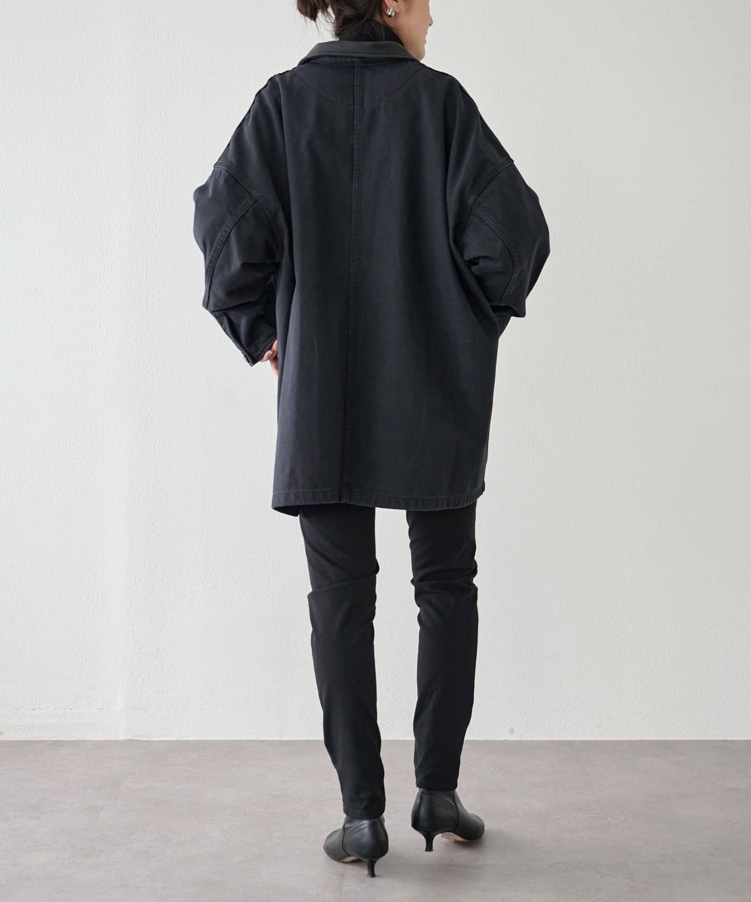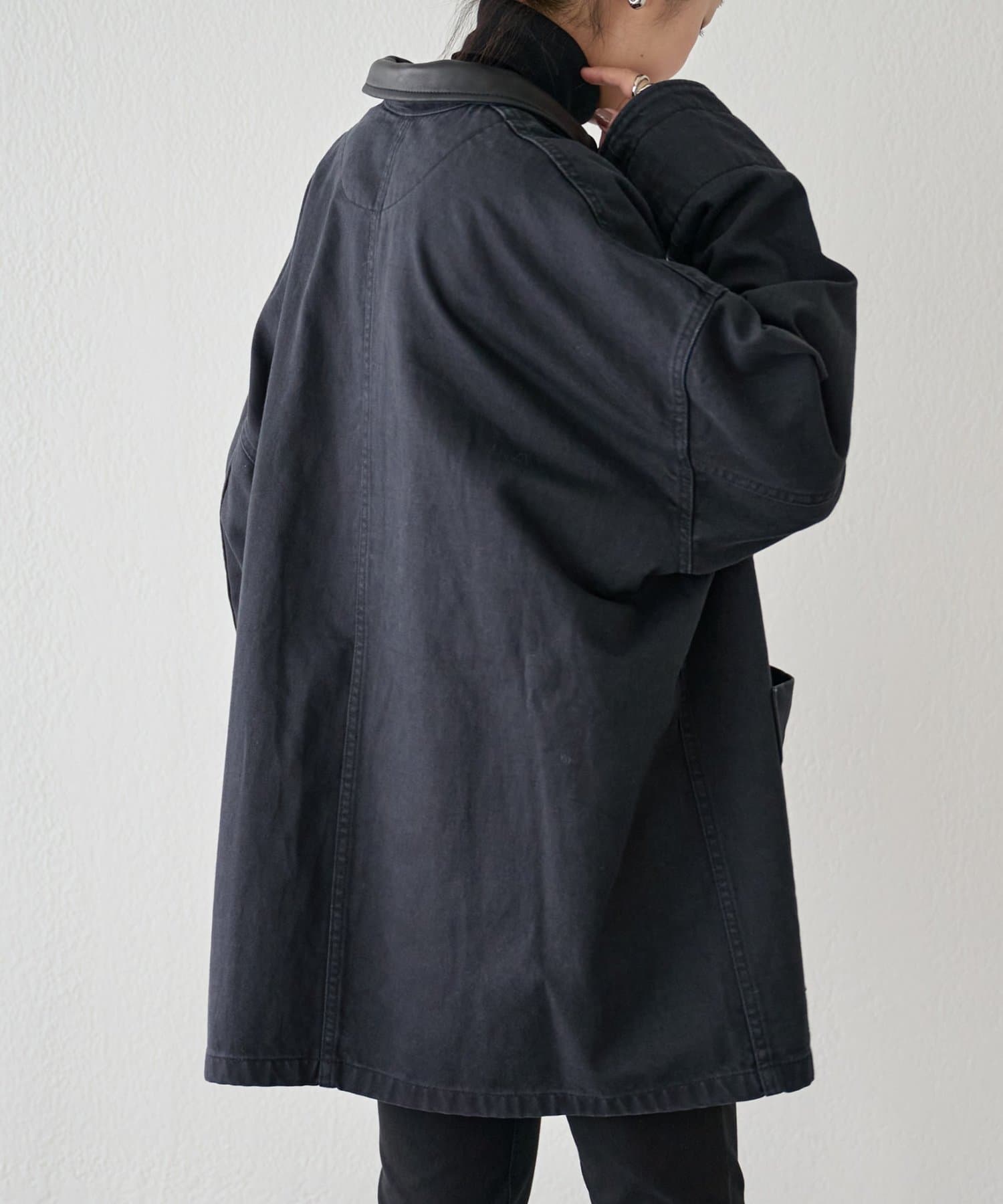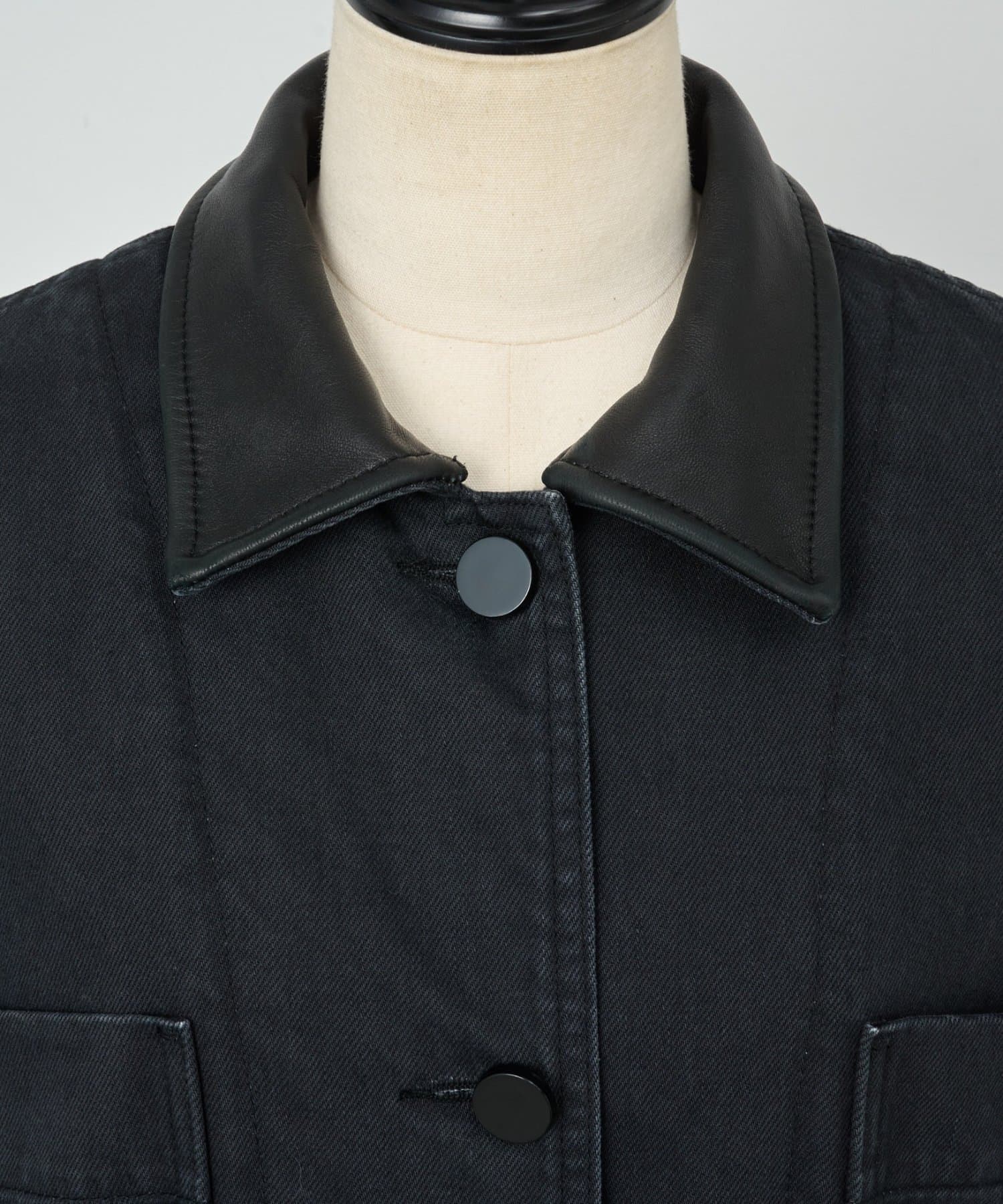 衿元と袖口のレザーが目を惹くワークジャケット。