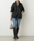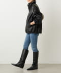 身頃はゆとりのあるシルエットで、厚手のニットの上からも着脱しやすく、着丈は腰にかかる長さで細身のパンツやロングブーツとも好相性。
