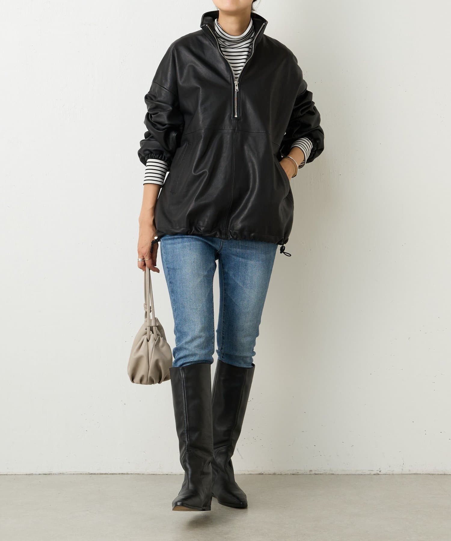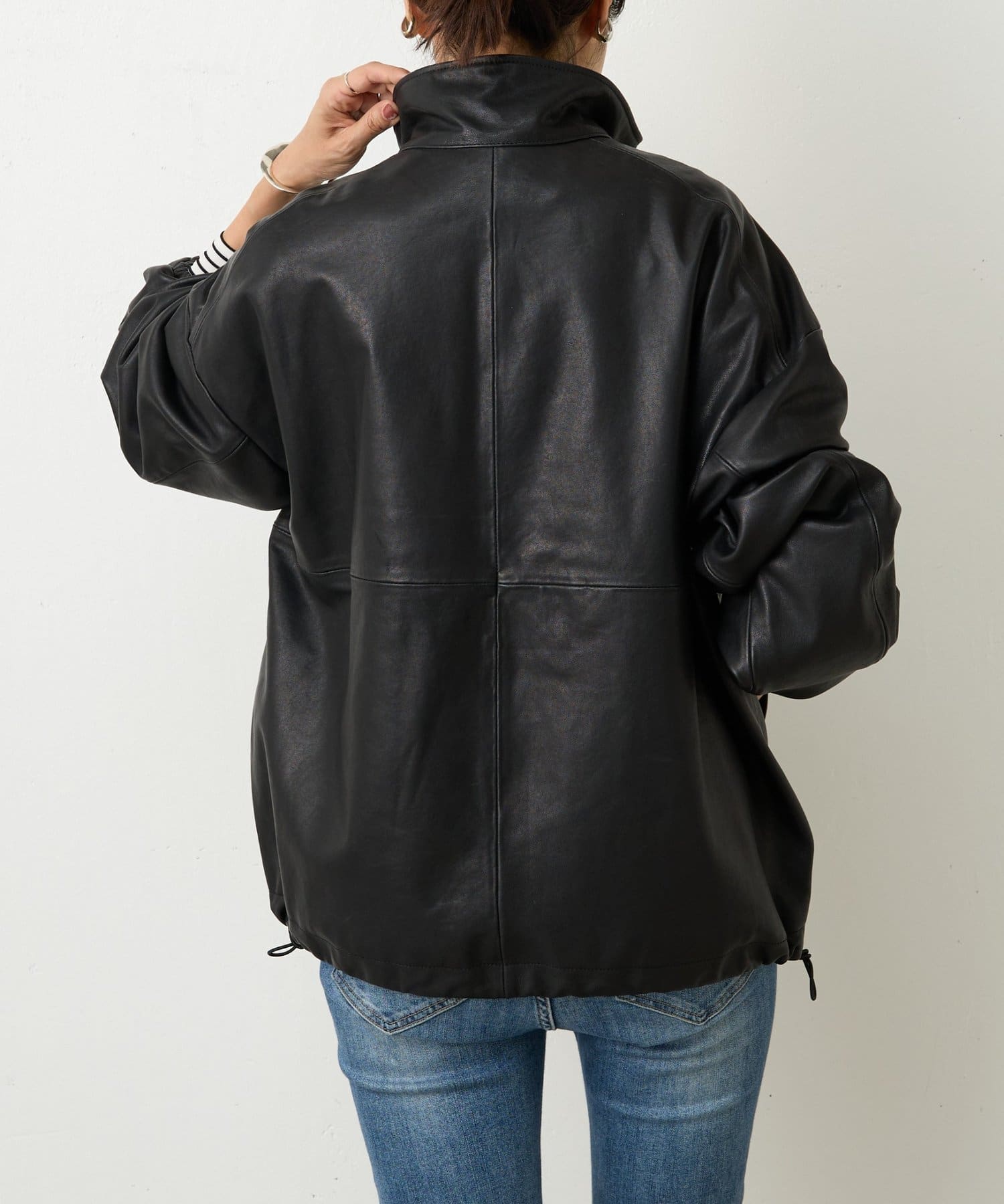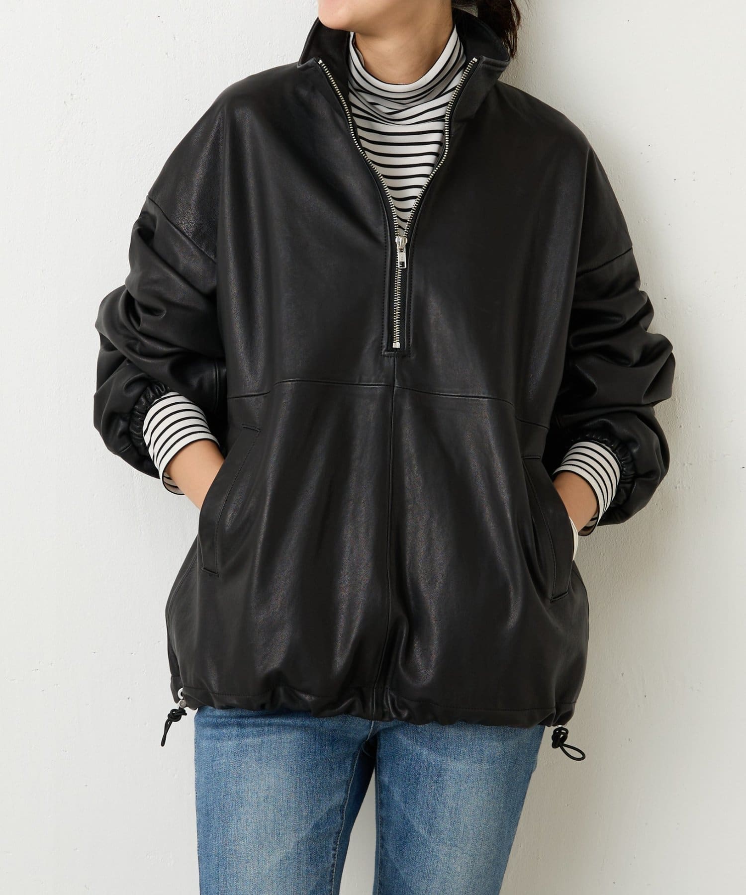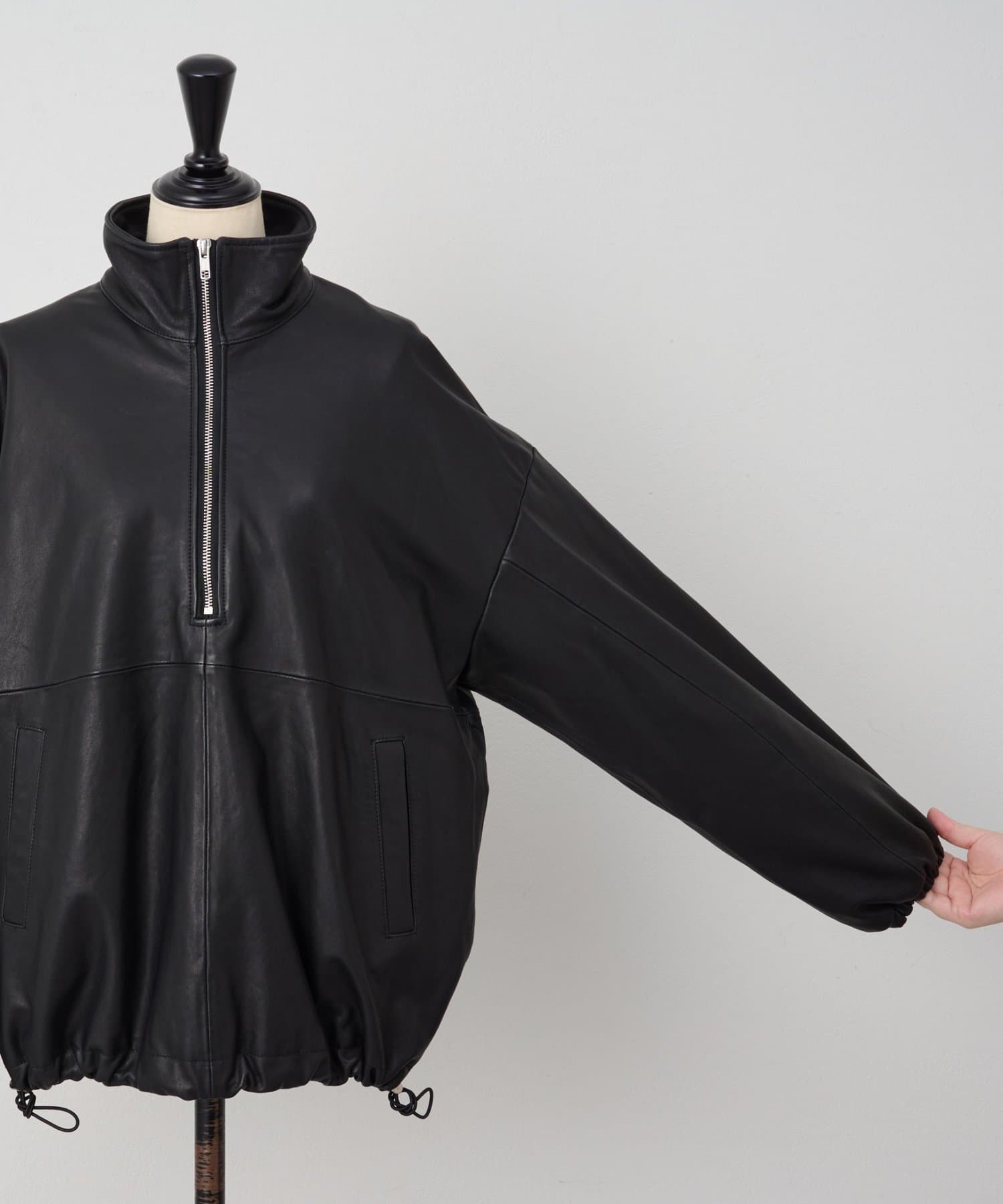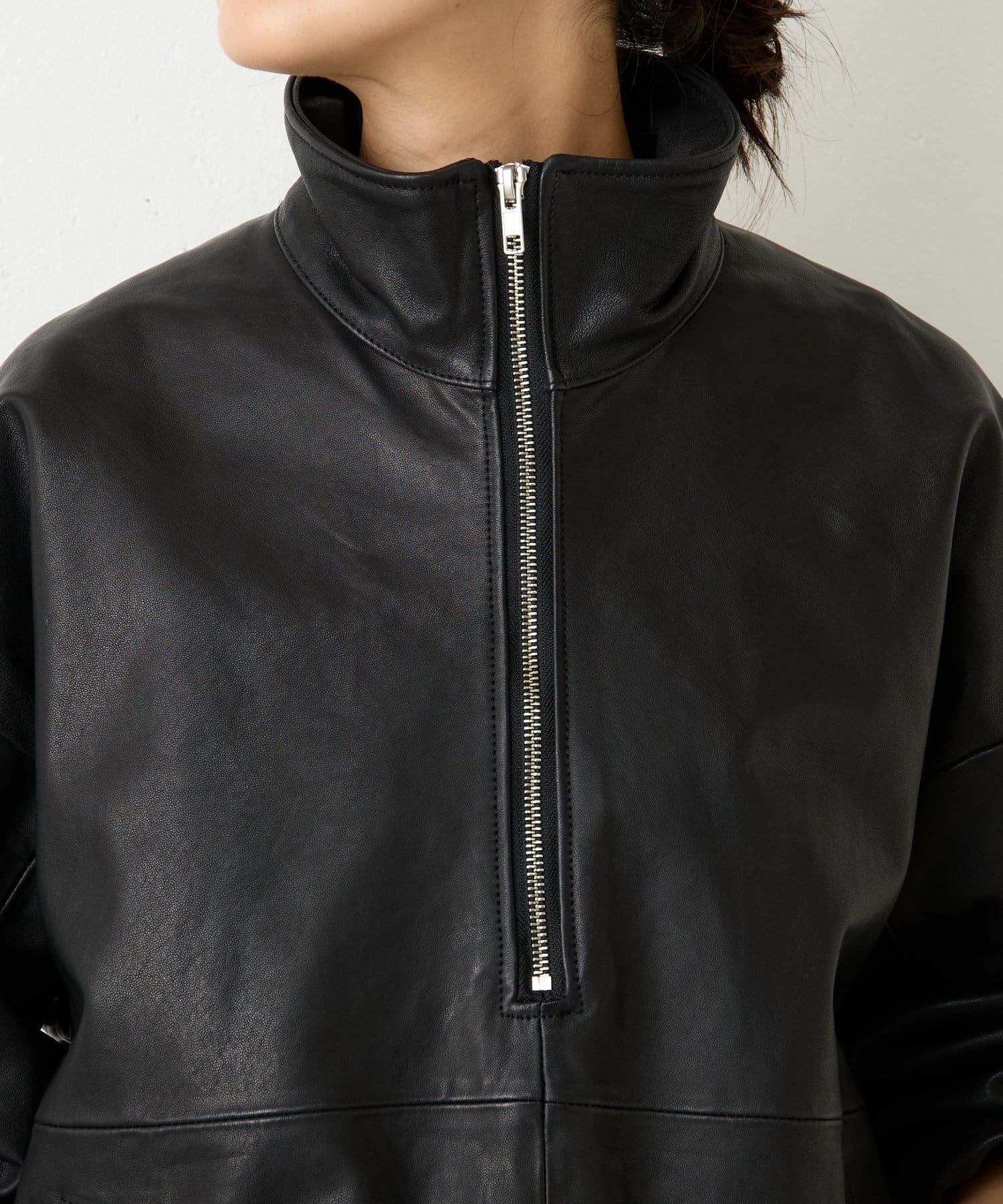 ラムレザーを使用したハーフジップのアウター。