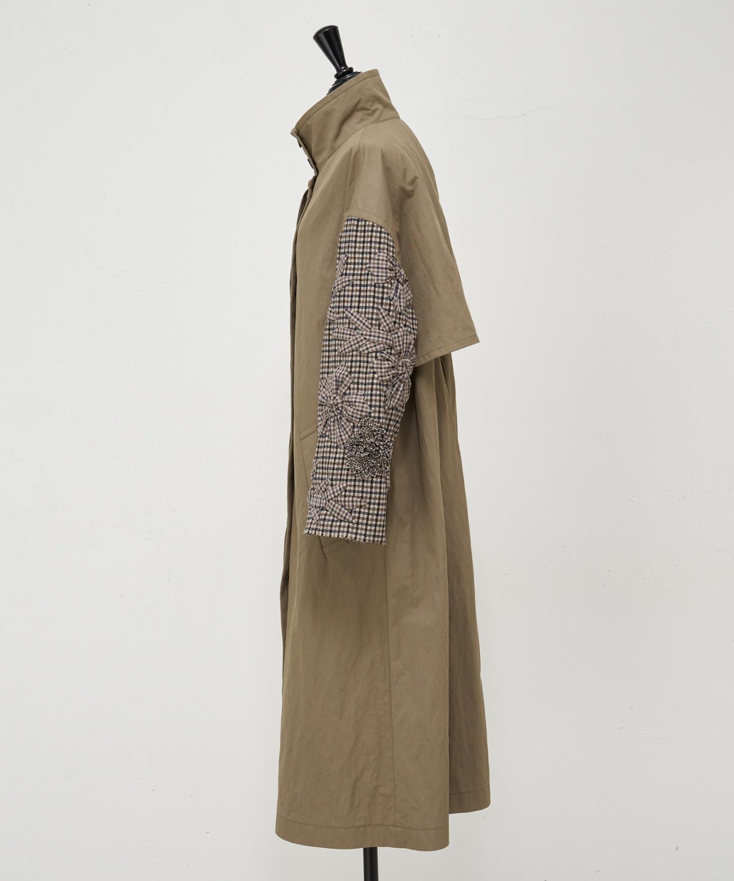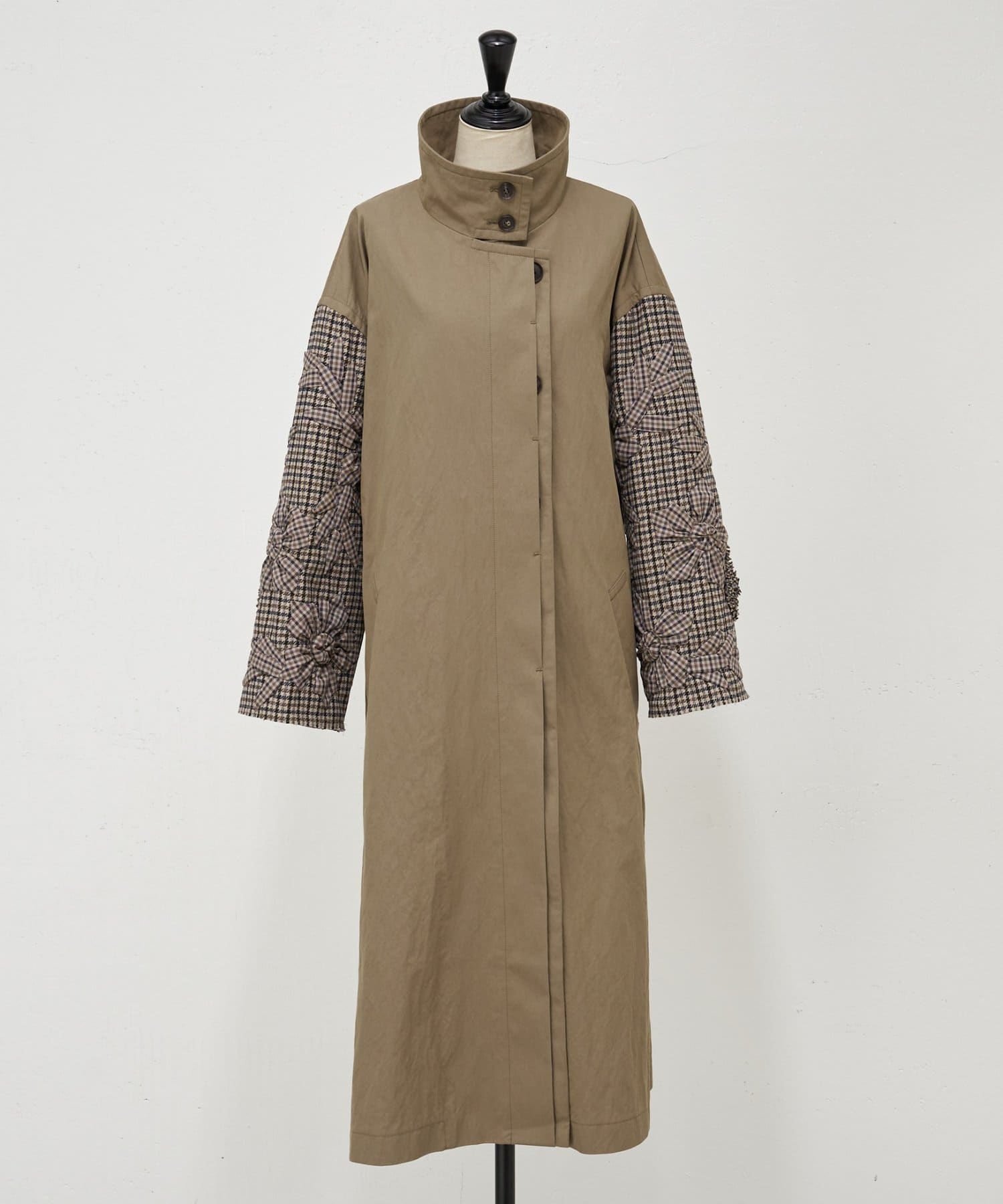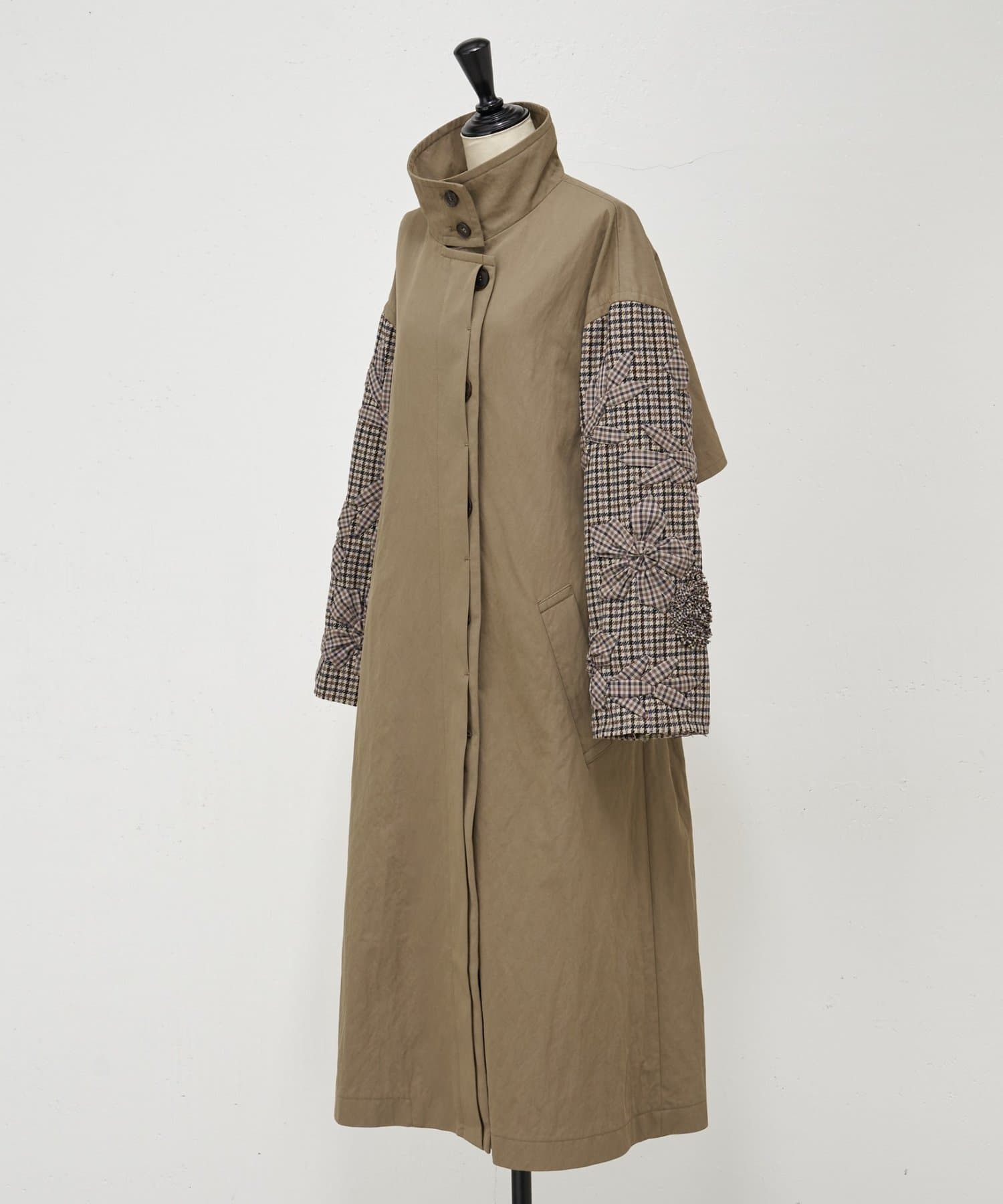 袖にはチェック柄に繊細な花の立体刺繍を重ね、職人の手仕事を思わせる奥行きと温もりを添えました。