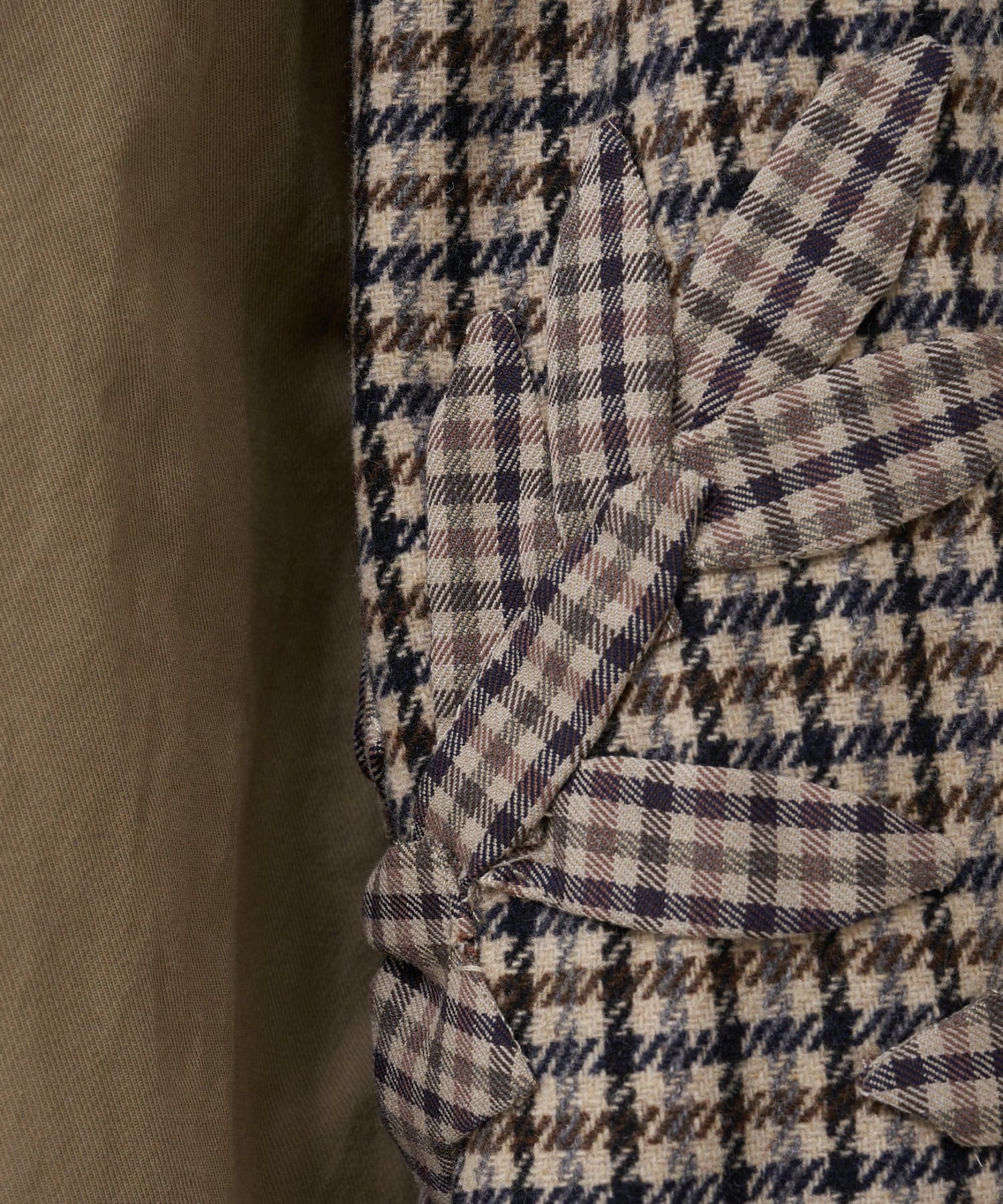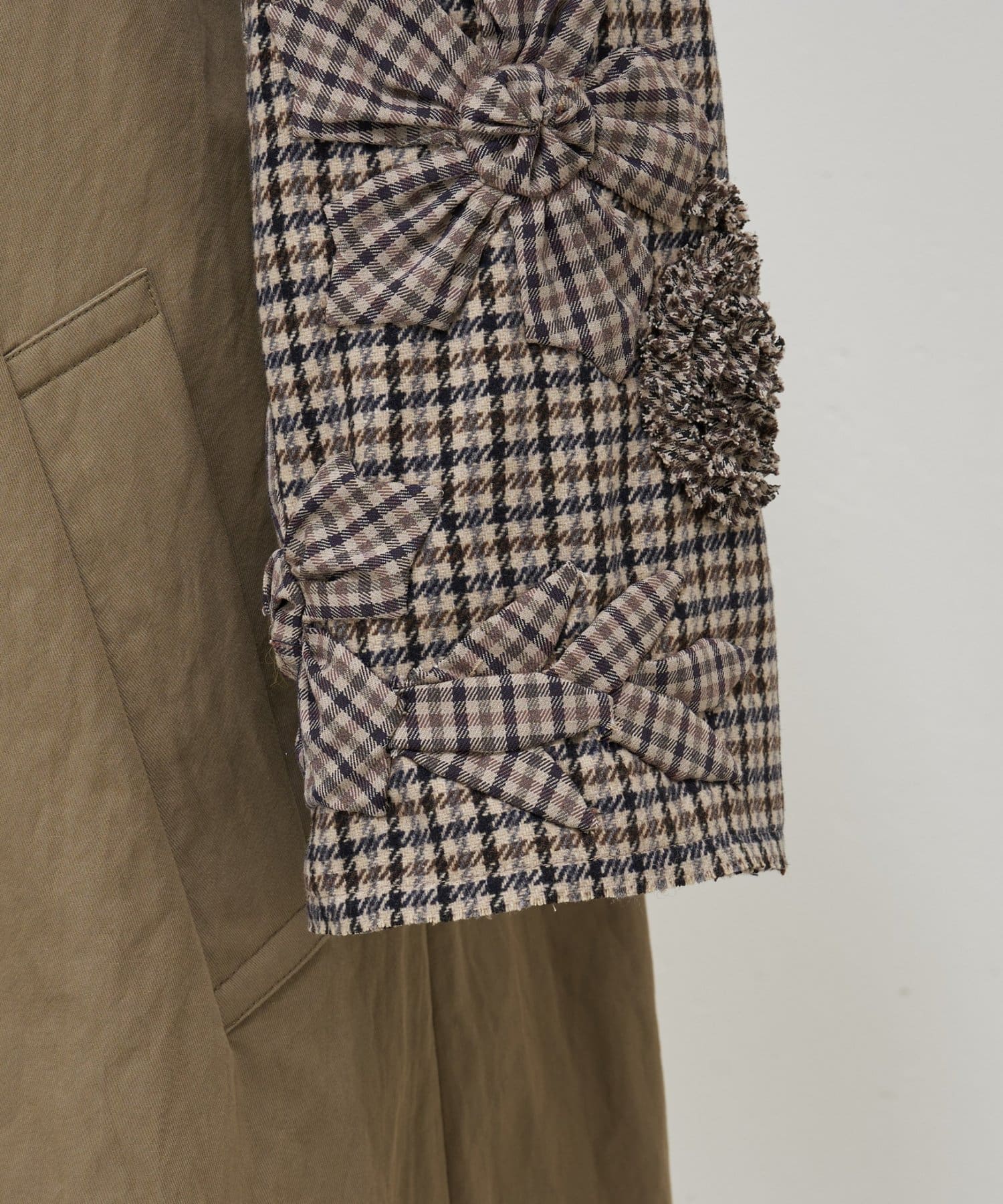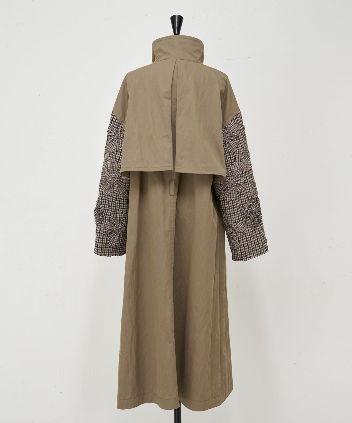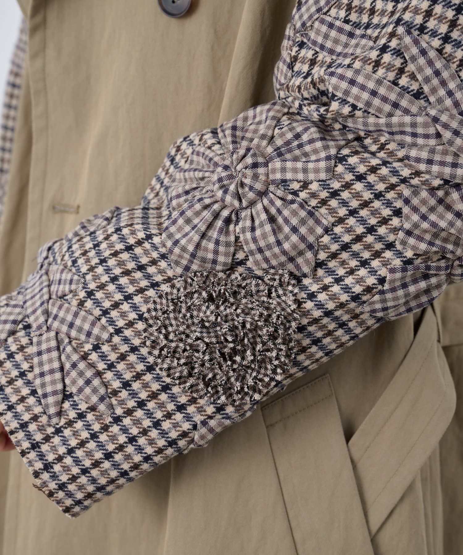 袖にはチェック柄に繊細な花の立体刺繍を重ね、職人の手仕事を思わせる奥行きと温もりを添えました。