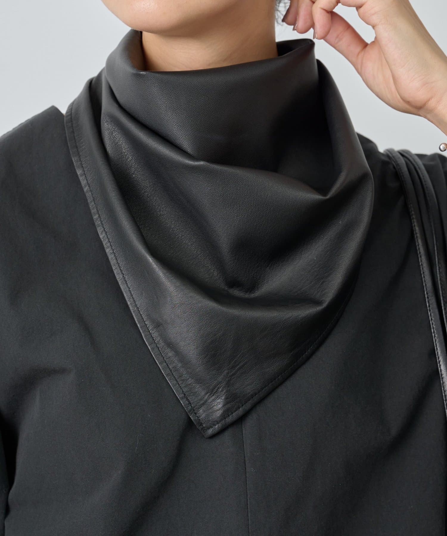 肌に吸い付くようなとてもなめらかな手触りのレザースカーフ。