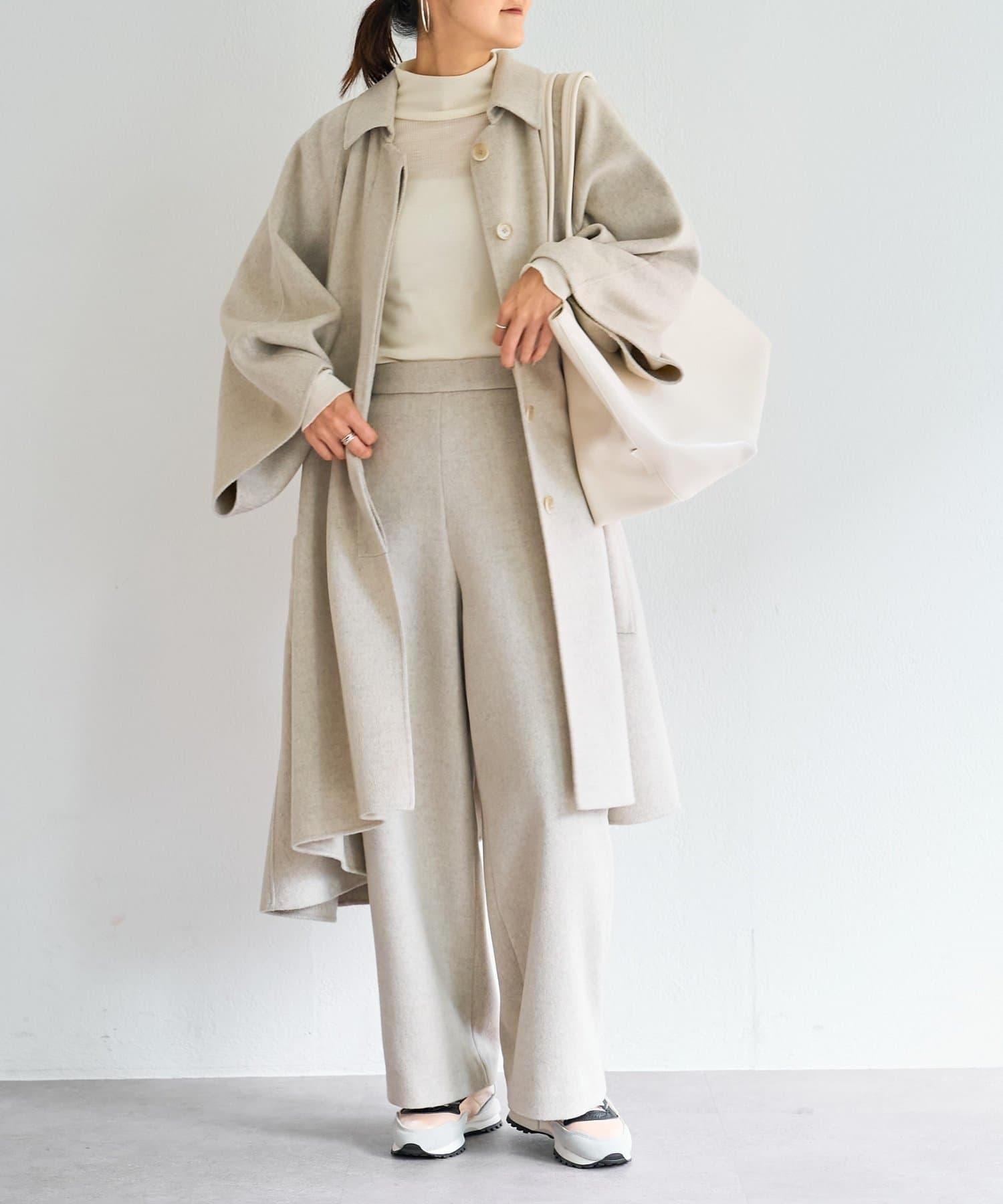 二重生地ならではの適度な厚みと保温性があり、ウール×カシミヤ混紡素材で暖かさも確保してくれます。