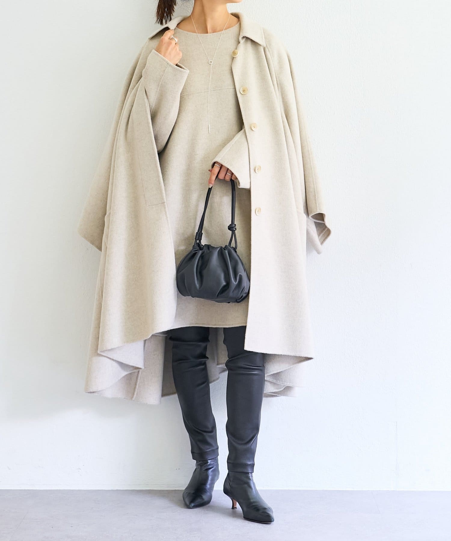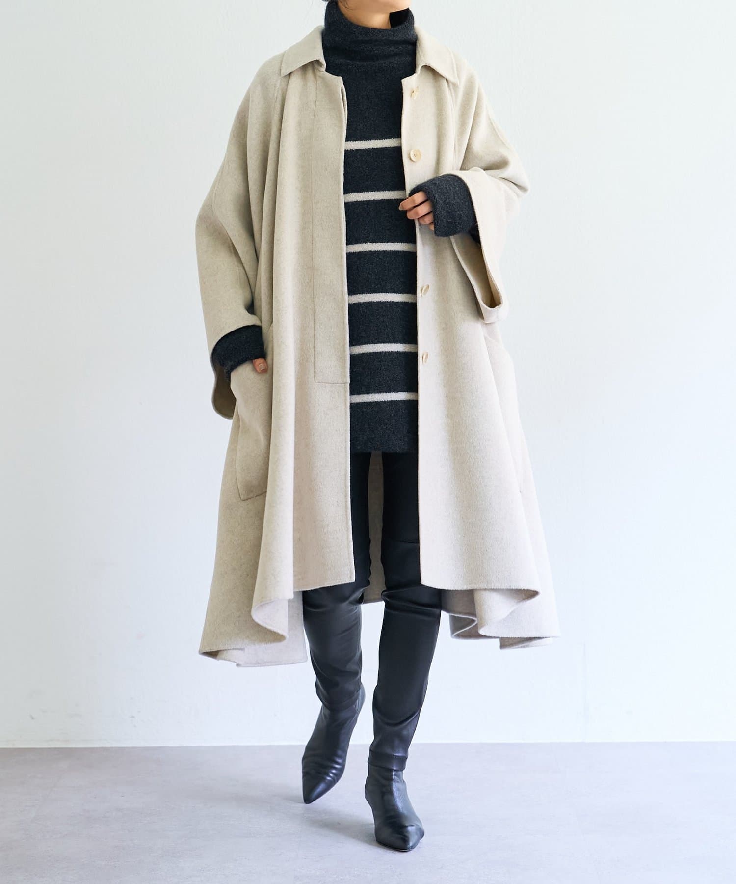 たっぷりとしたボリューム感が魅力の「15 quinze」のリバーフレアーコート。