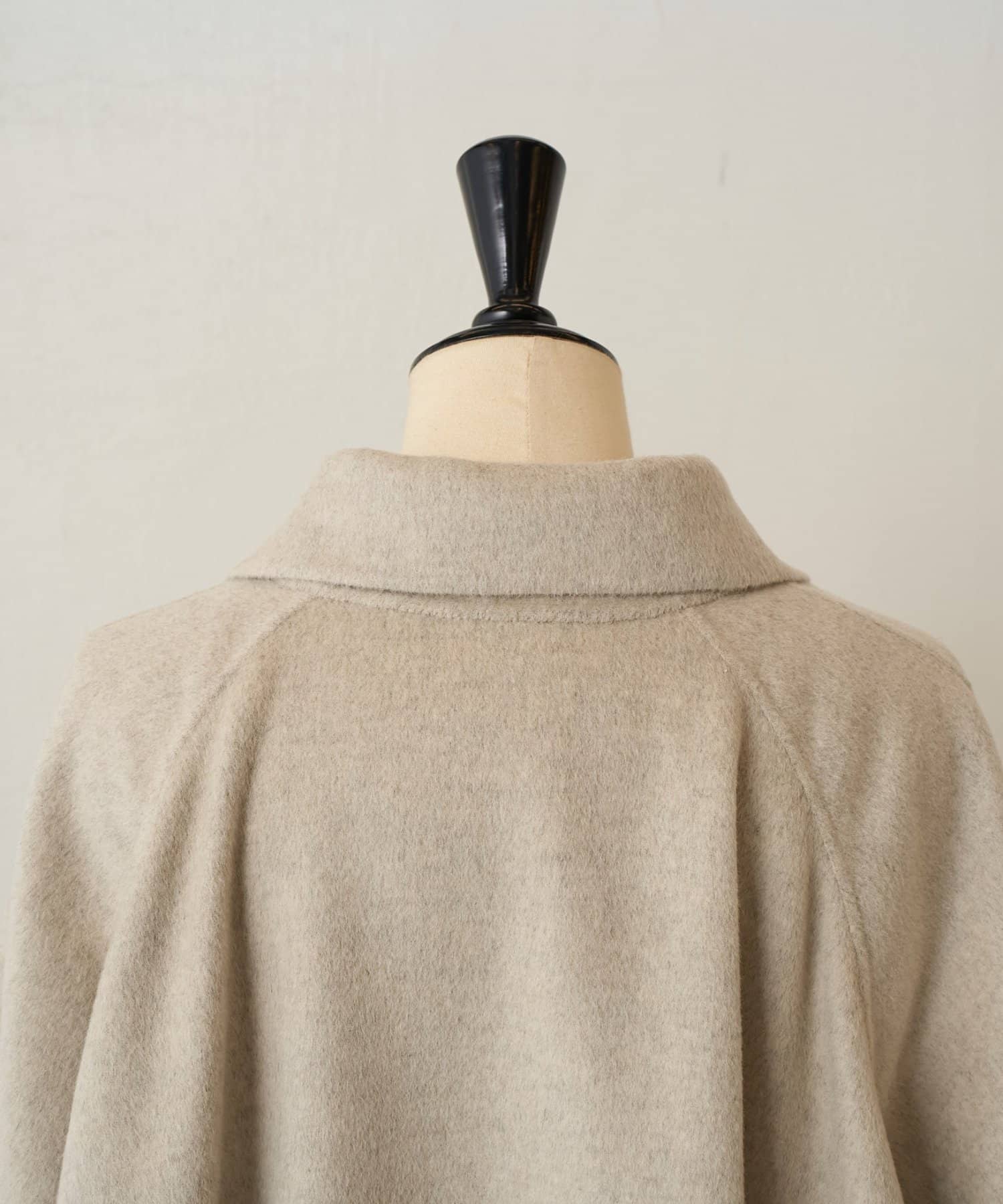 袖まわりはラグランスリーブで、袖幅にゆとりがあるので、ボリューム感のあるニットの上からもゆとりがあるシルエット。