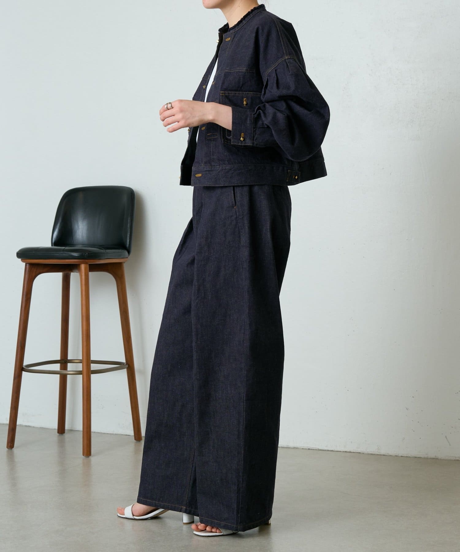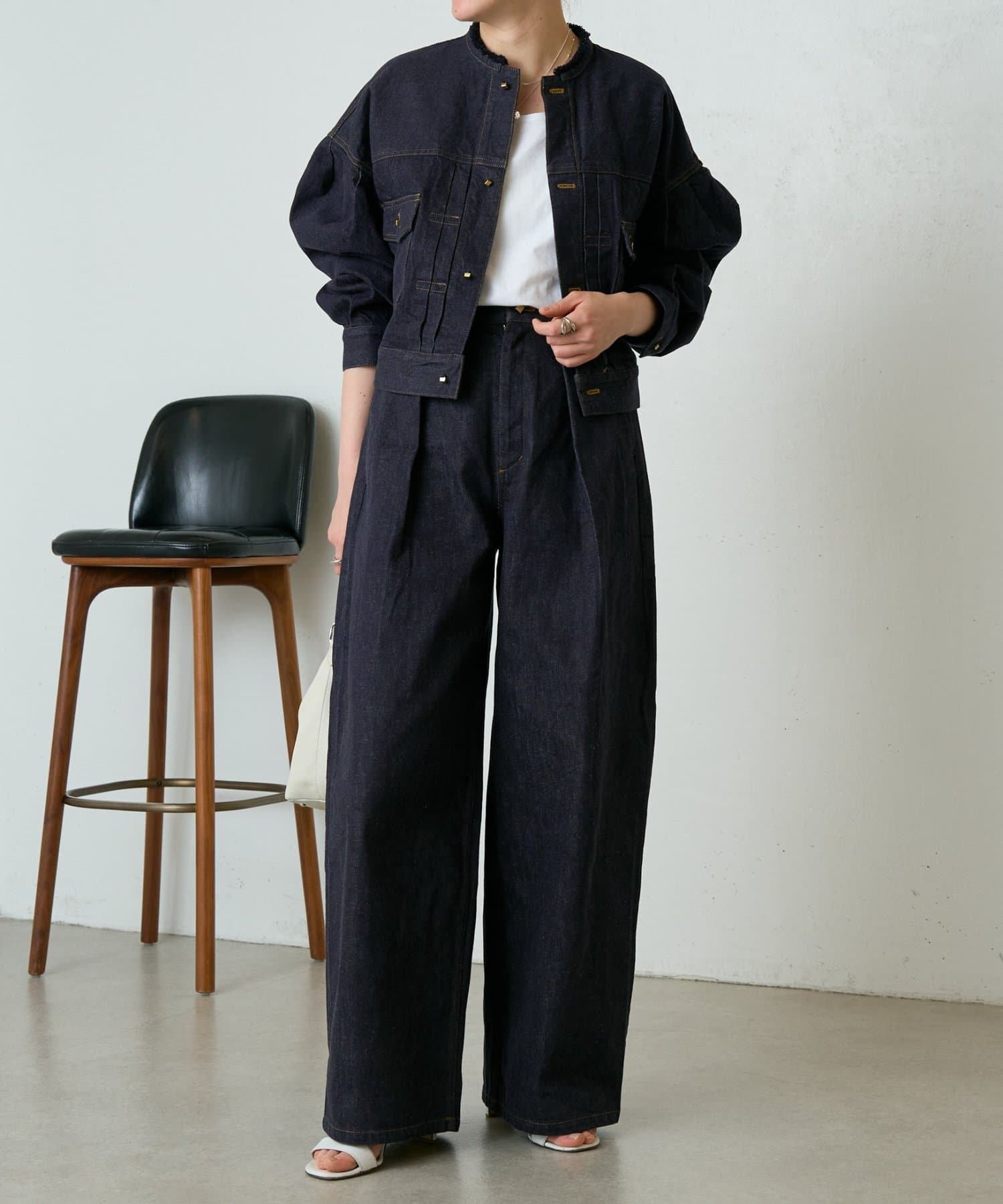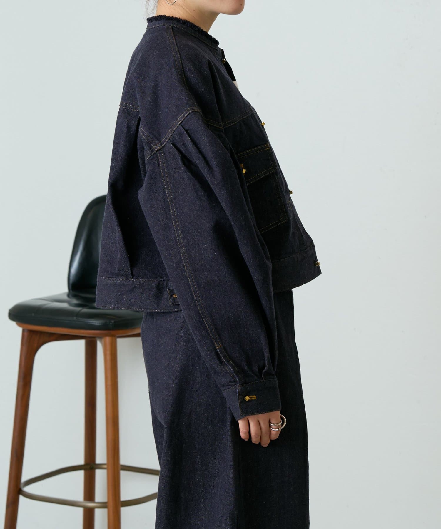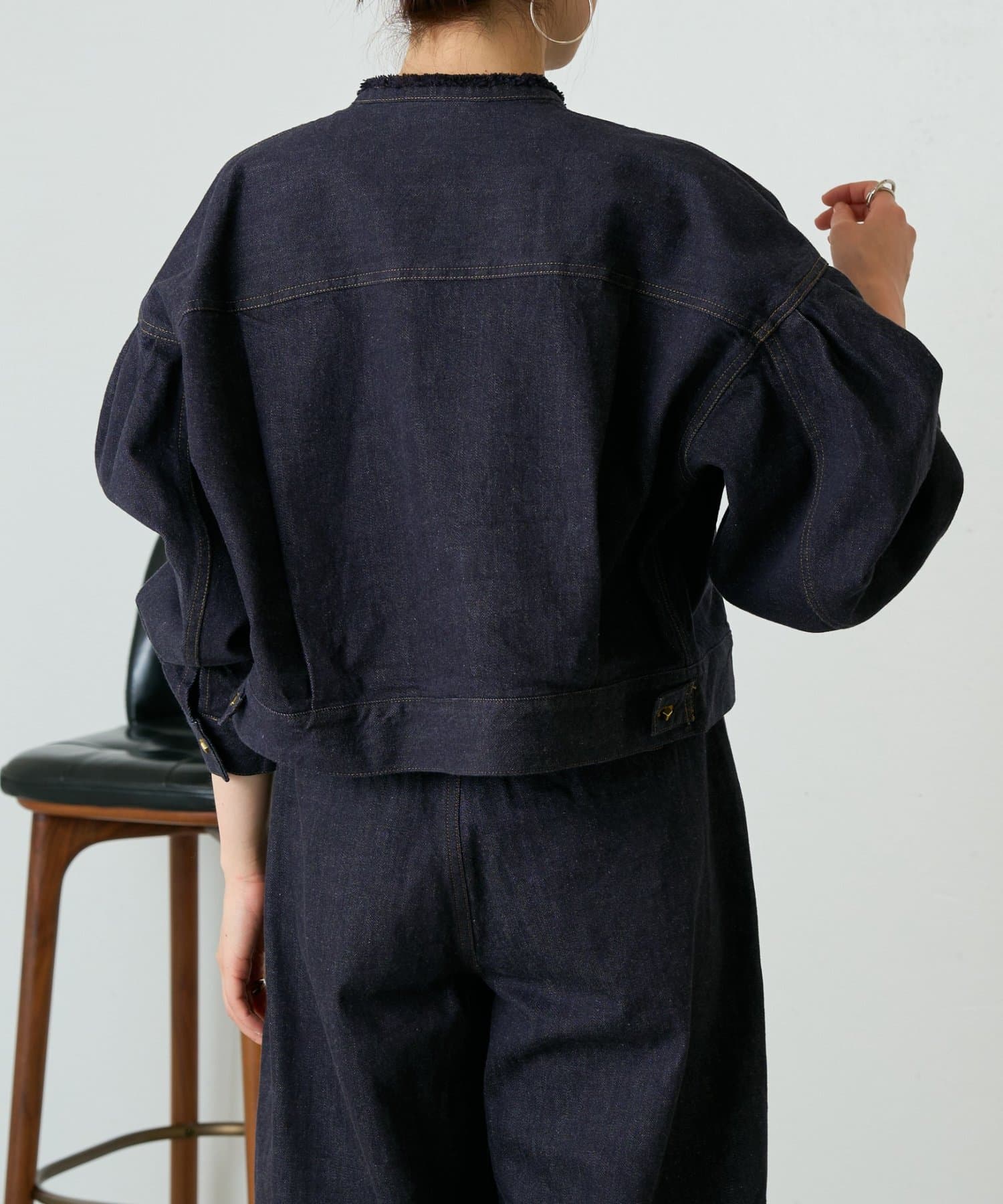 立体的な袖のシルエットが目を惹くデニムジャケット。