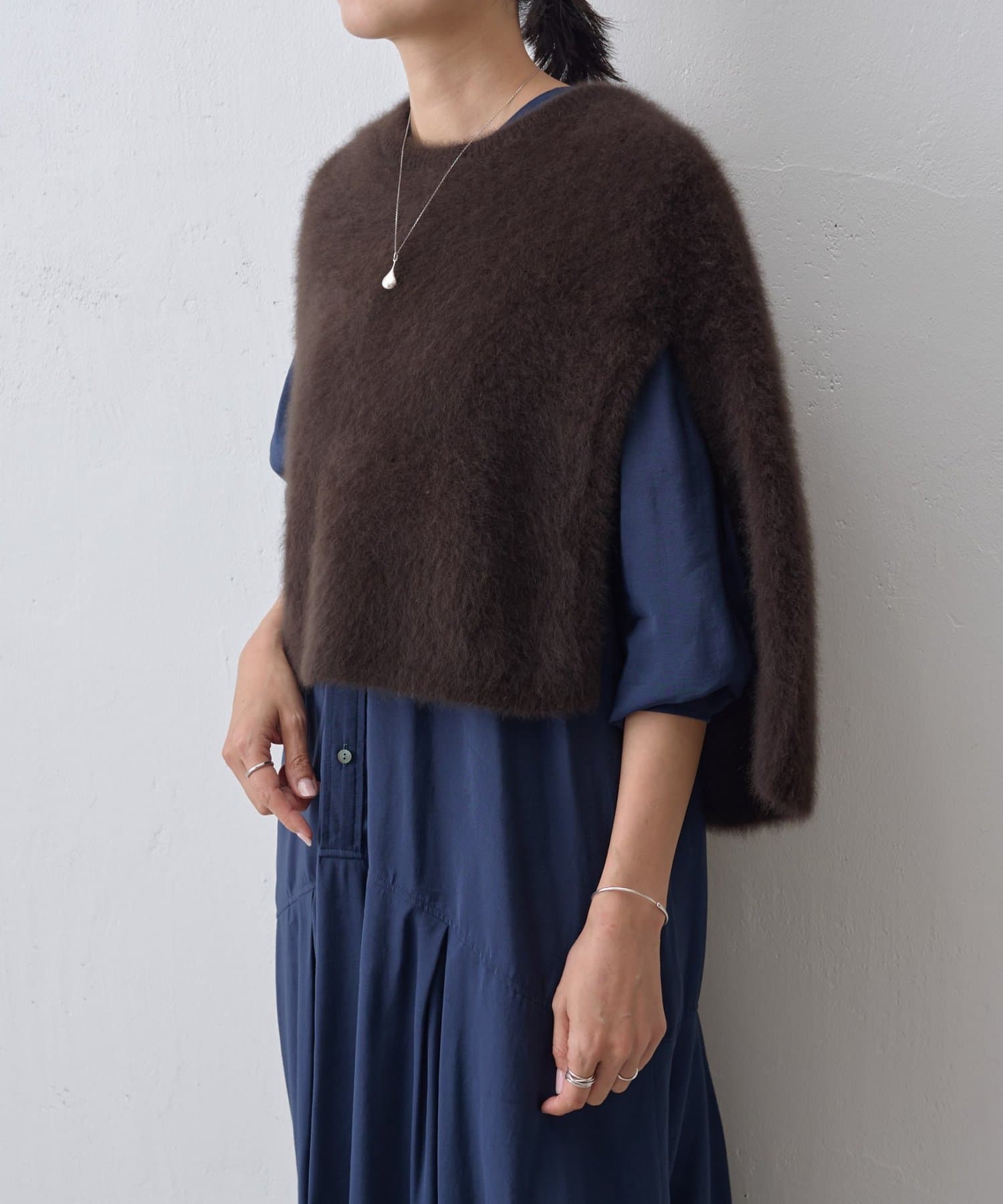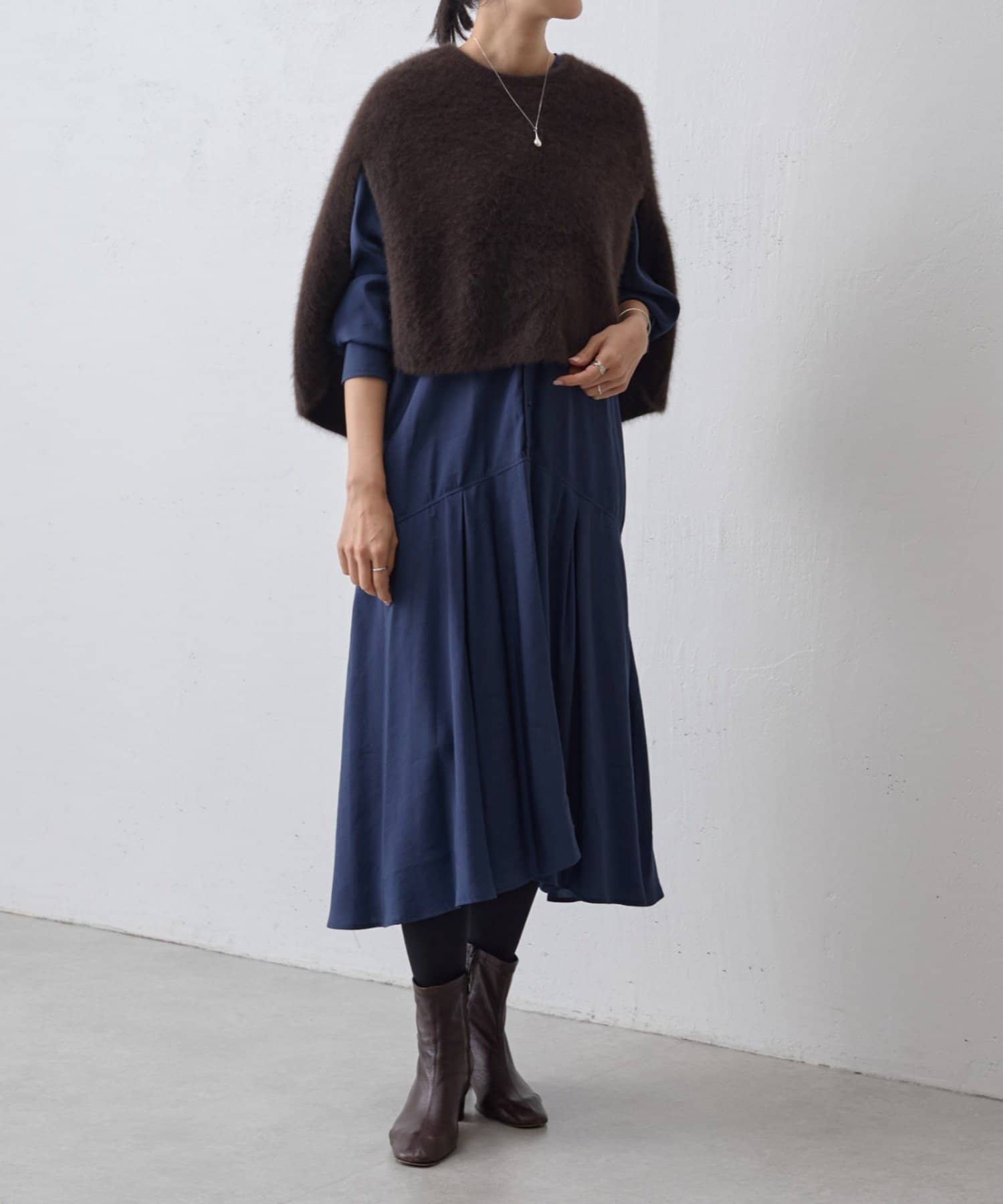 ネイビー×ファーニットポンチョ(ブラウン) / 身長166cm・Fサイズ着用 -