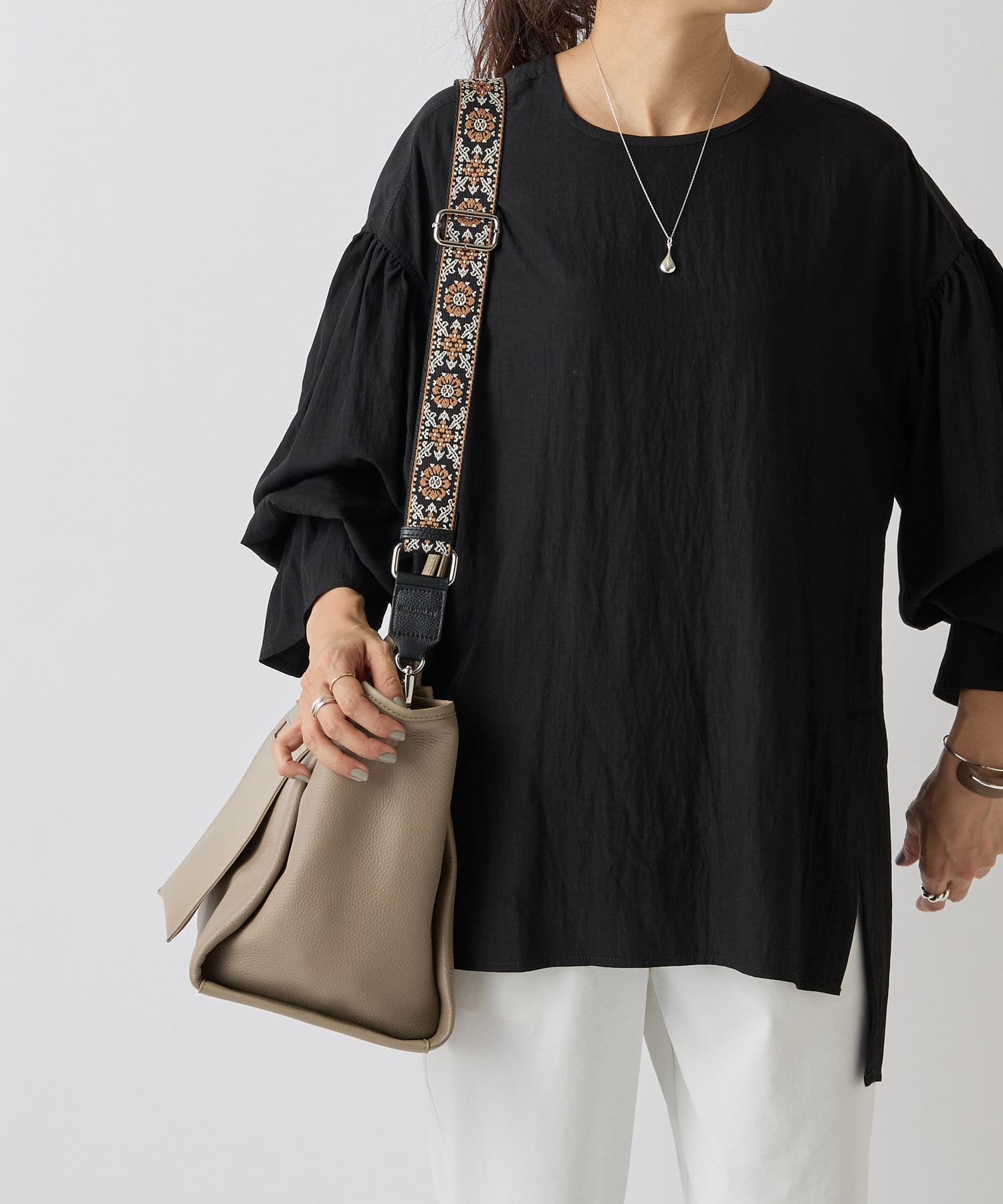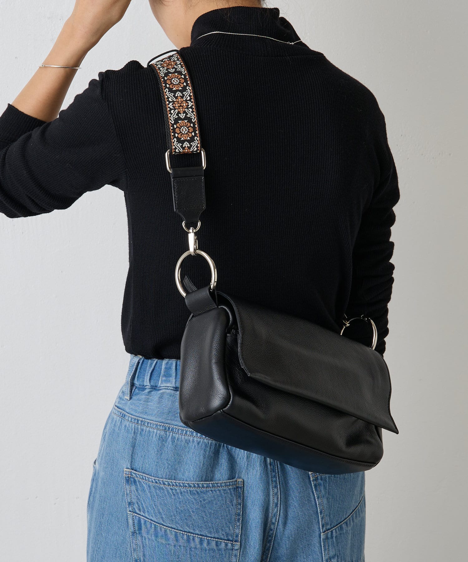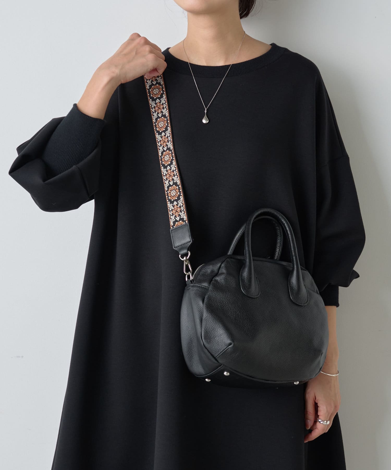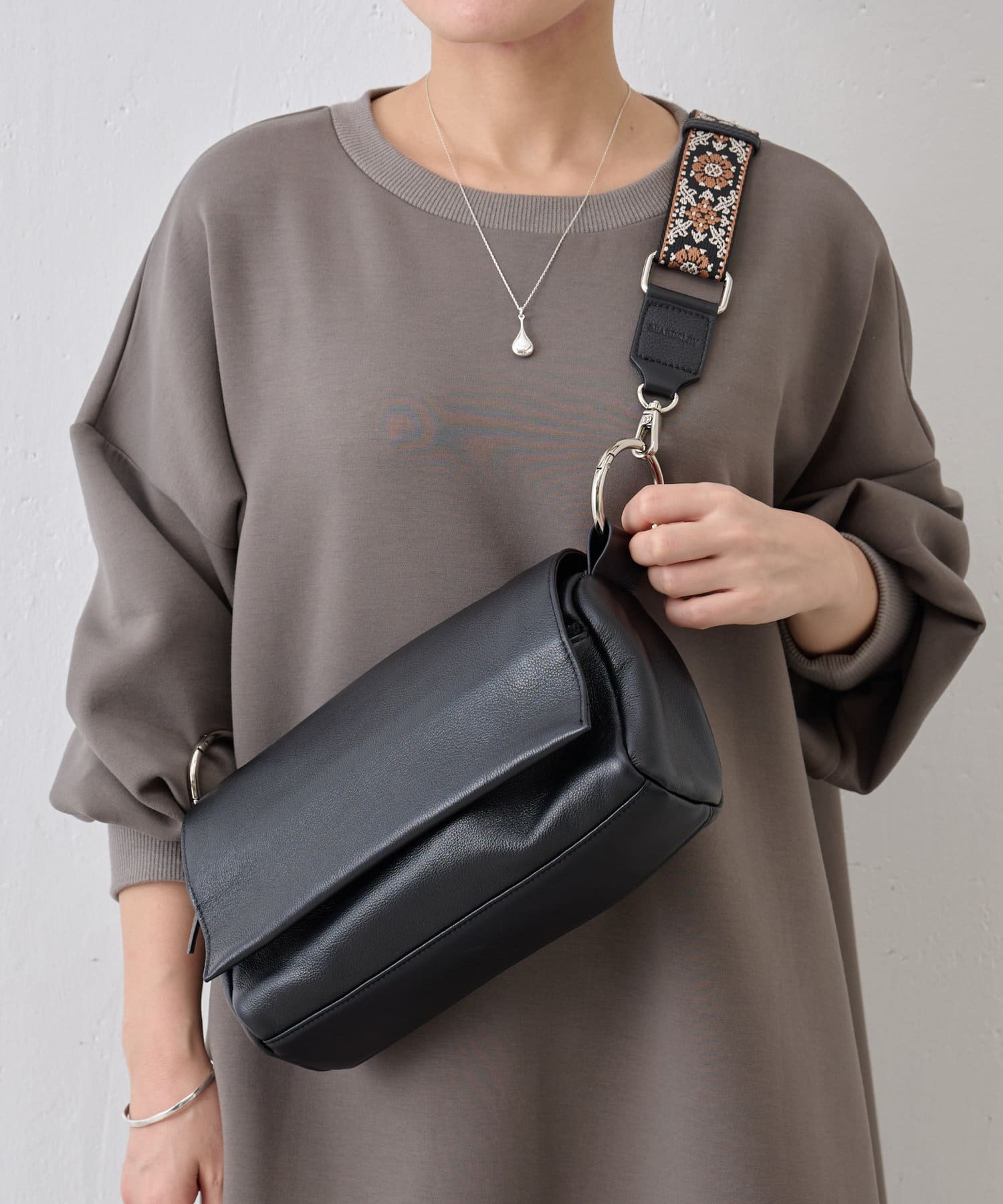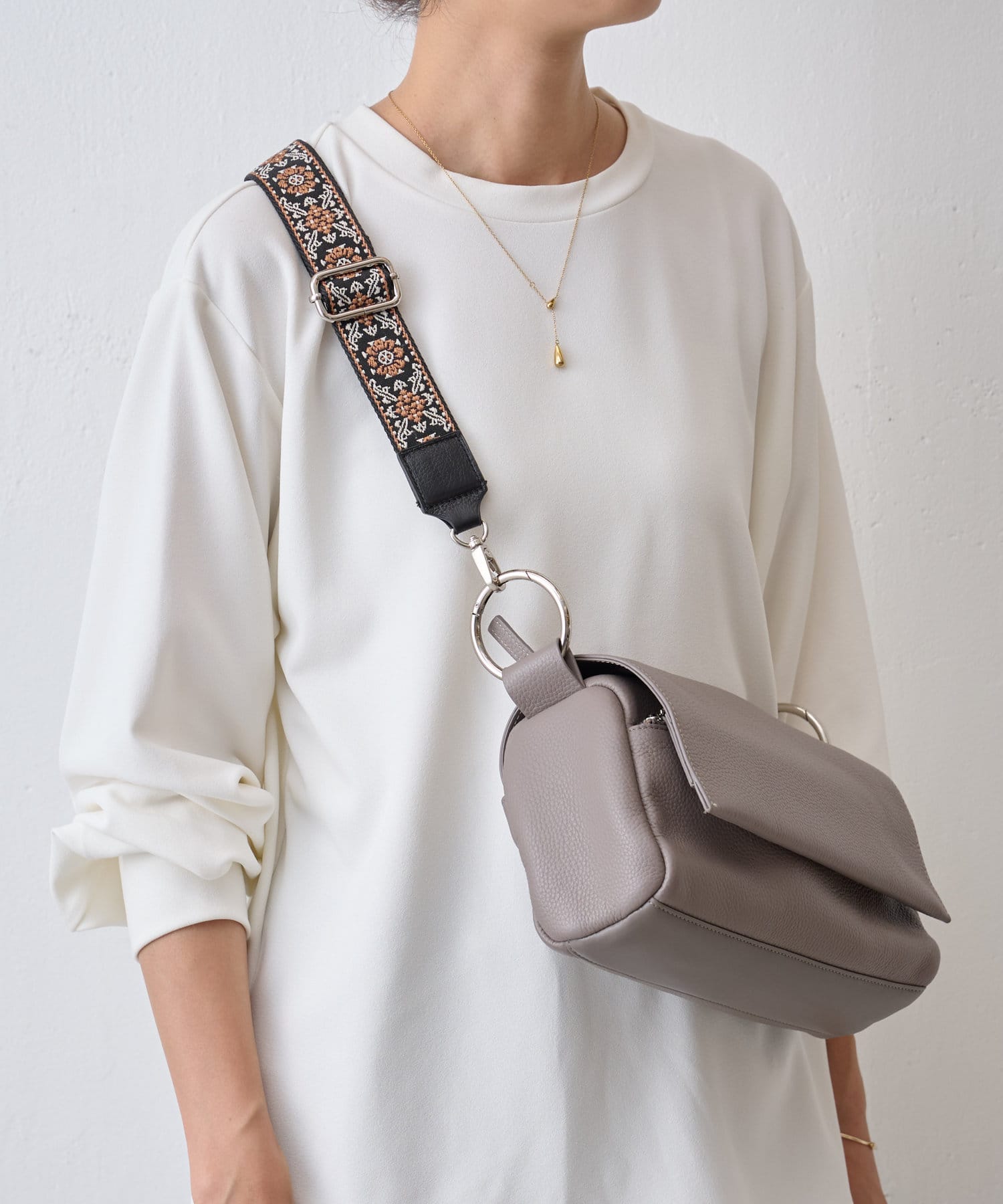 長さ調整が可能で、肩掛け・斜め掛けどちらにも対応。