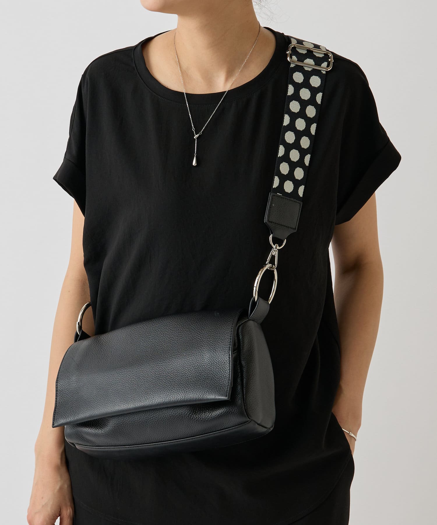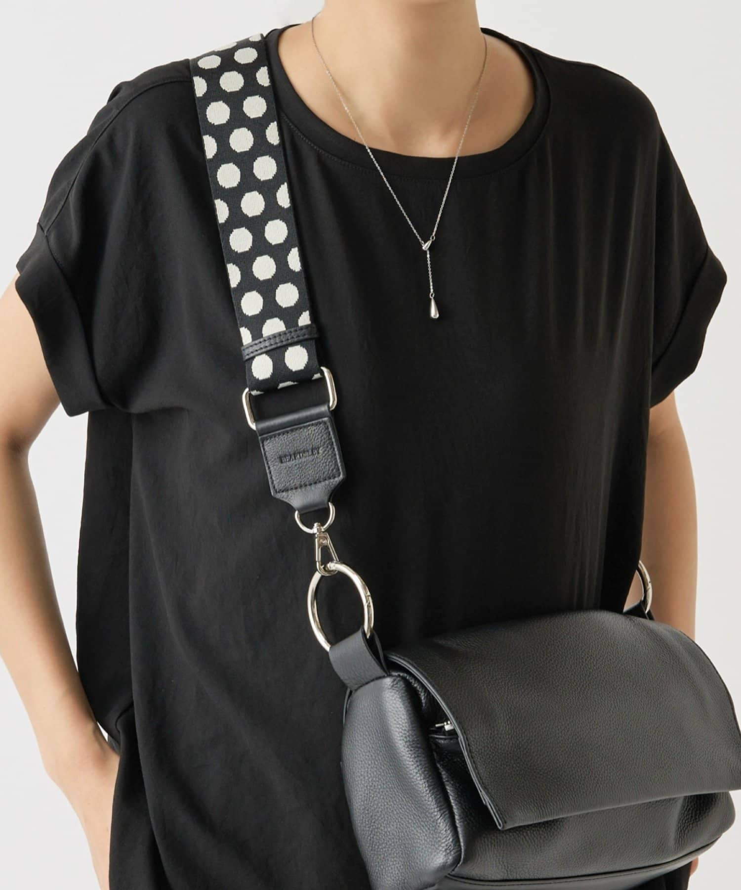 購入場所:店舗ボディバックは散々悩んでブラックを購入。そのため、洋服のコーディネートによっては、暗くなりがちと思い、ドットのショルダーベルトも購入。抜け感も出るし、大正解でした!
