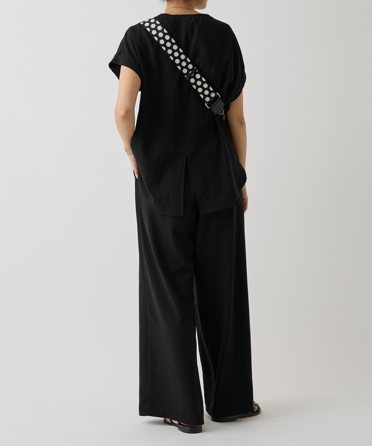 身長166cm・ブラック / レザーボディバッグとの着用イメージ -