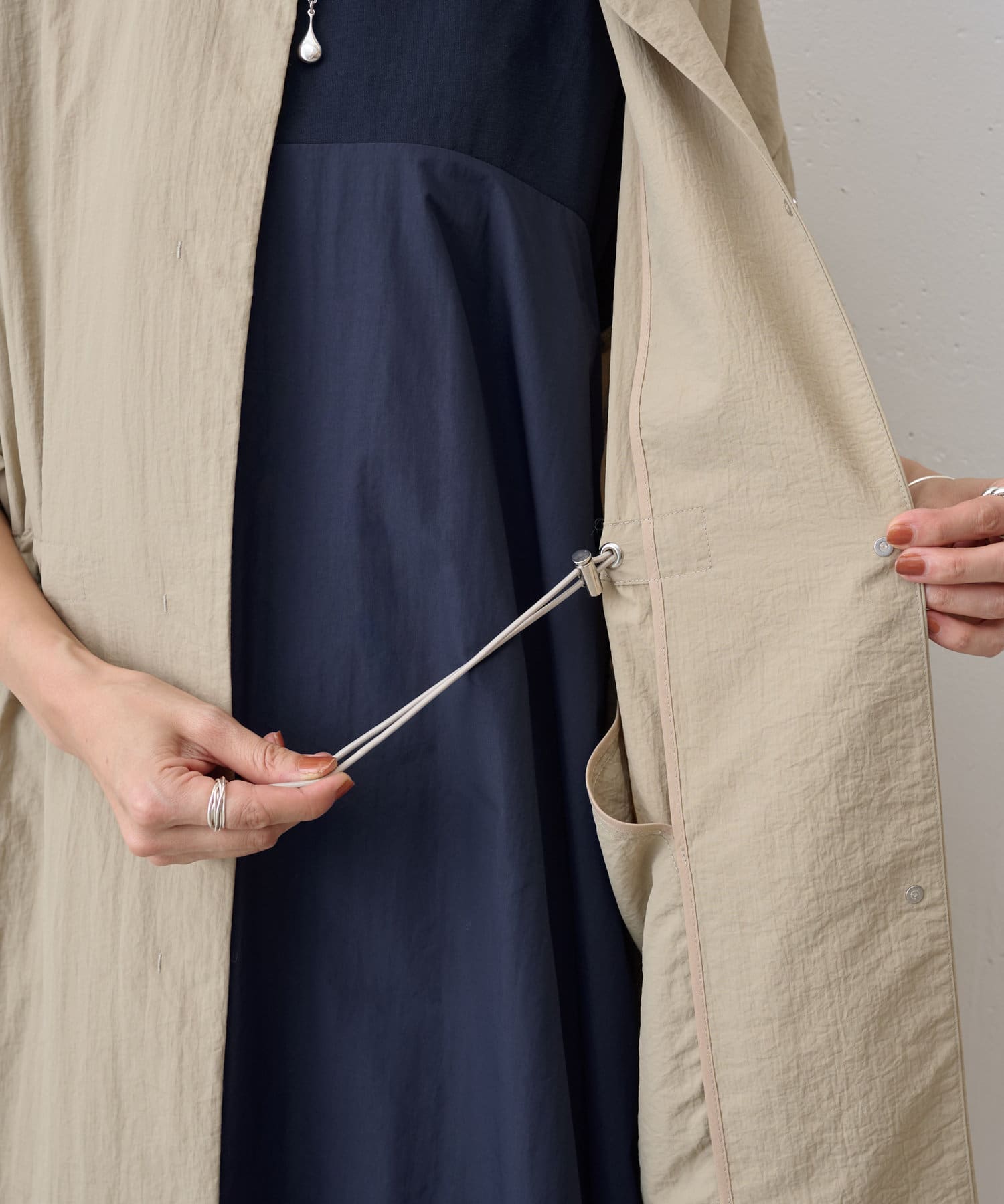 ウエストのドロストコードを絞ると