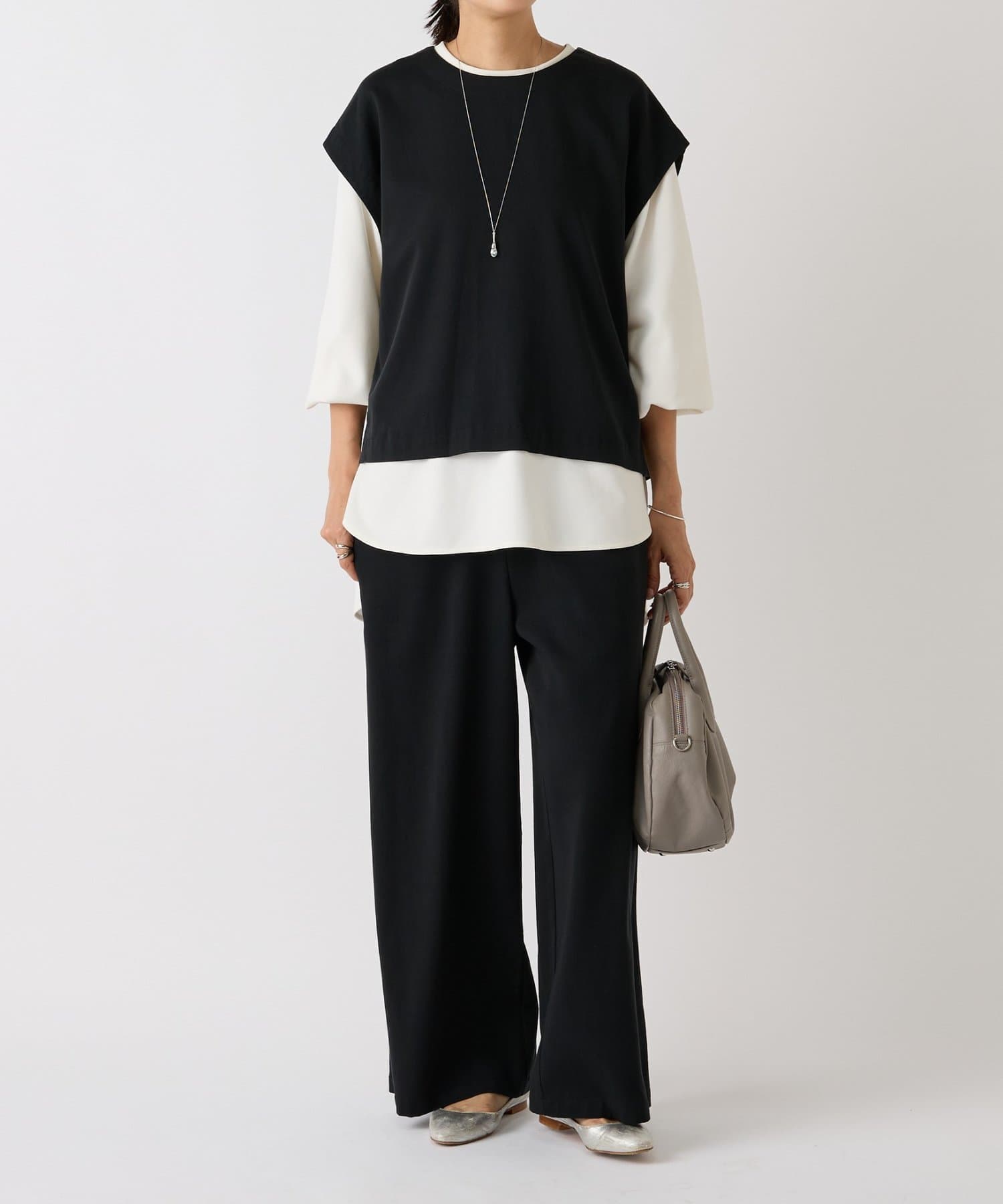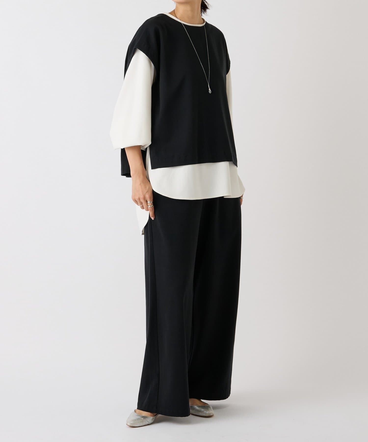 ブラック着用:同素材のベストでセットアップも◎ -