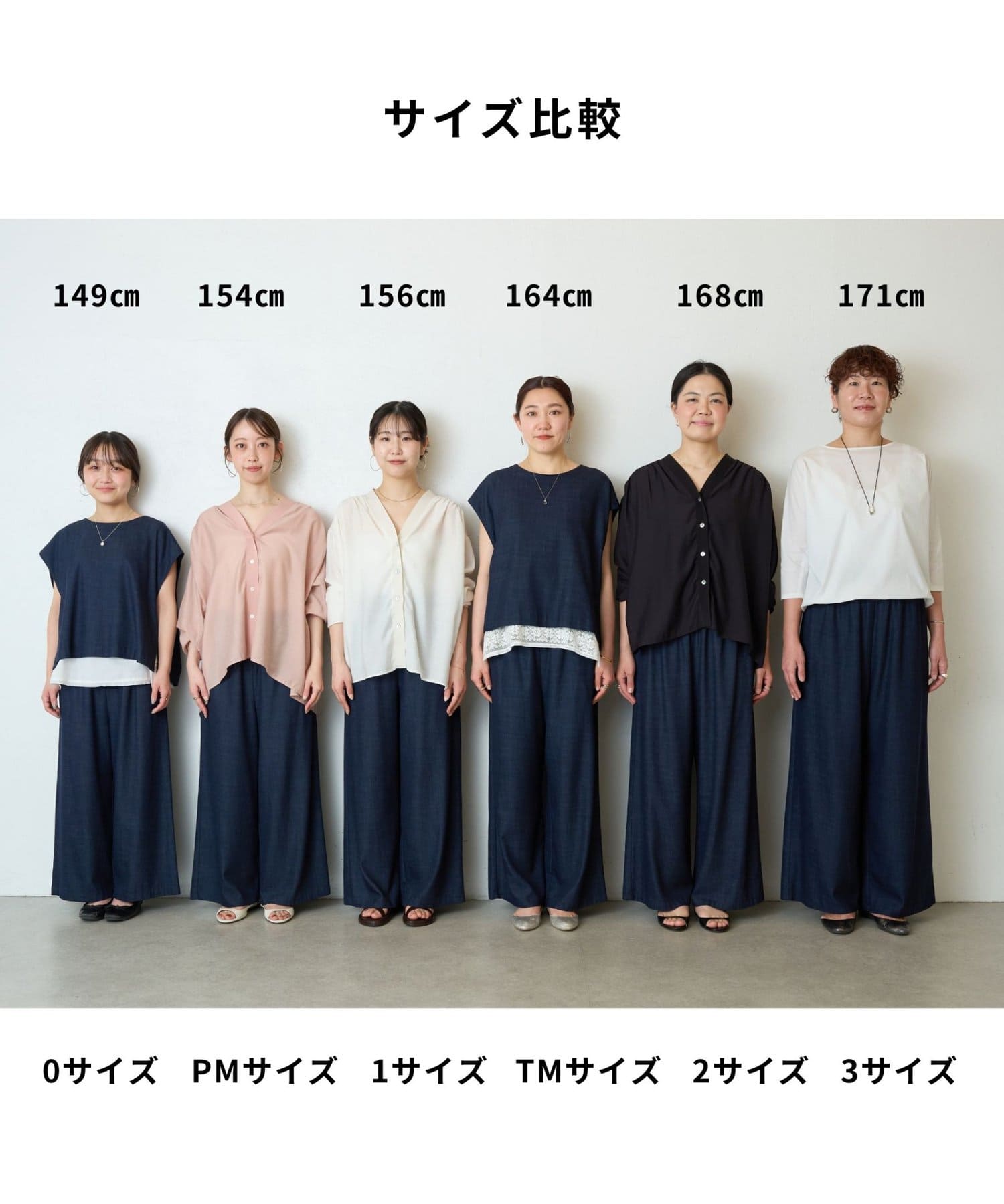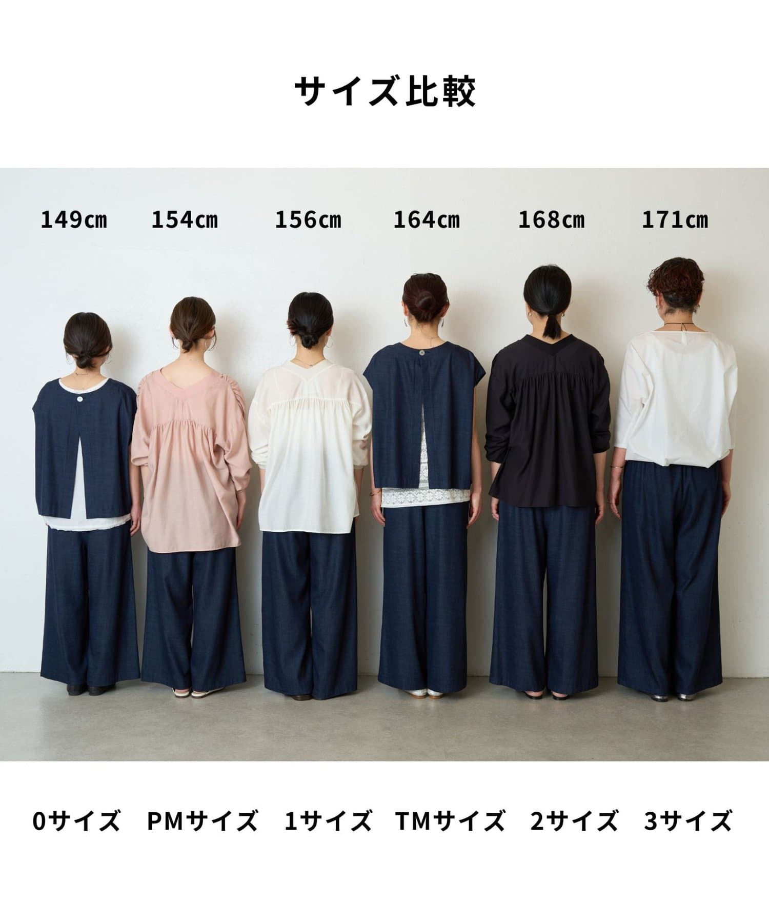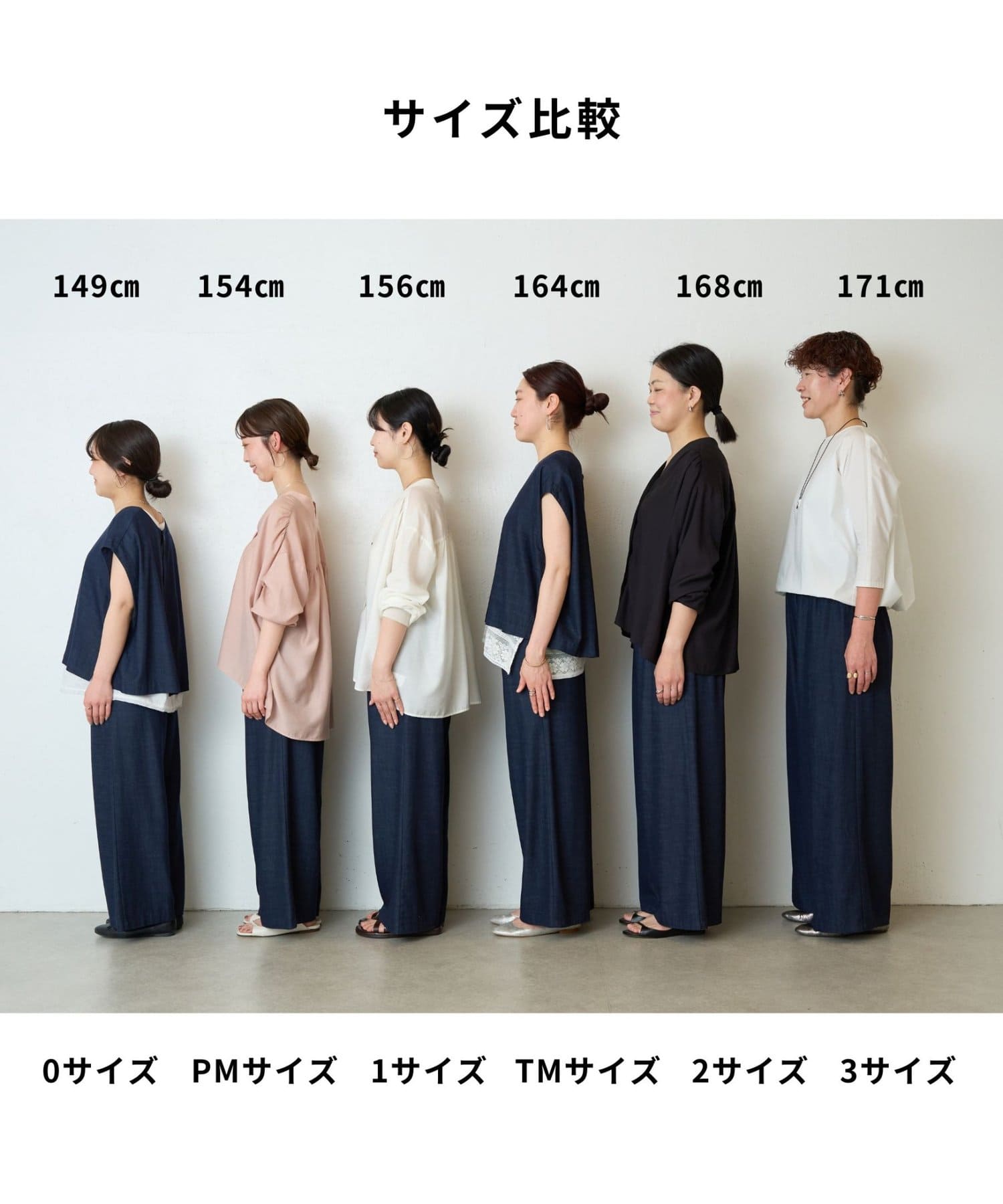 ▼フィット感と身長に合わせて選べる6サイズ展開・サイズごとのコーデをご紹介