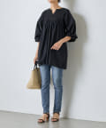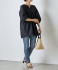 ゆったりとした身幅で体のラインを拾わずリラックス感がありつつも、さりげない刺繍使いが大人の上品な雰囲気を引き立てます。