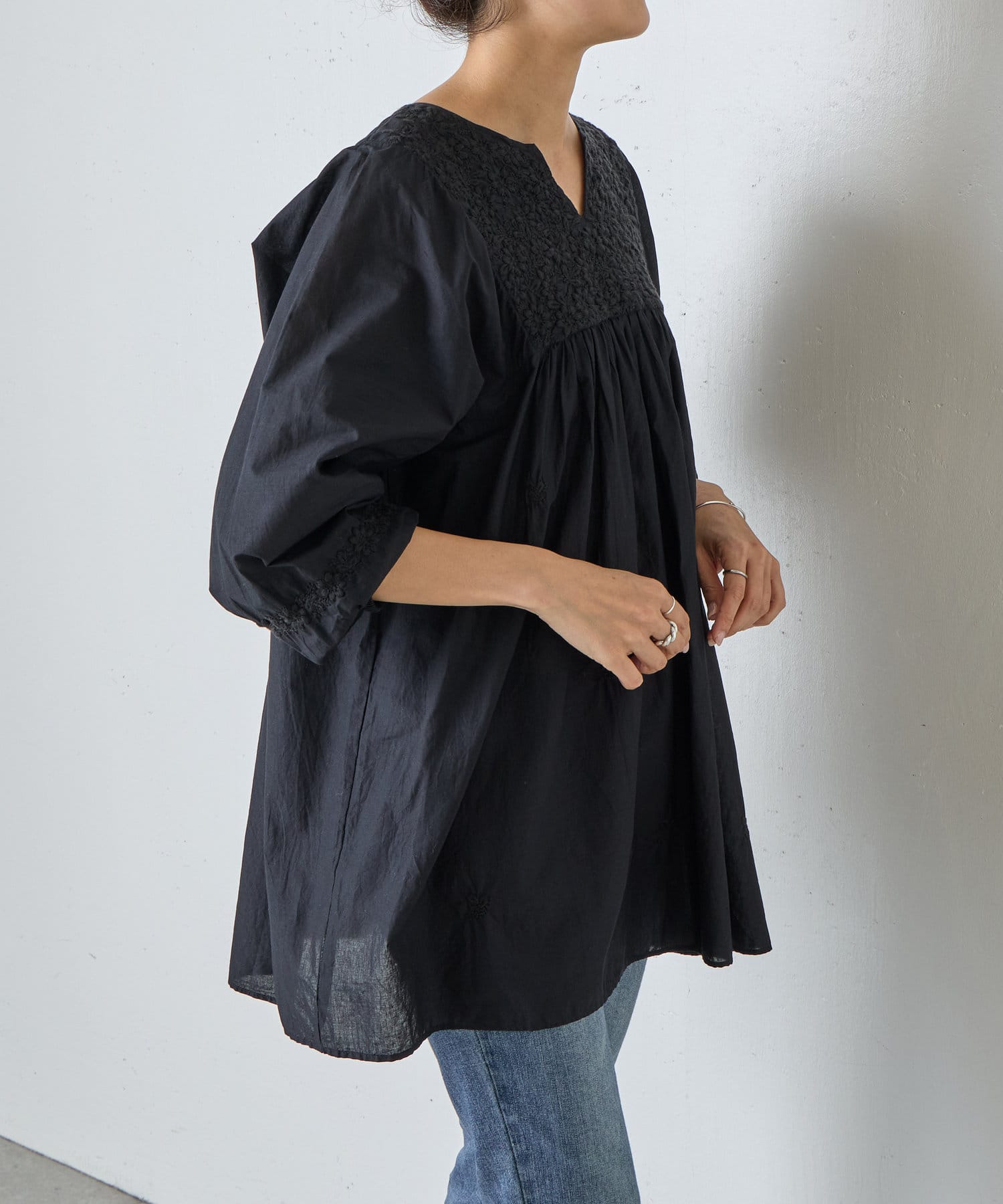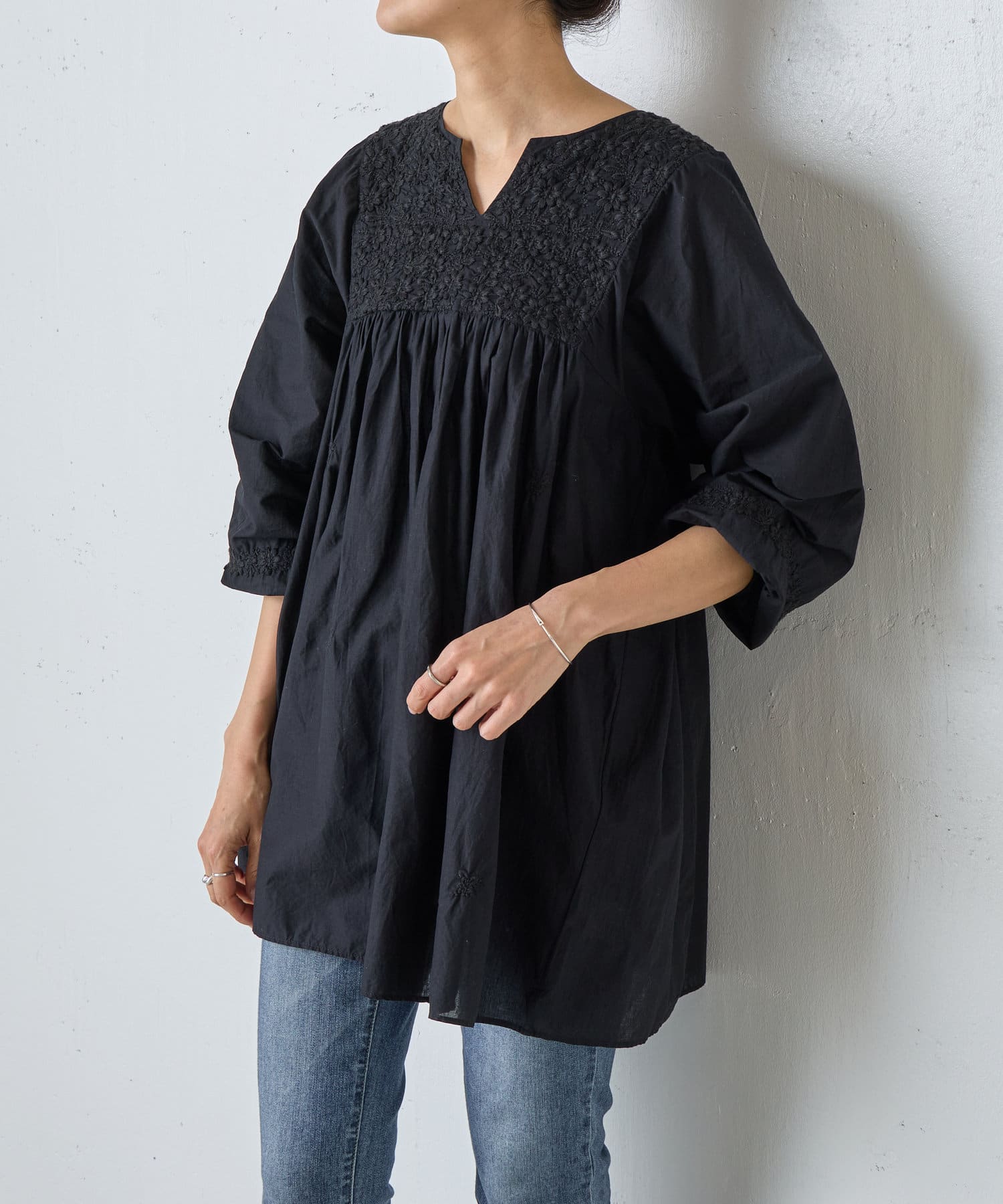 立体刺繍が華やかに映える、大人のためのこだわりチュニック。