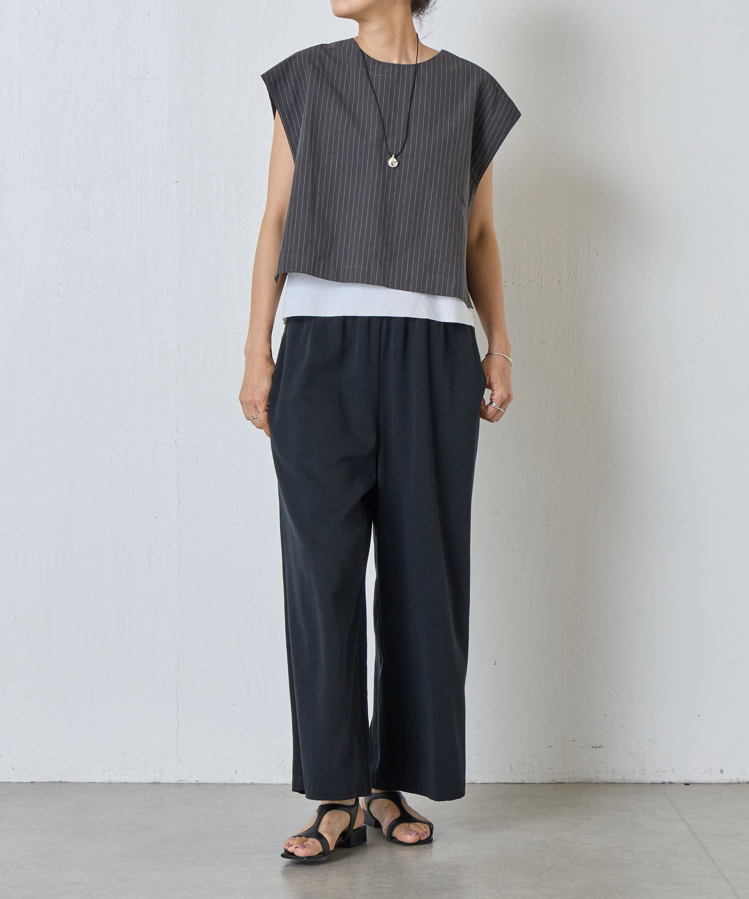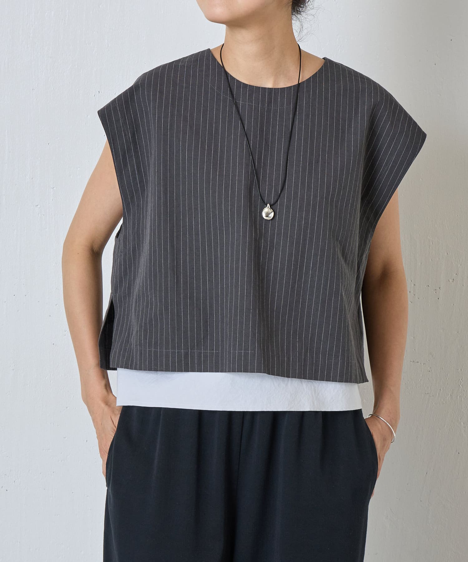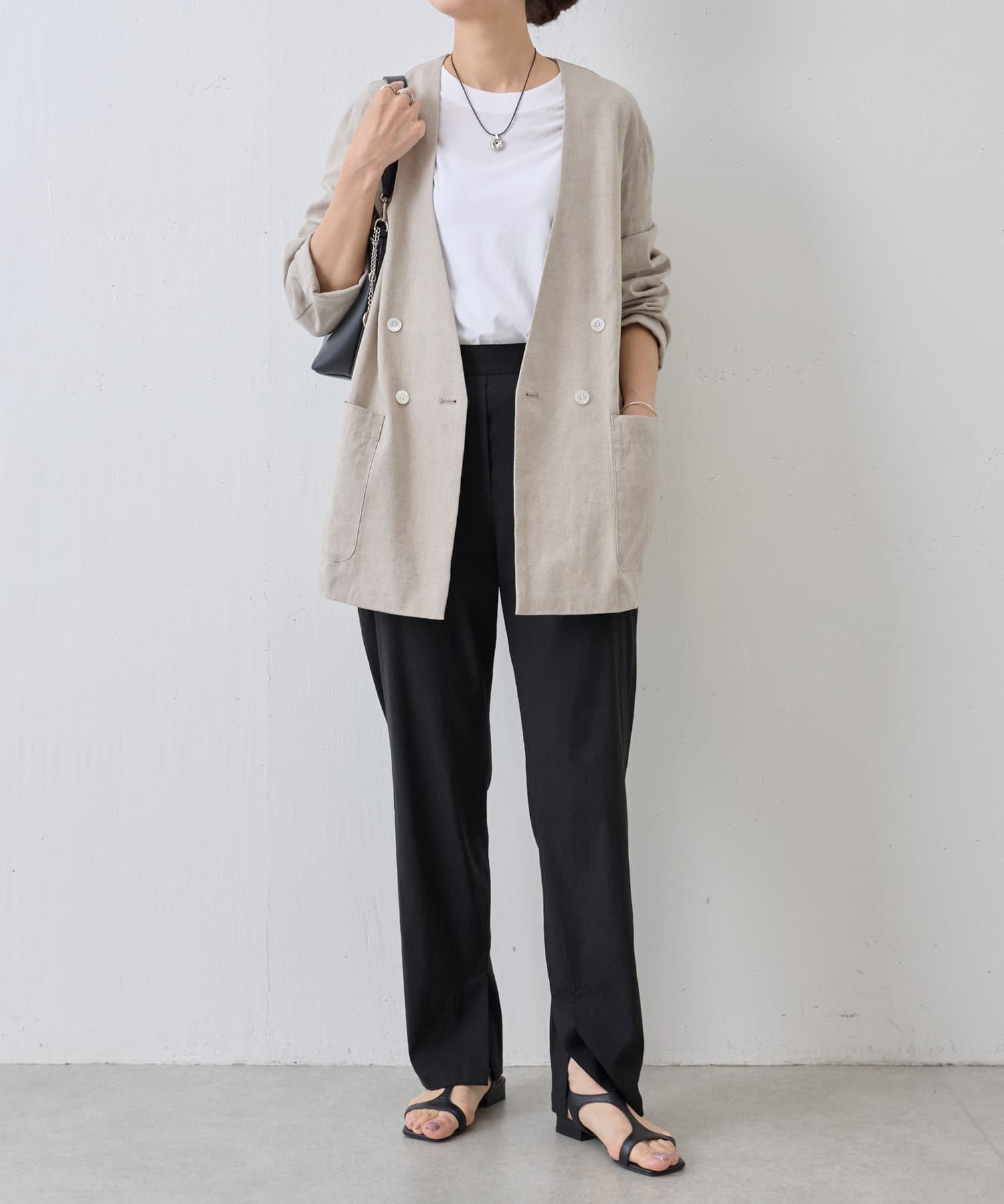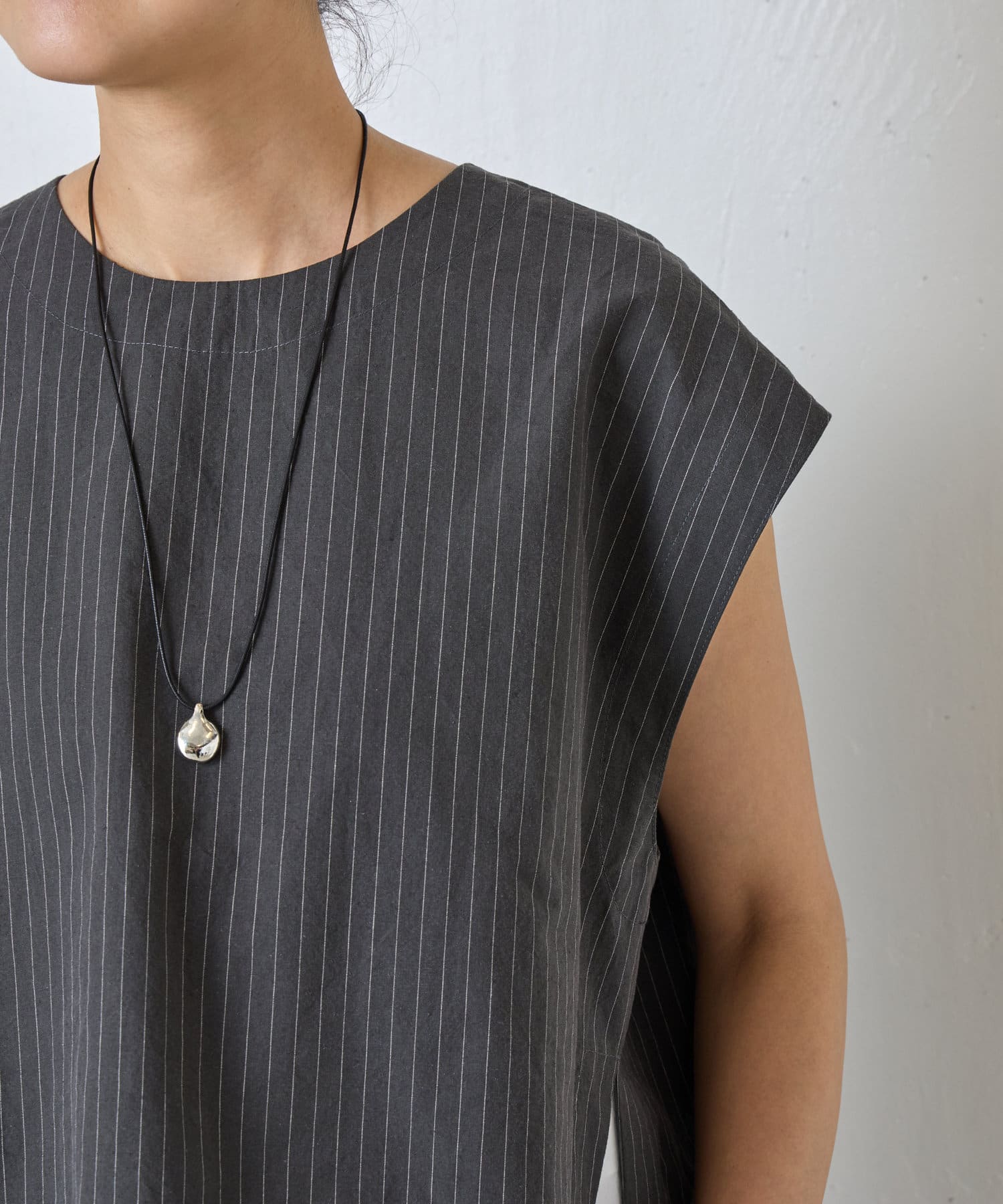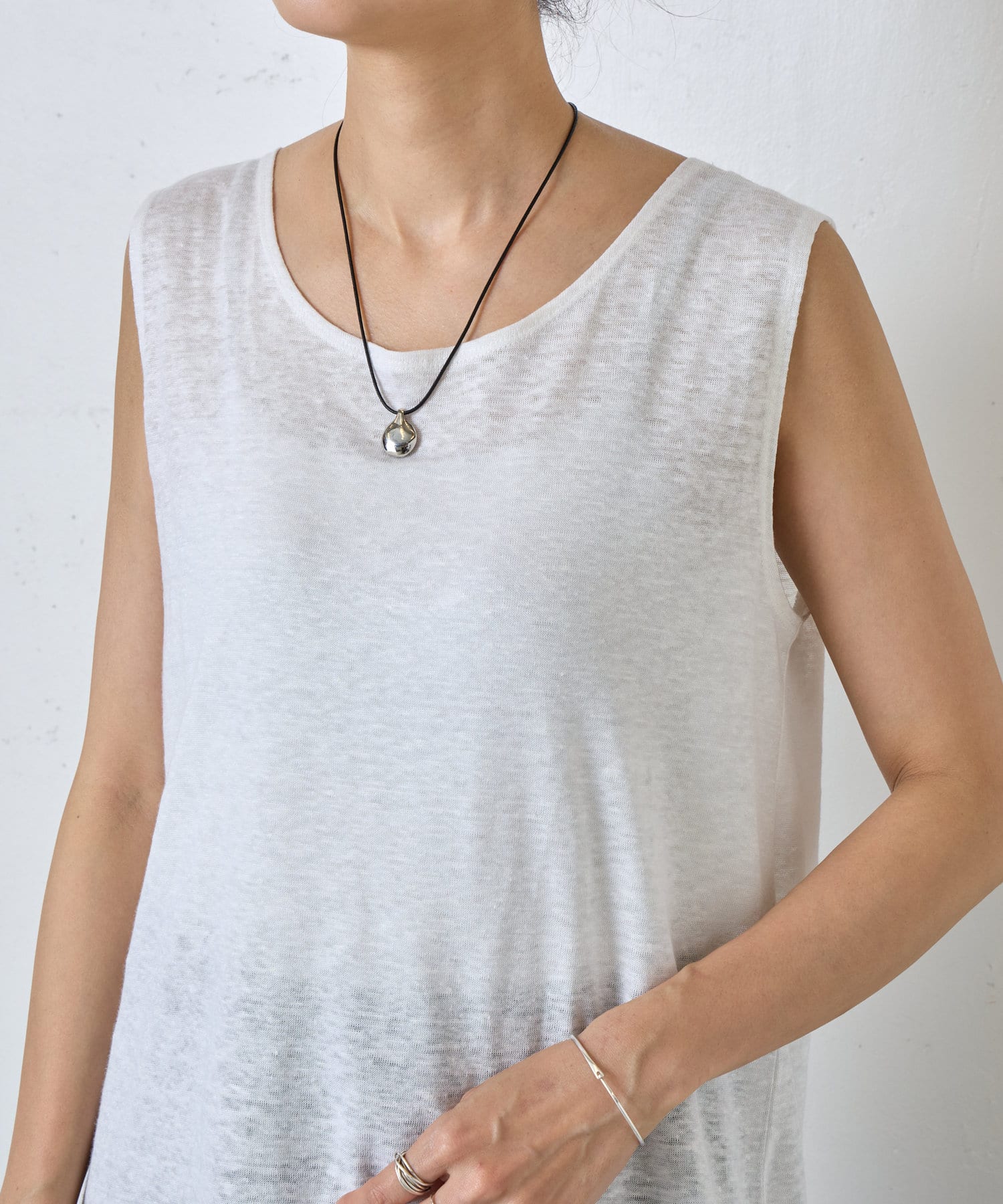 コードを結ぶことでお好みの長さに調整可能。首元に合わせて自在にアレンジでき、ストレスフリーな着け心地も嬉しいポイント。