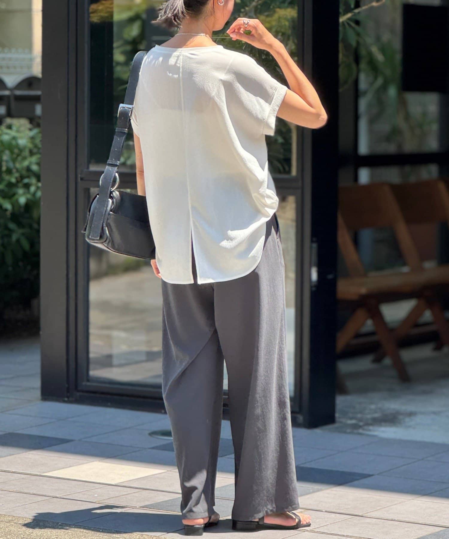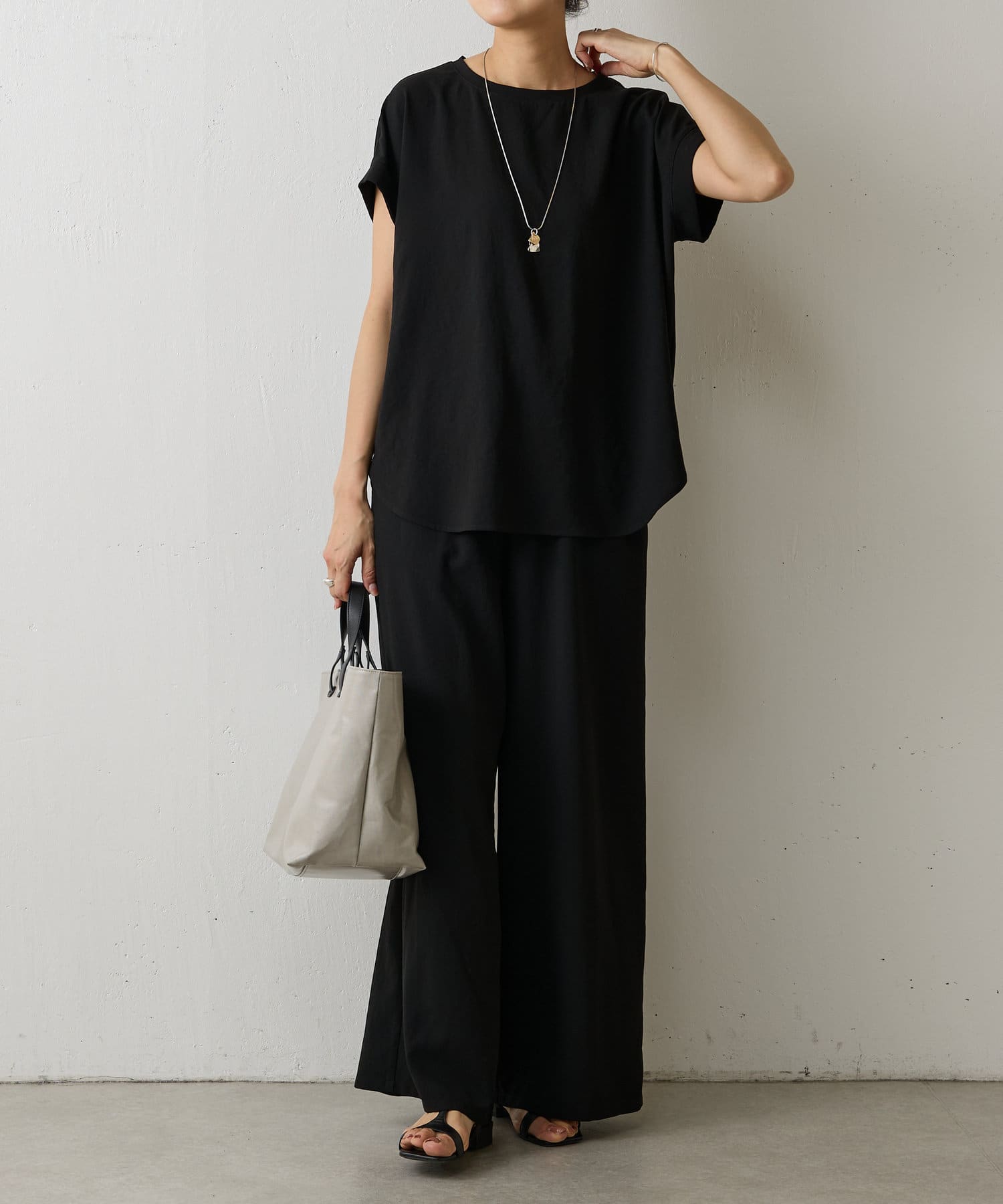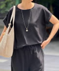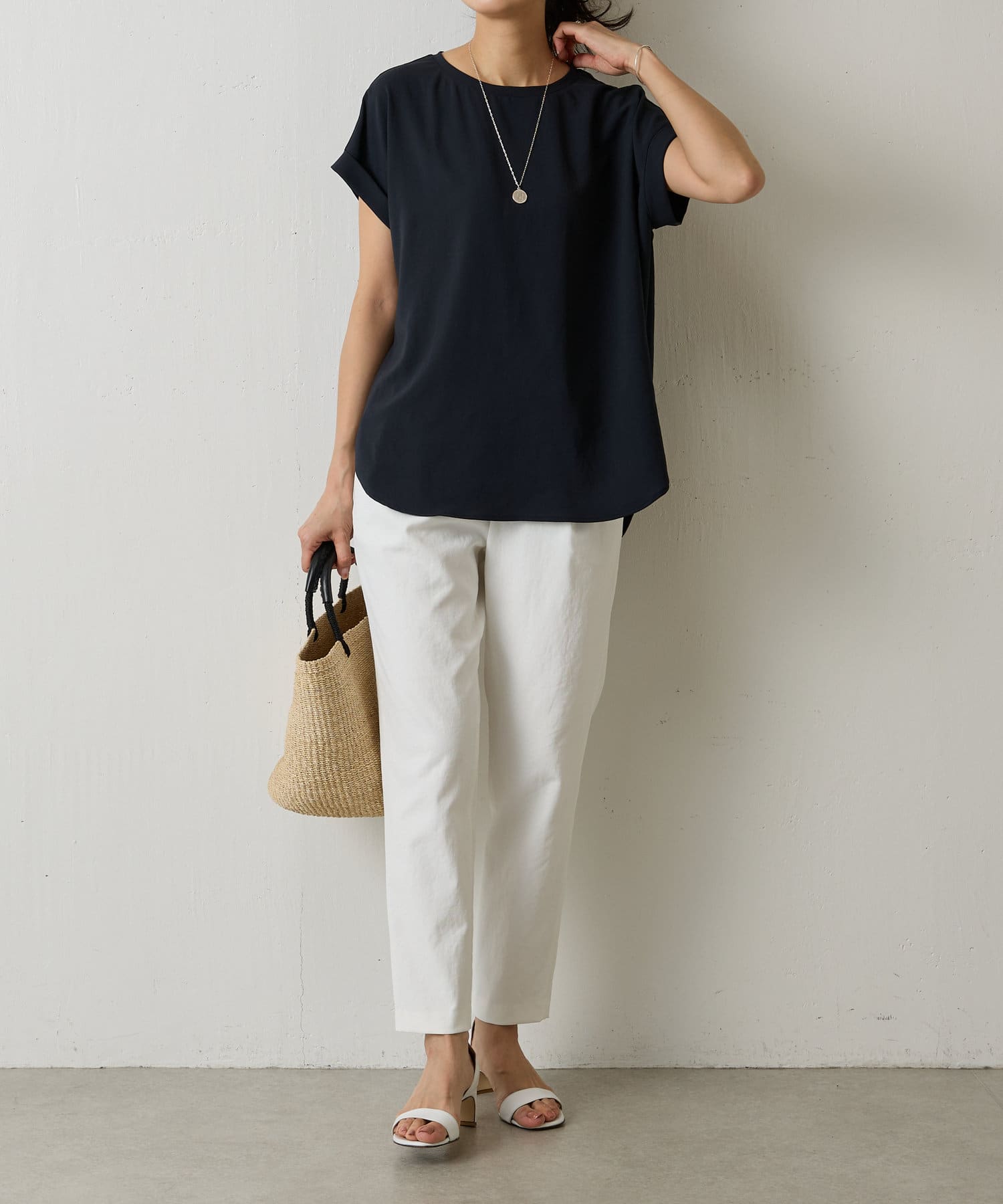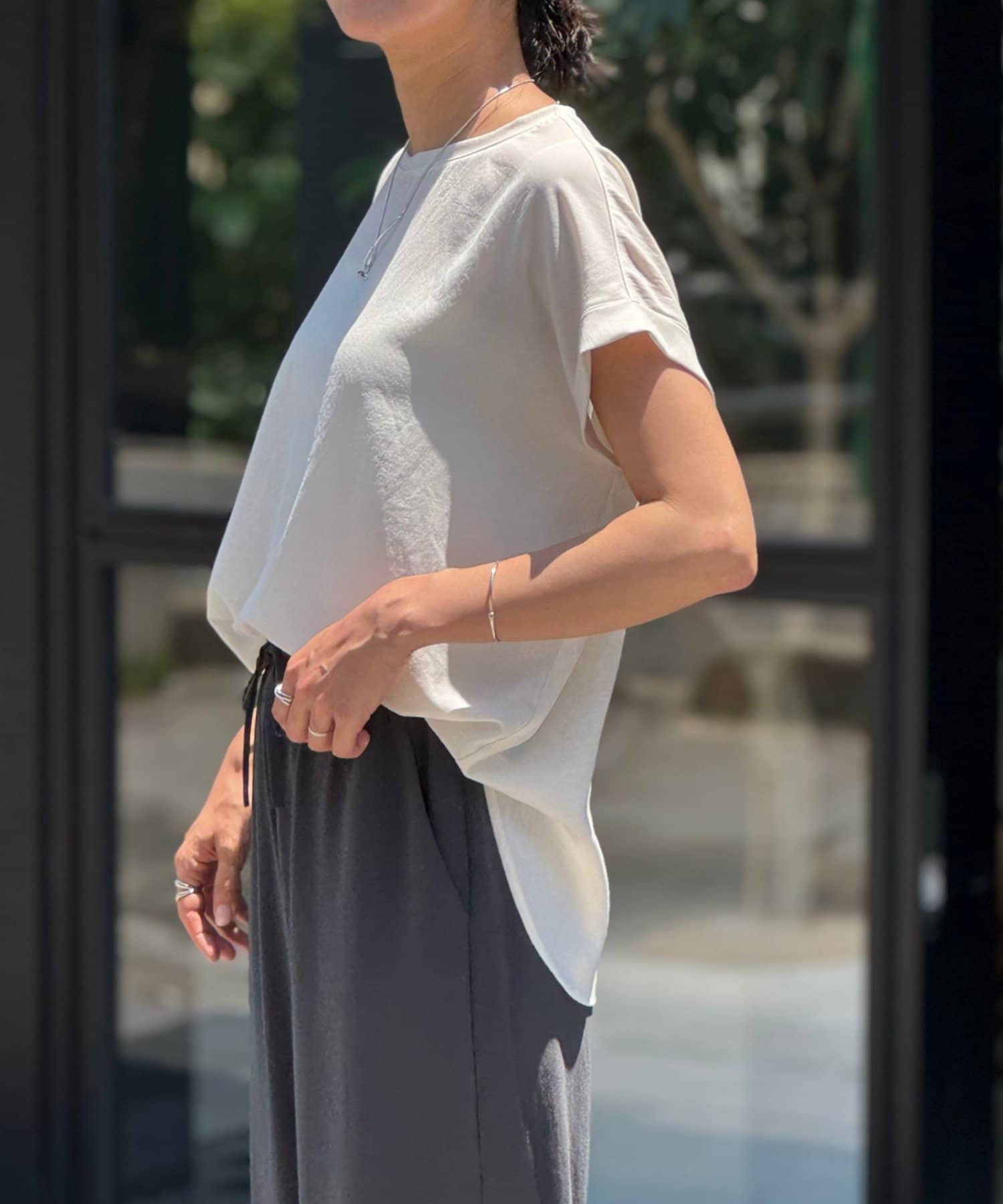 Tシャツ感覚で着られますが、きちんと感もある万能アイテムです。