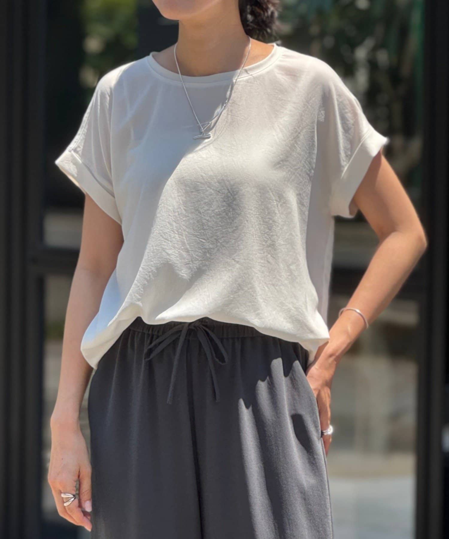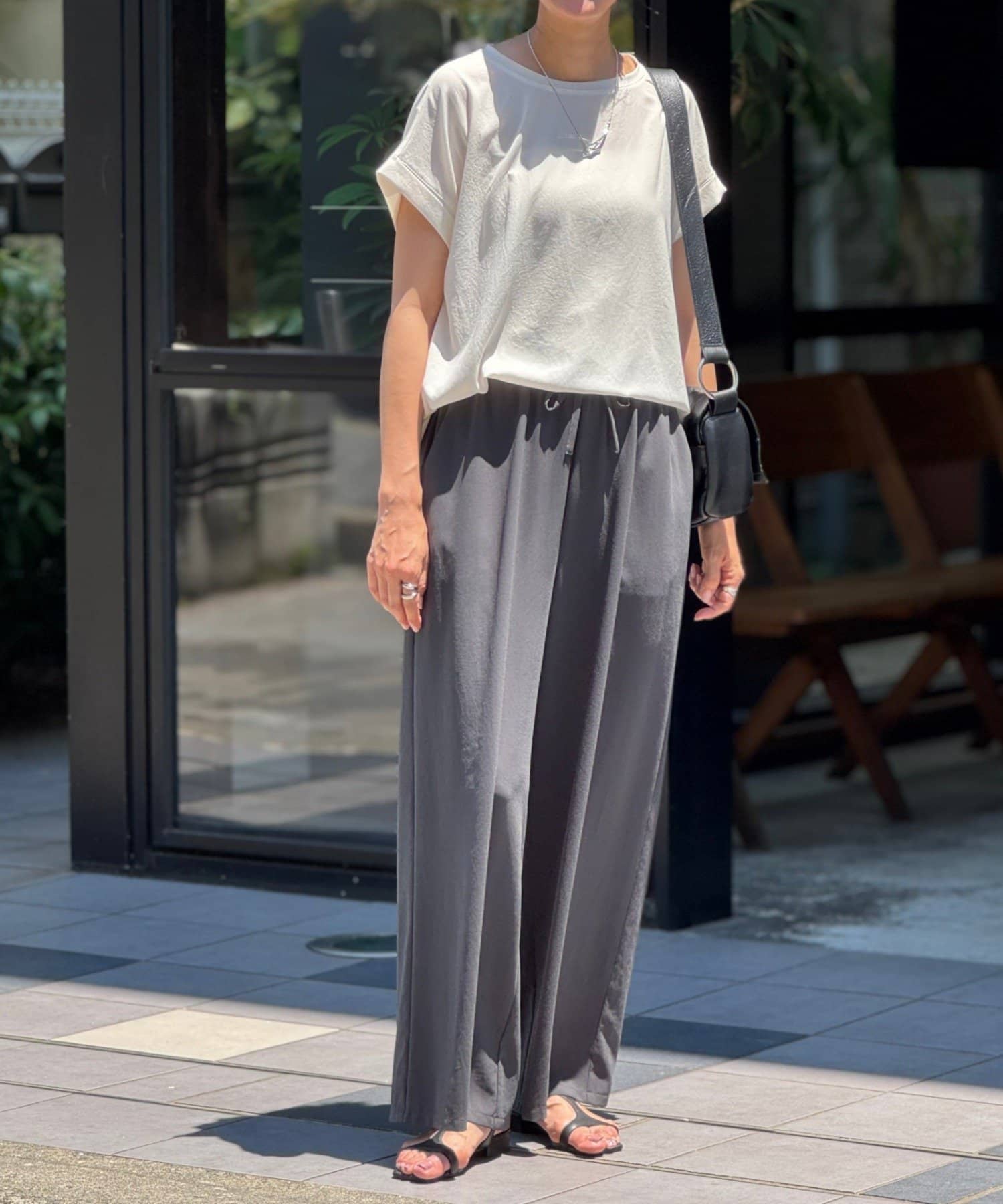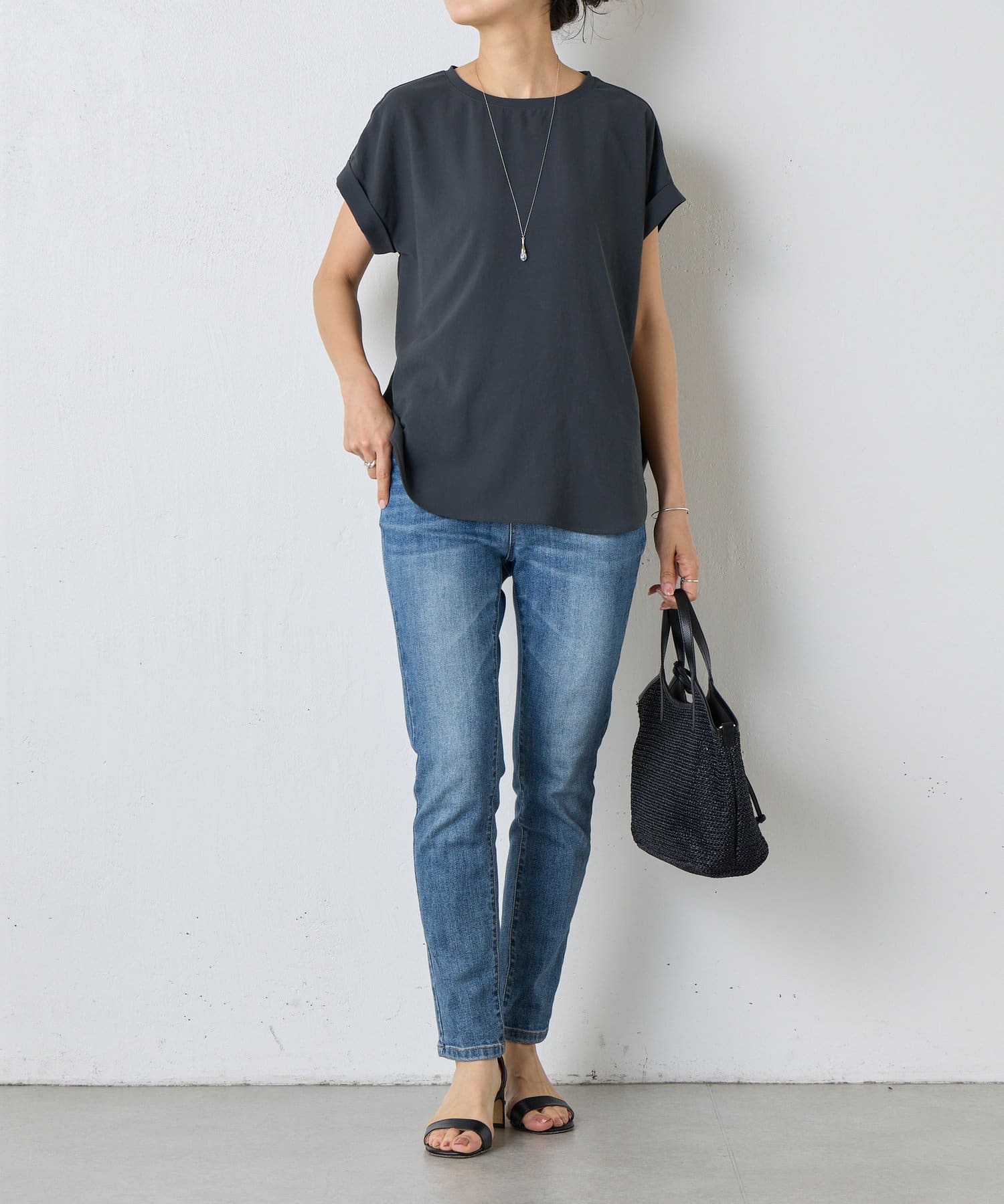 Tシャツ感覚で着られますが、きちんと感もある万能アイテムです。