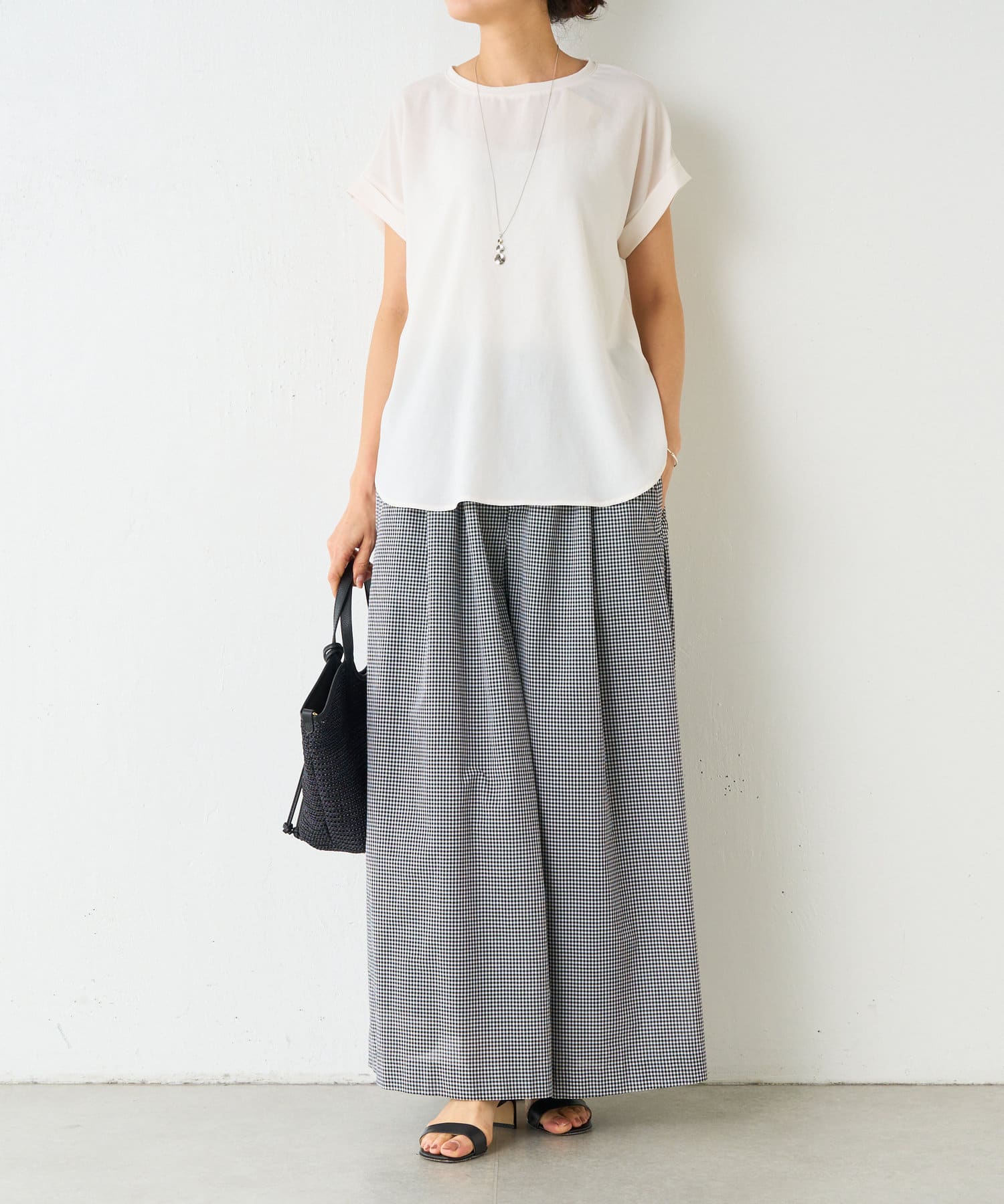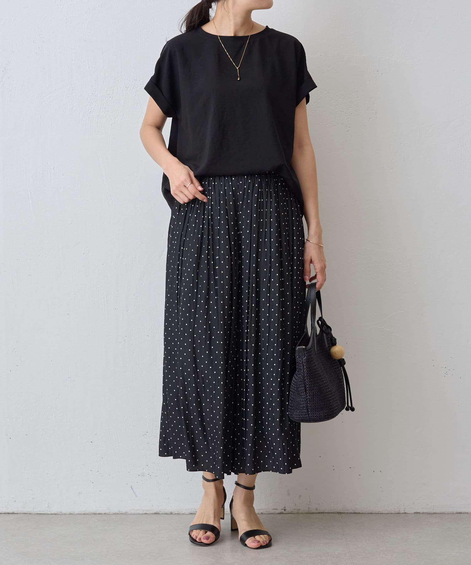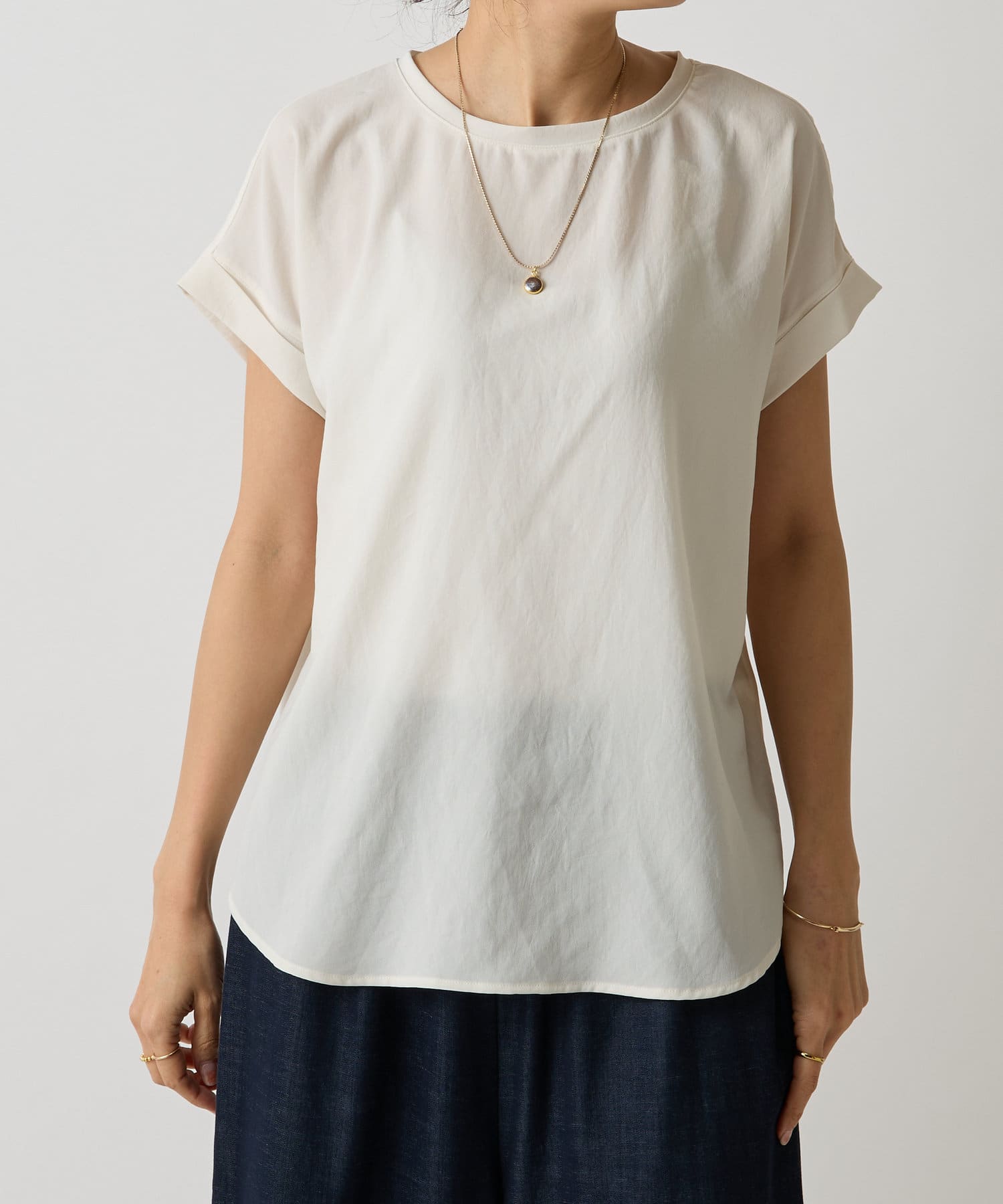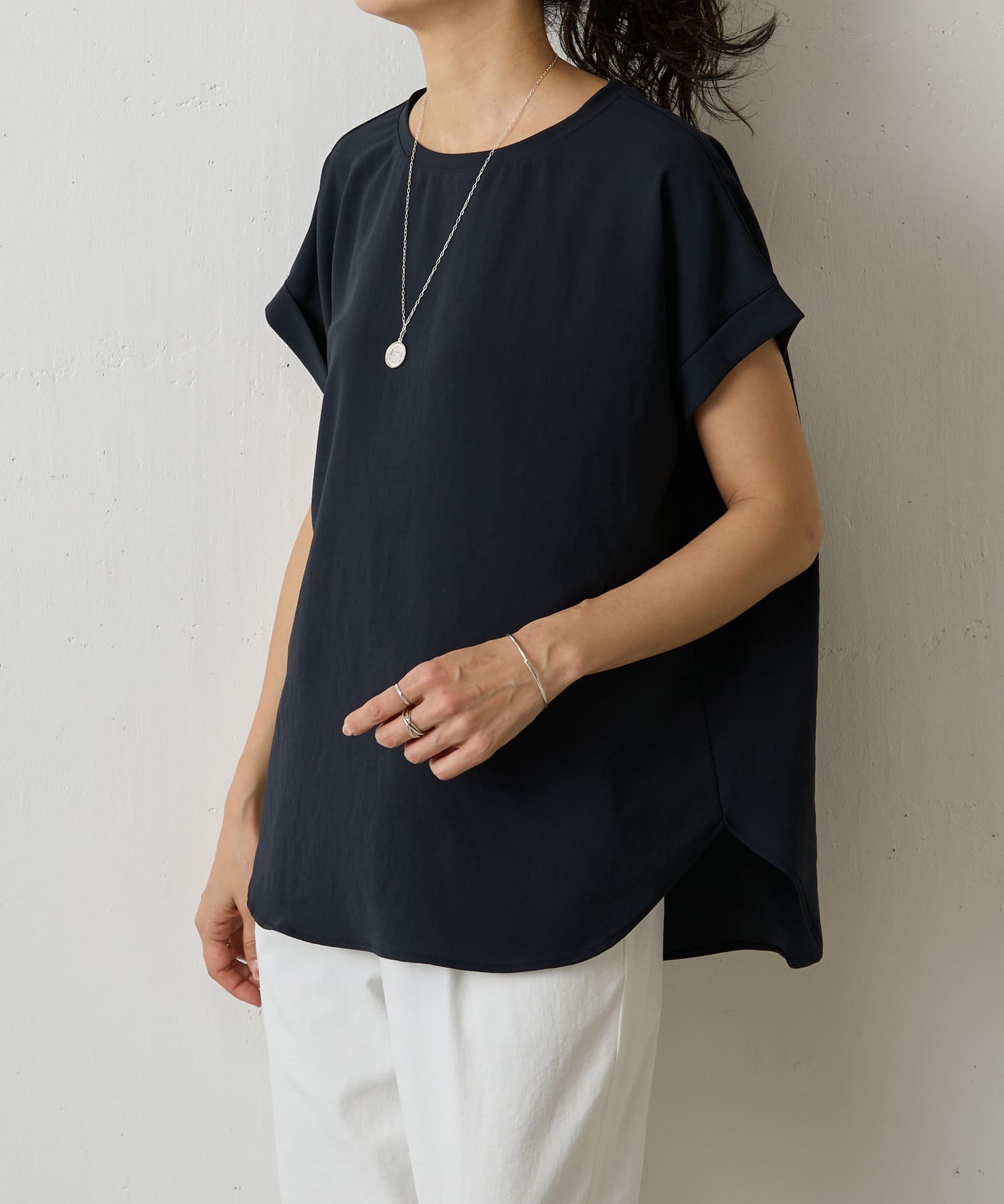 Tシャツ感覚で着られますが、きちんと感もある万能アイテムです。