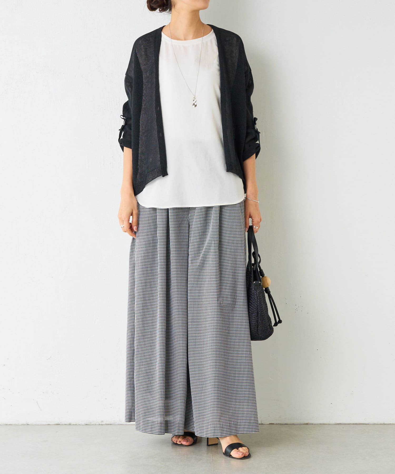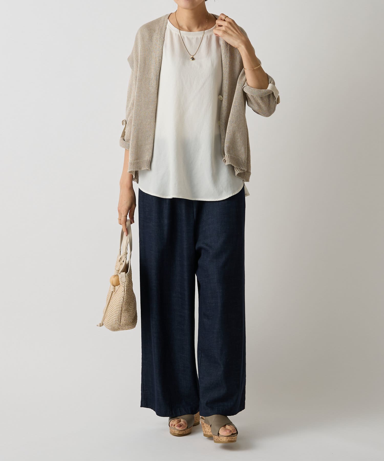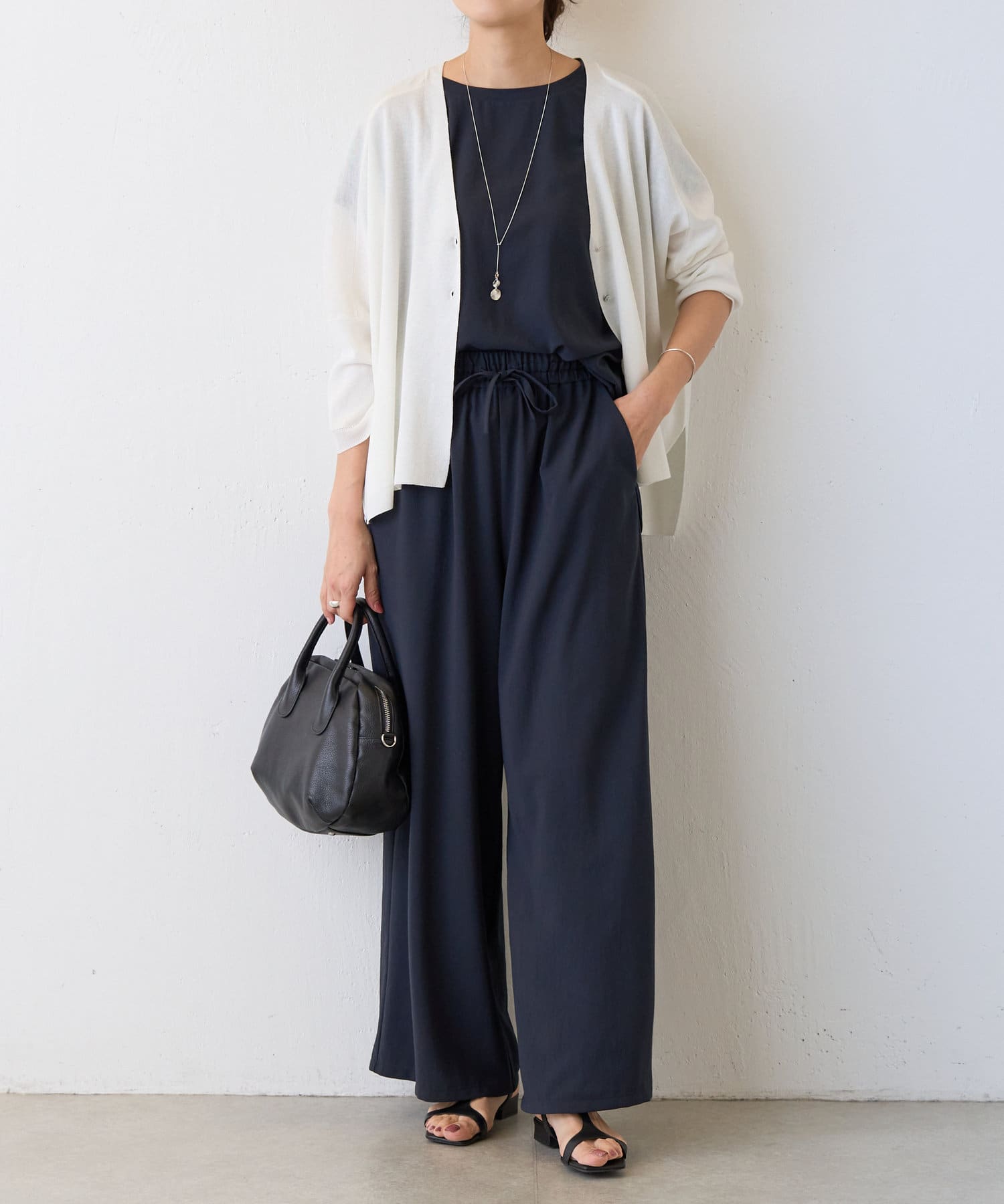 ジャケットやカーディガンを合わせてオンオフ問わず着ていただけます。