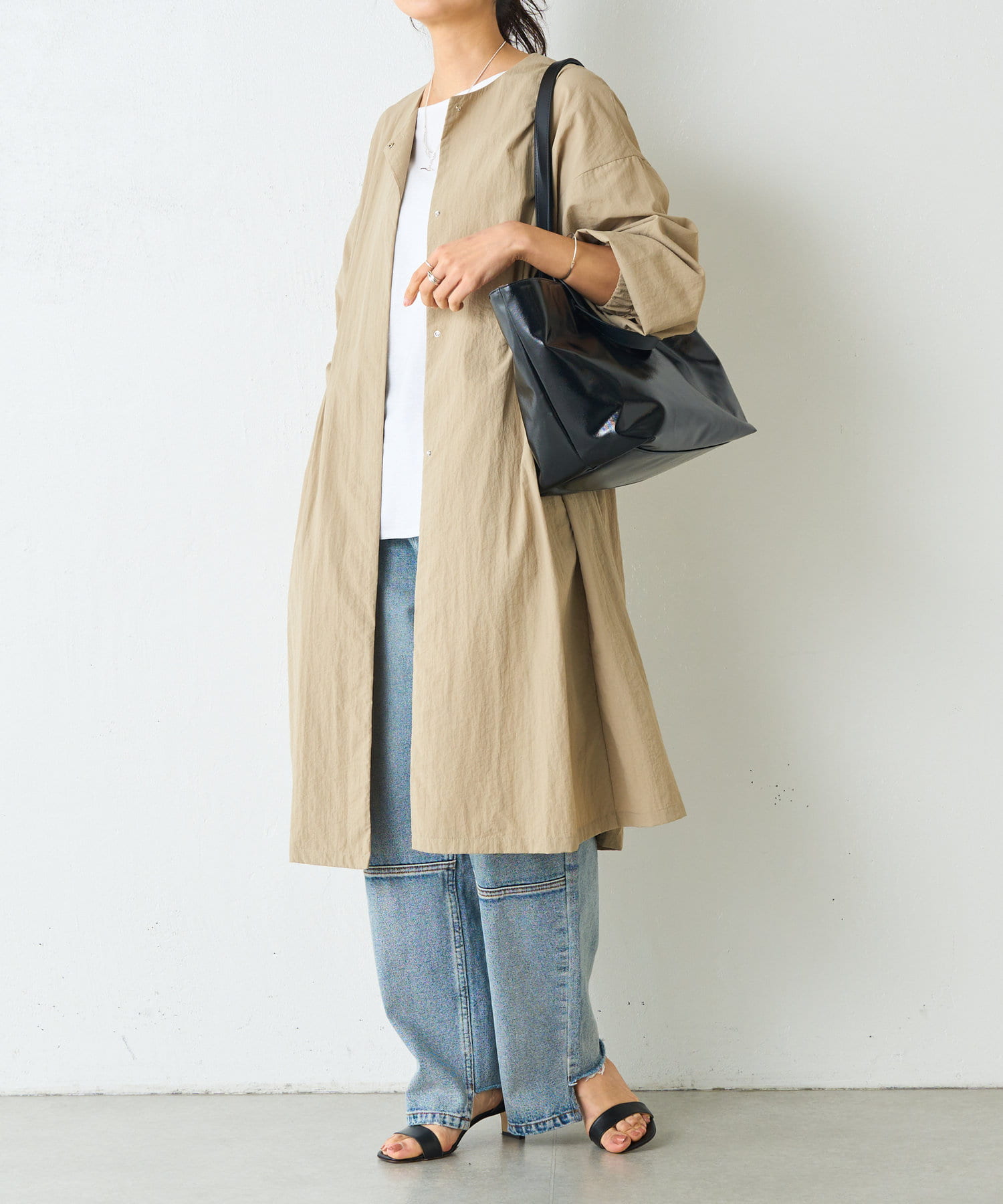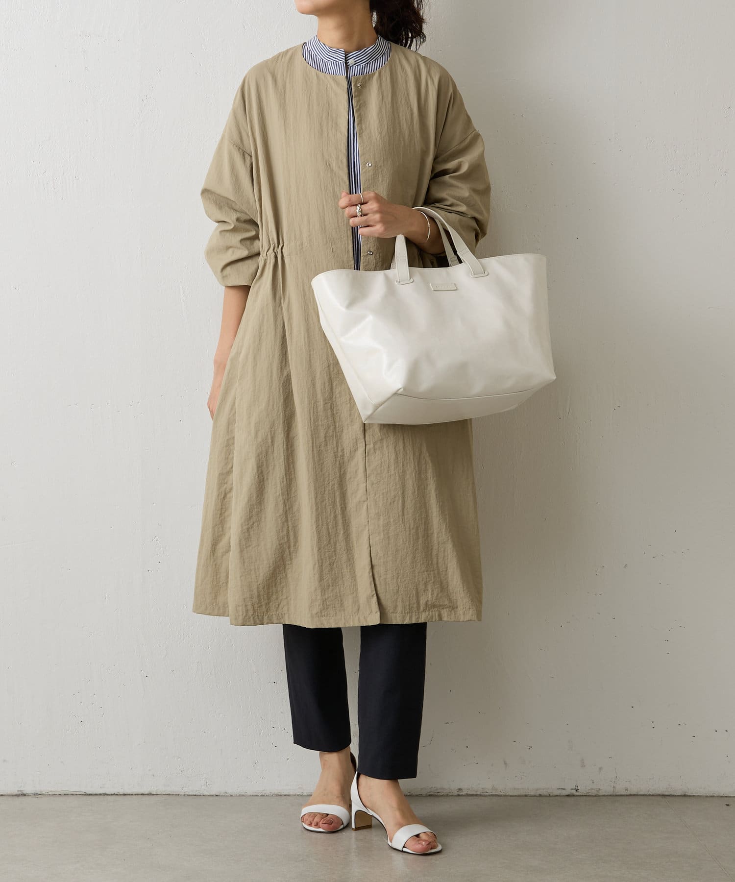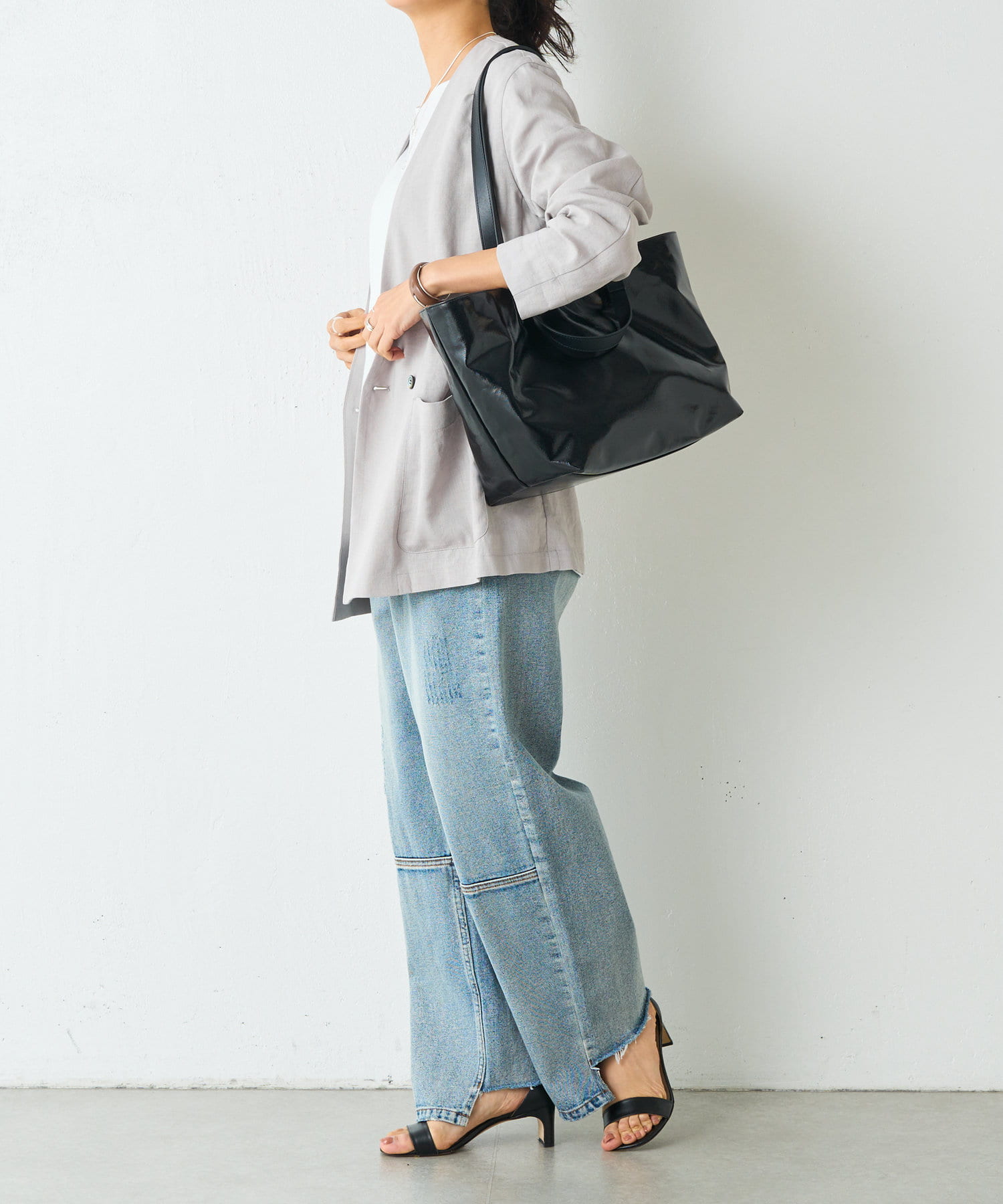 大きめバッグでレザーだと重たいし、雨の日持てないし、かといってキャンバス地だとカジュアルすぎる。