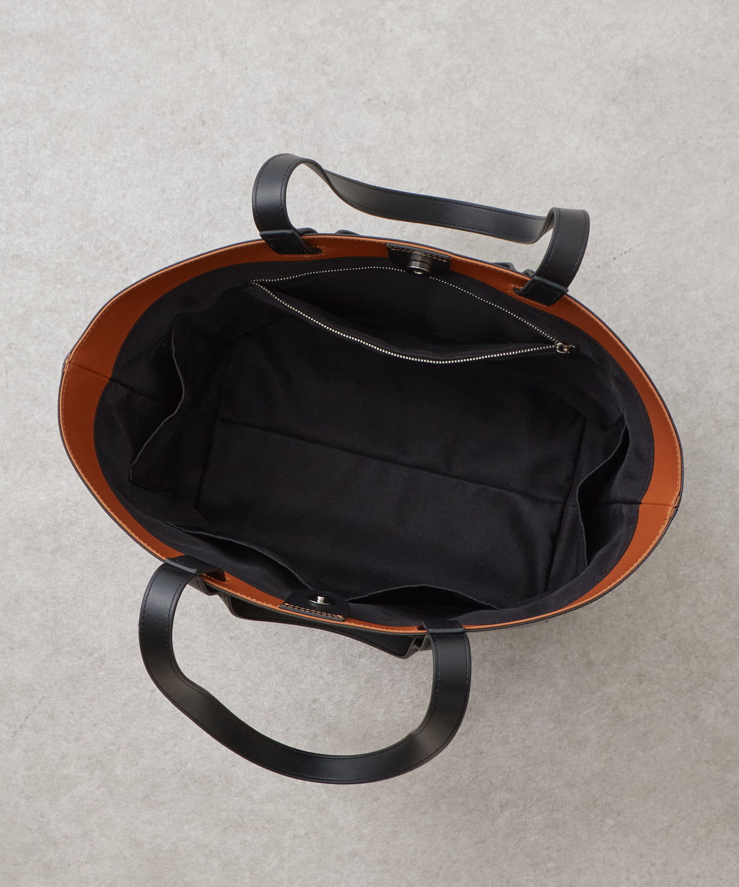 ブラックは内側にキャメルのレザーを入れてもらい、重たく見えないように。