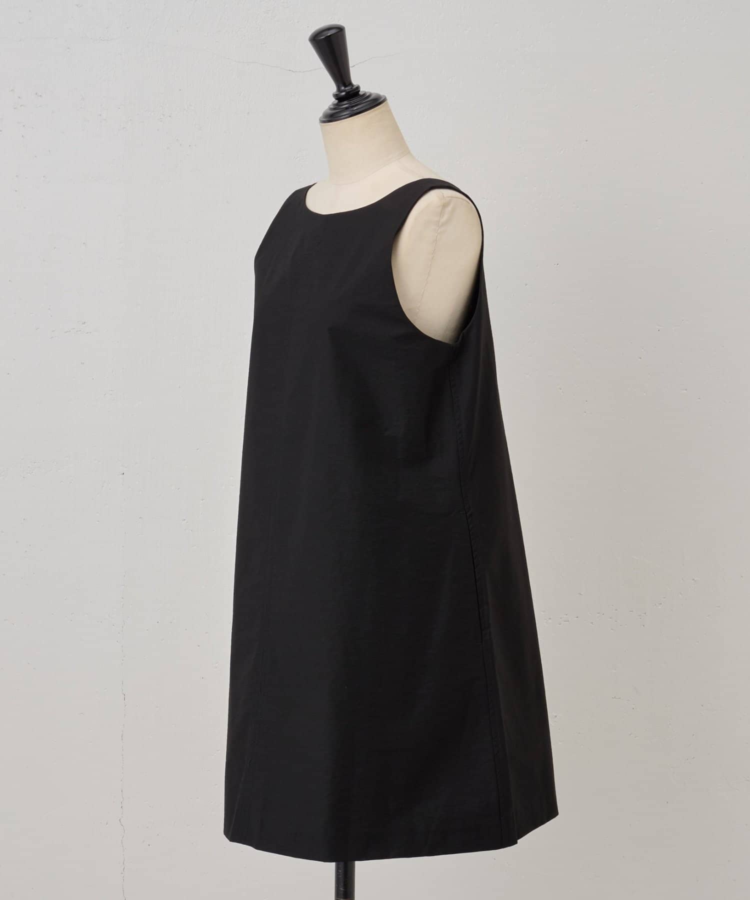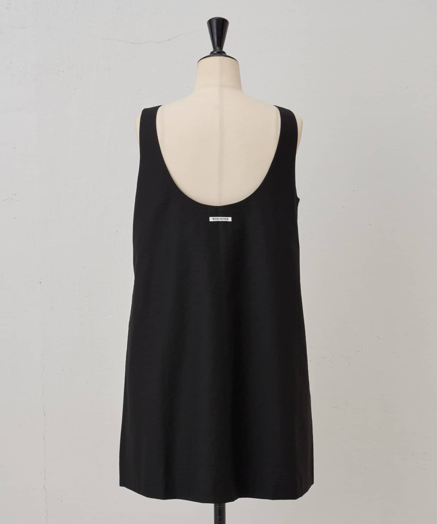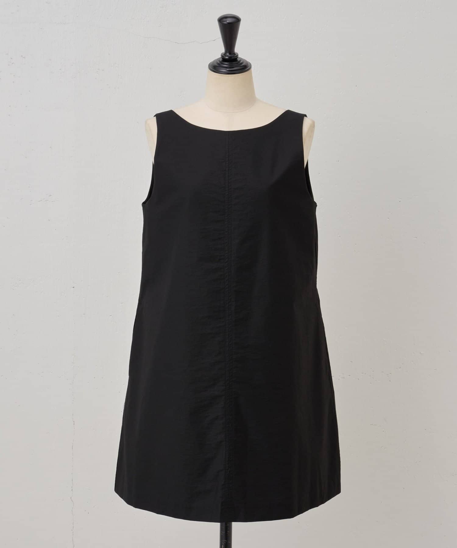 バックスタイルが大きく開いたチュニック丈のワンピース。