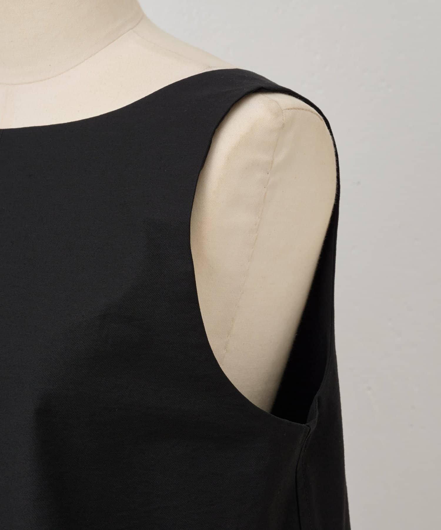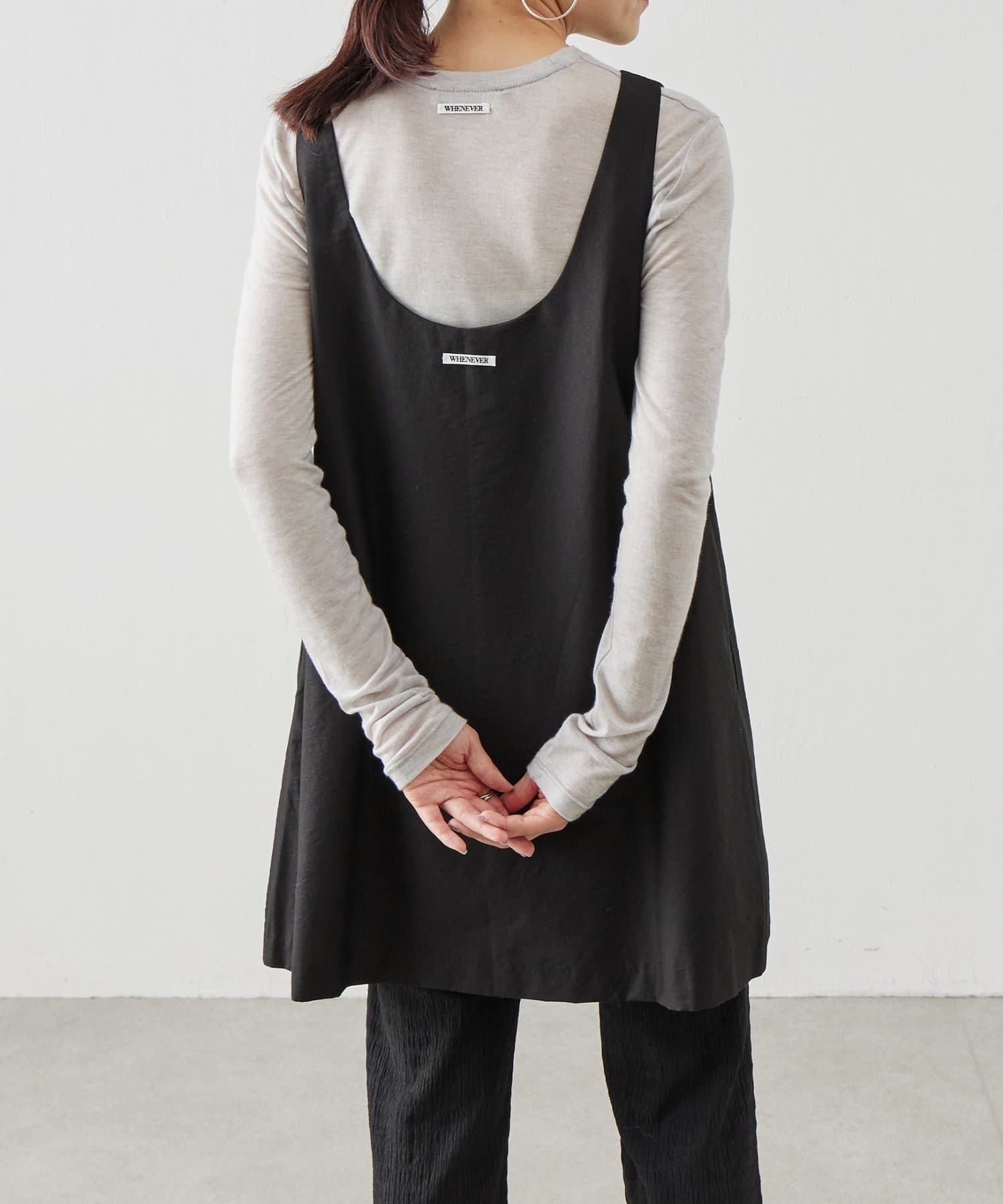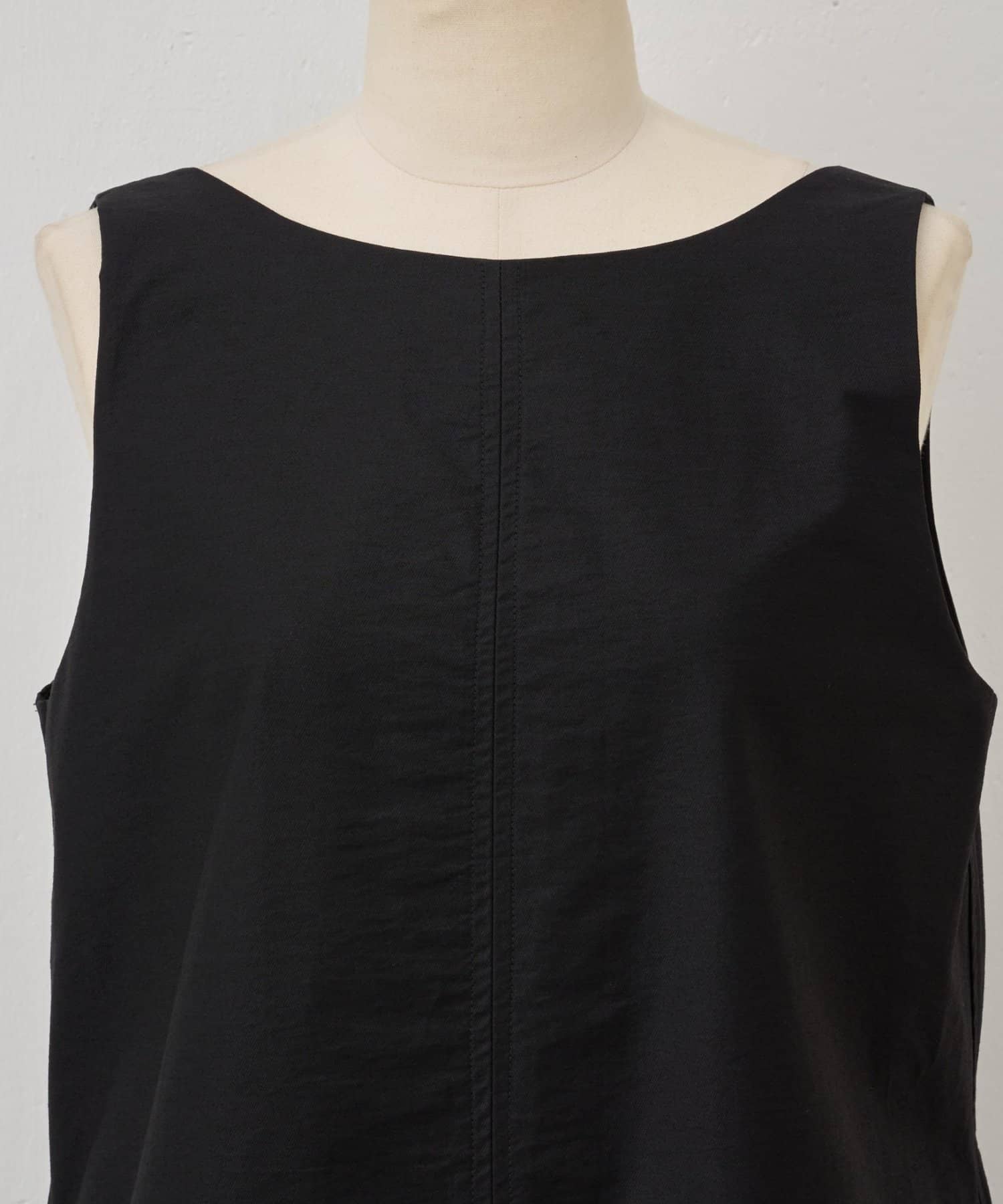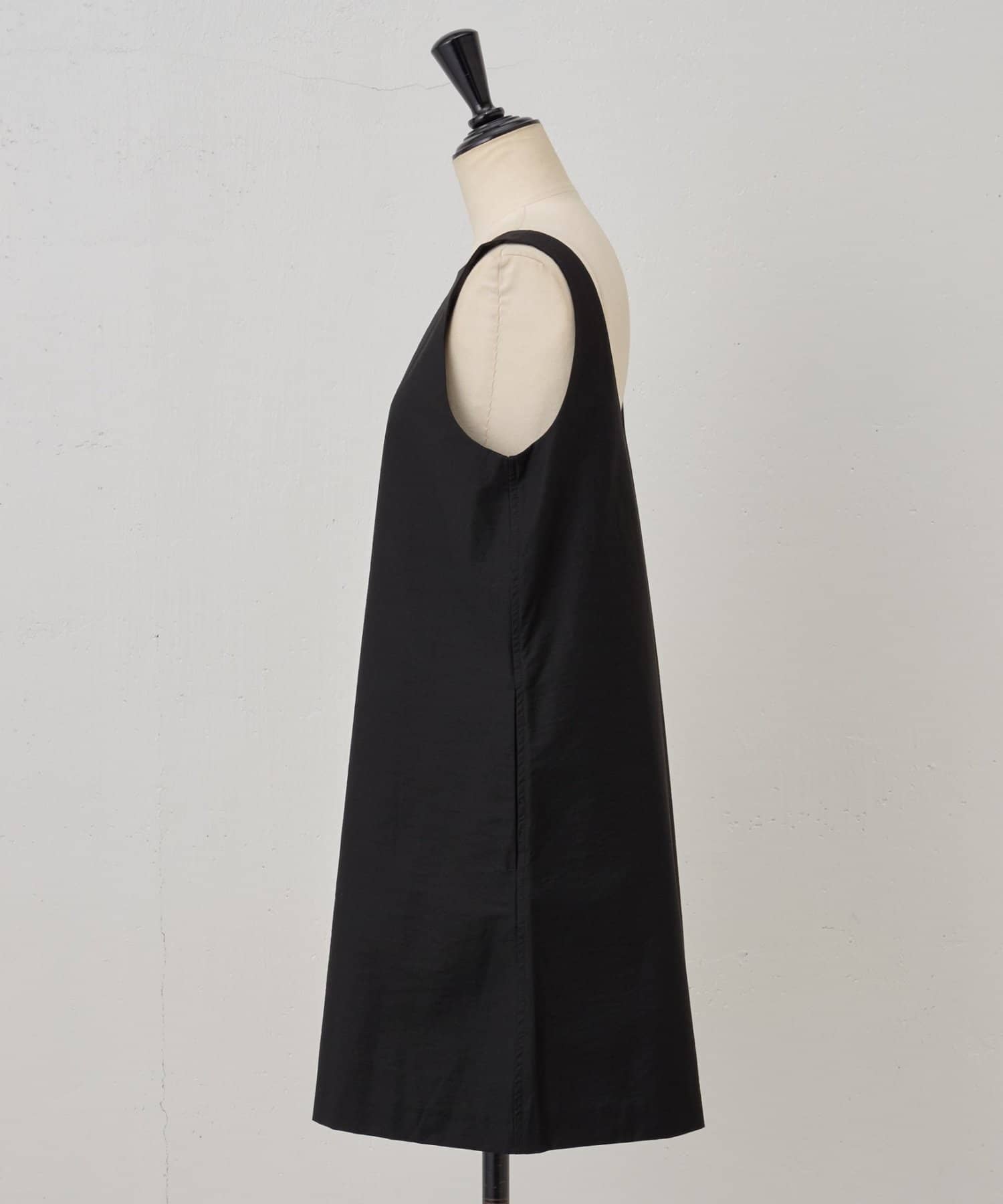 バックスタイルが大きく開いたチュニック丈のワンピース。