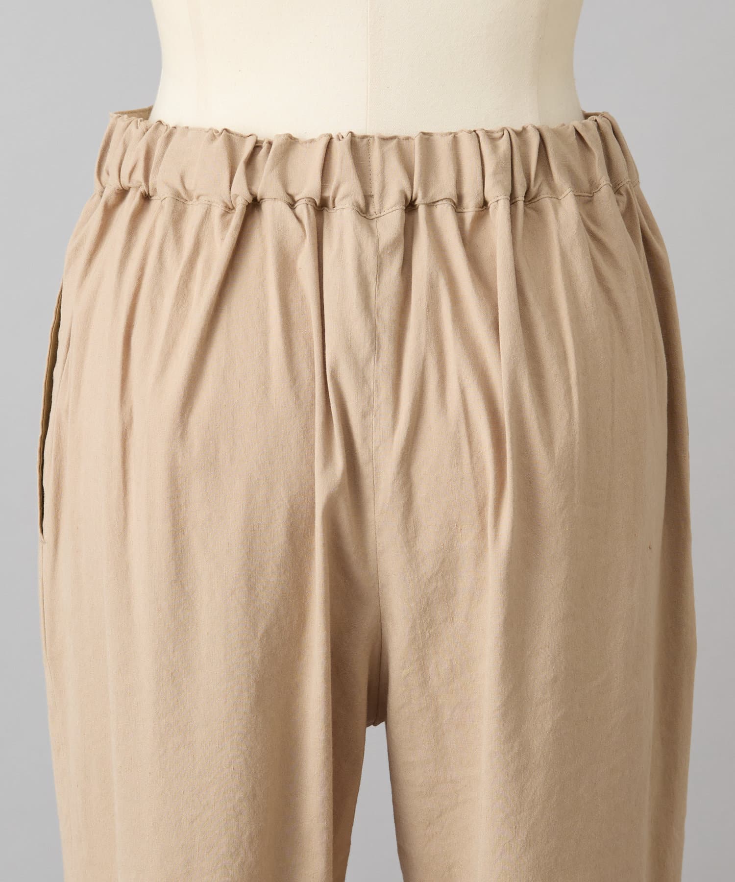 ストレッチ性のある生地に加えて、ウエストは後ろゴム仕様。