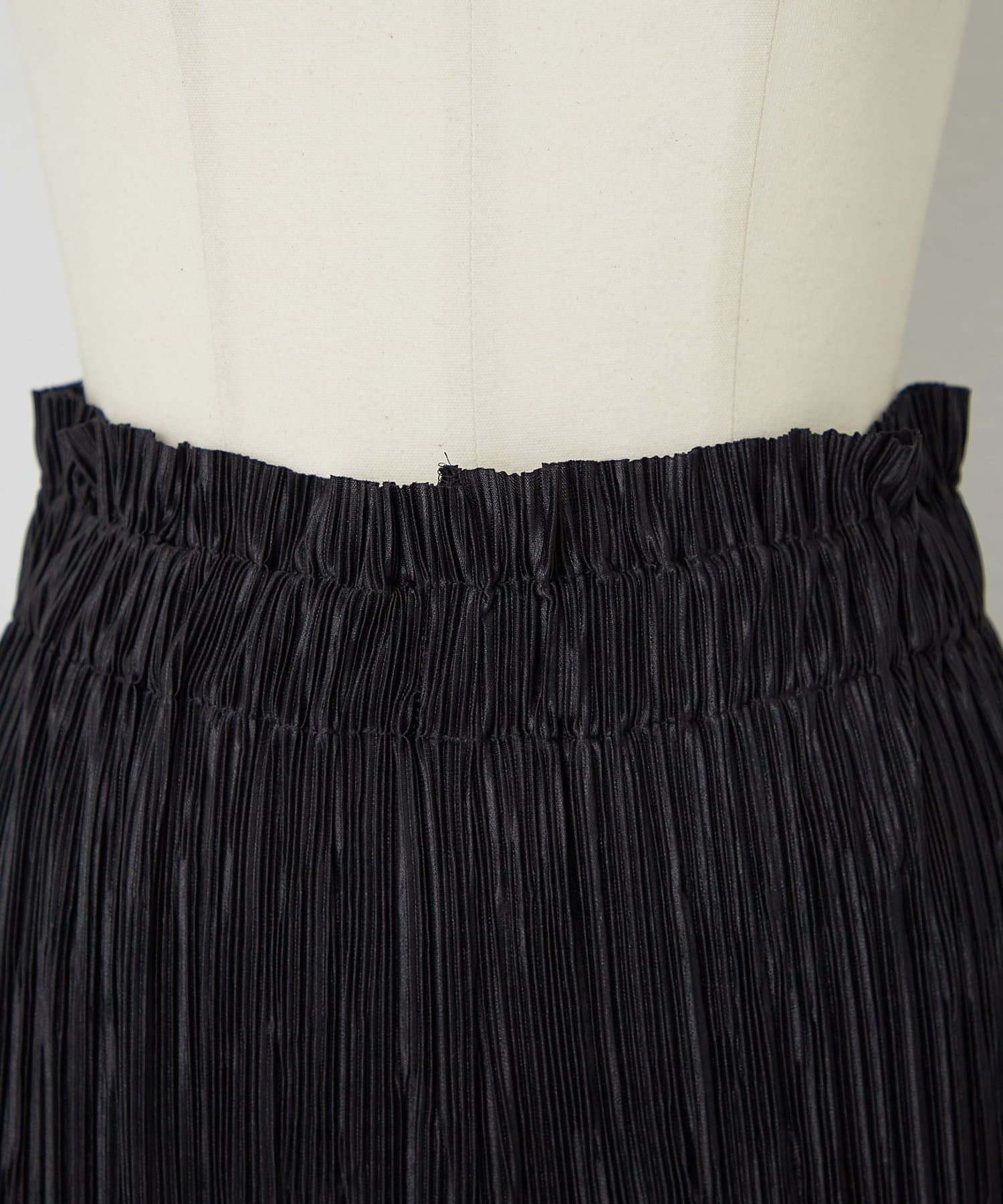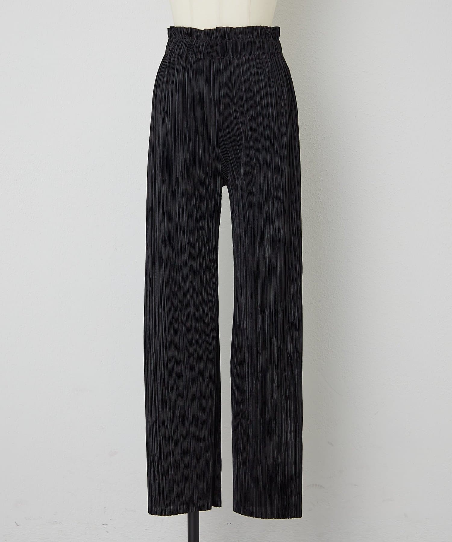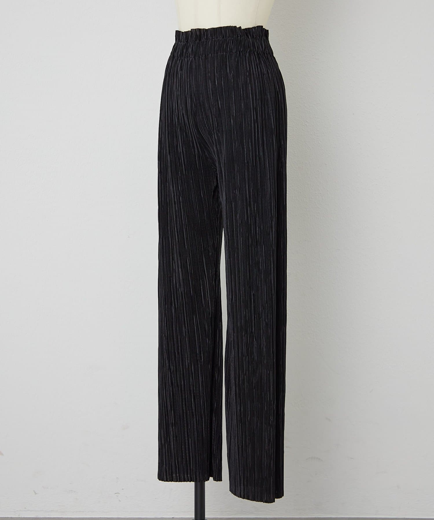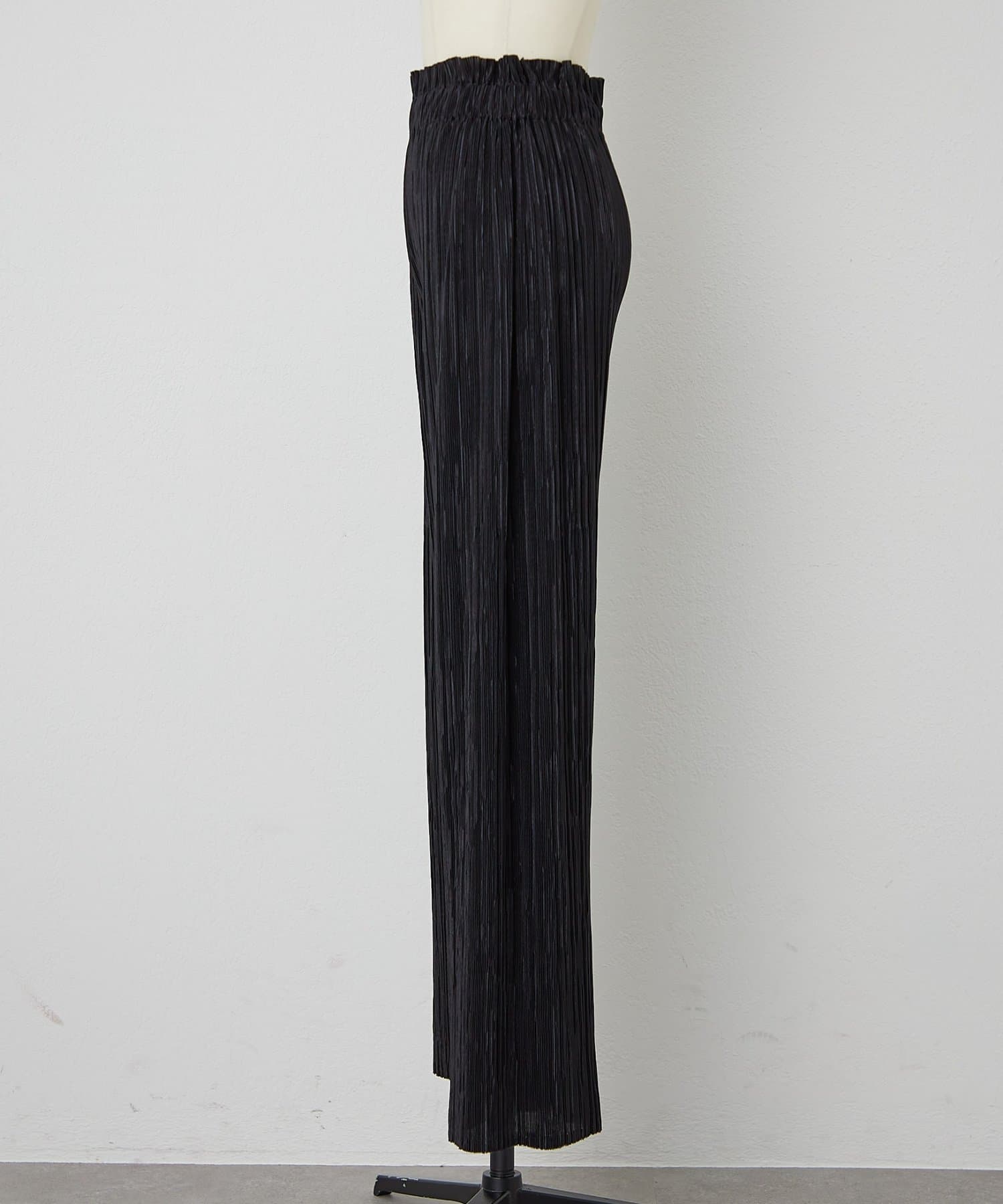 細かなリブのようなプリーツ加工を施した生地は、動くたびに表情を変え、軽やかでモードな印象に。