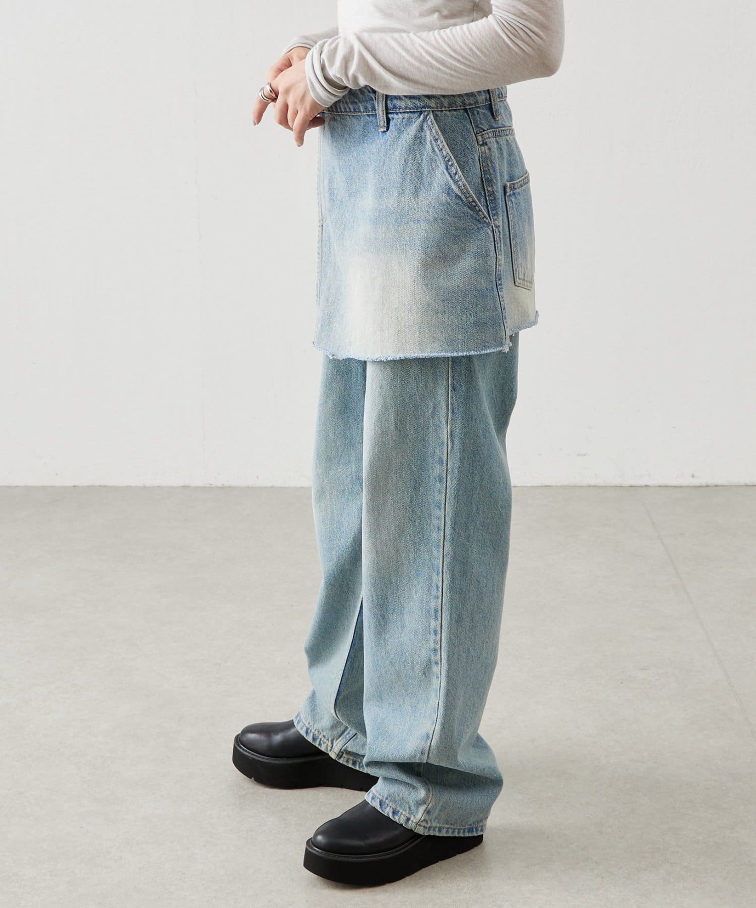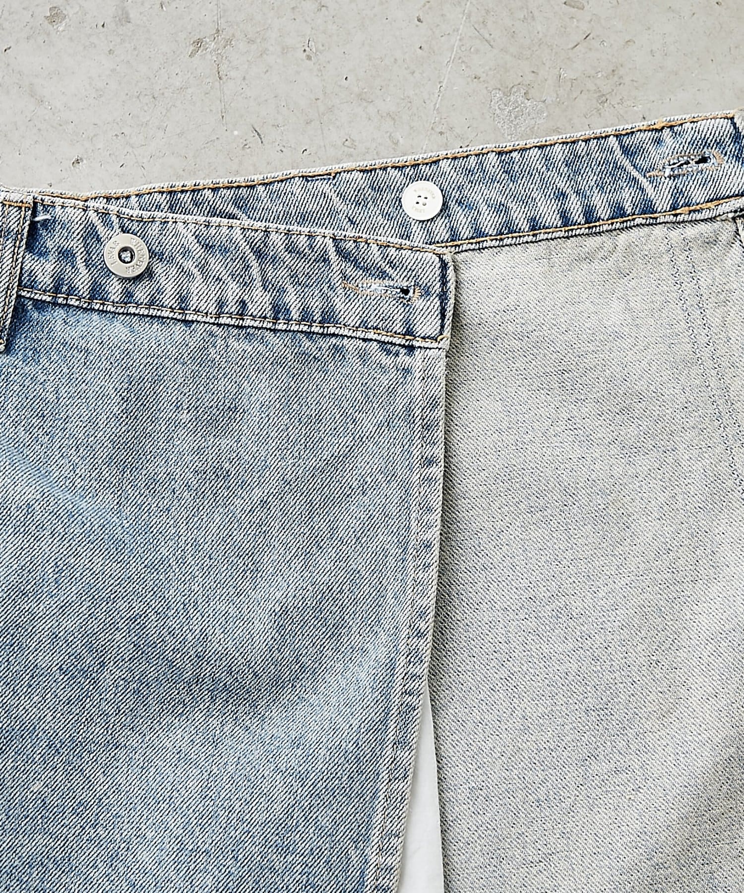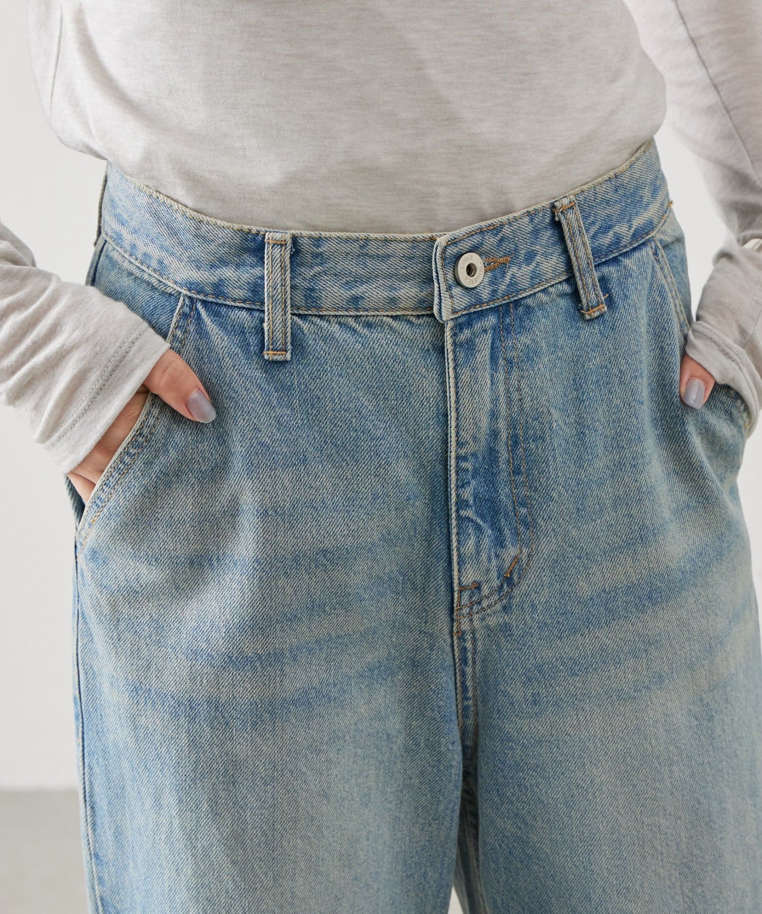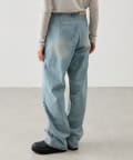 ストーンウォッシュで全体的に落ち感とダメージ加工をほどこしています。