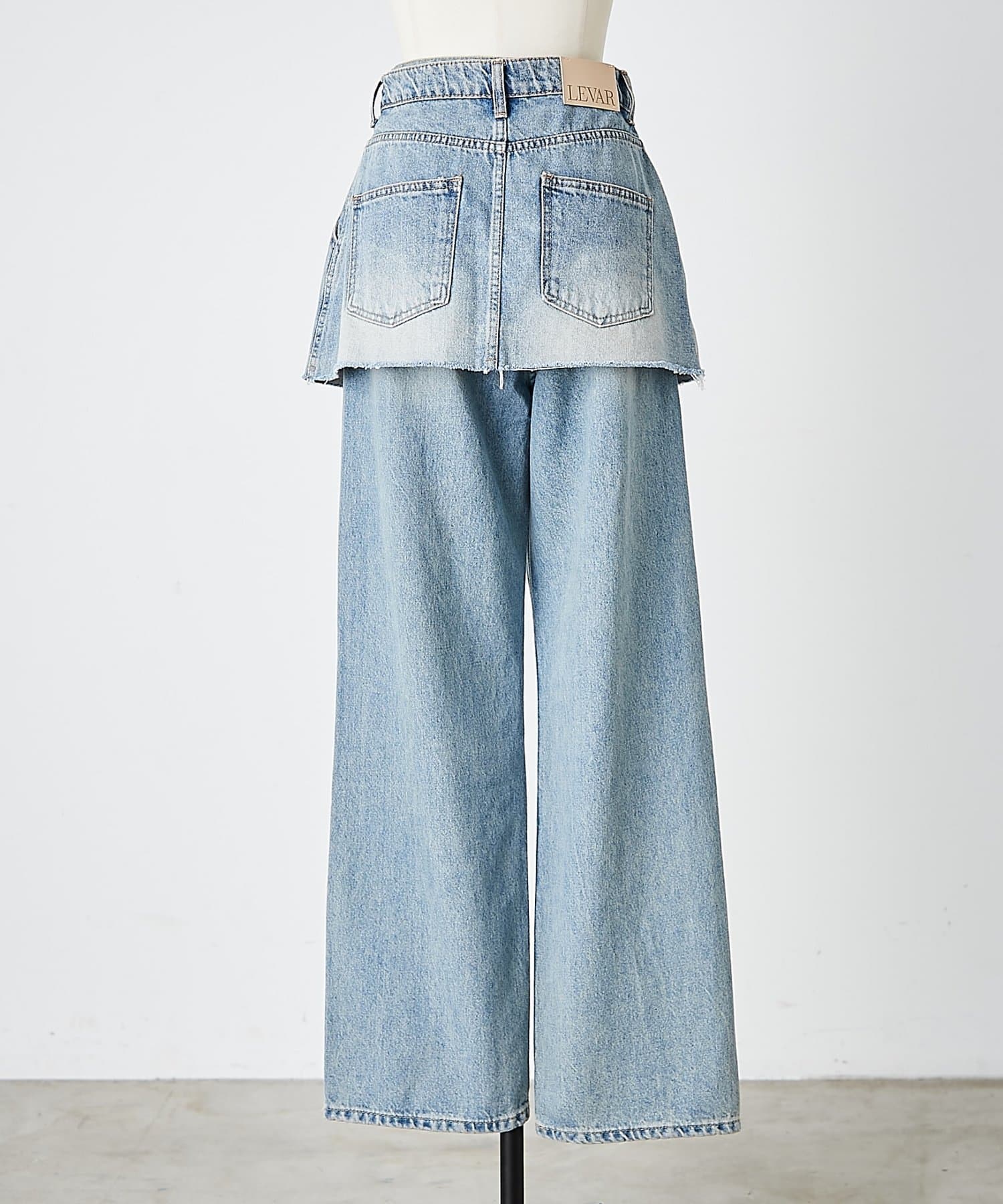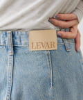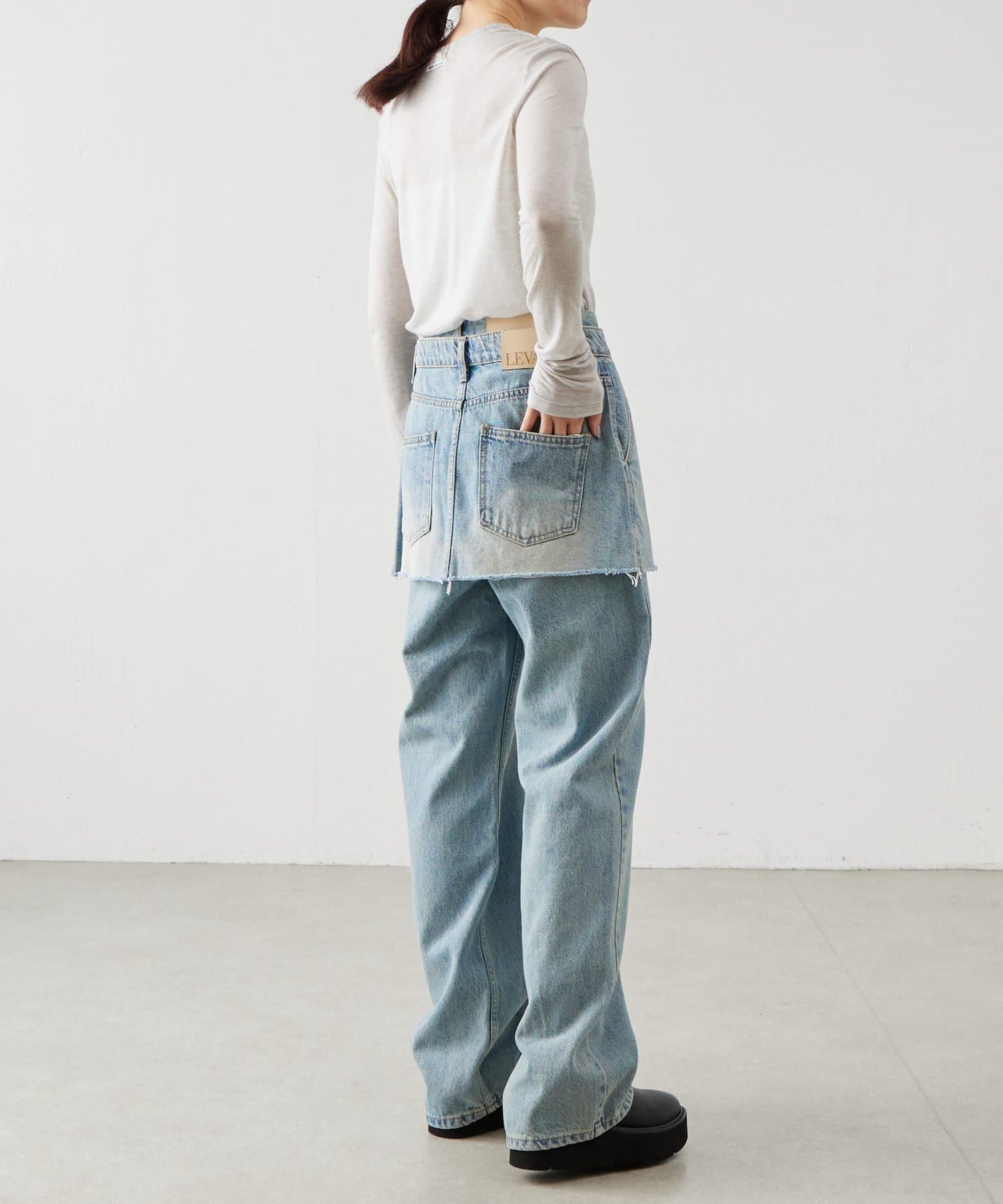 ブランドロゴを型押しした、ウエスト部分のレザーパッチがポイント。
