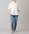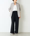 仕立てのよさが際立つすっきりとしたシルエットに、左右で異なるサイドのディテール—右はスリット入り、左にはメタルボタンを添えて、さりげない遊び心をプラス。
