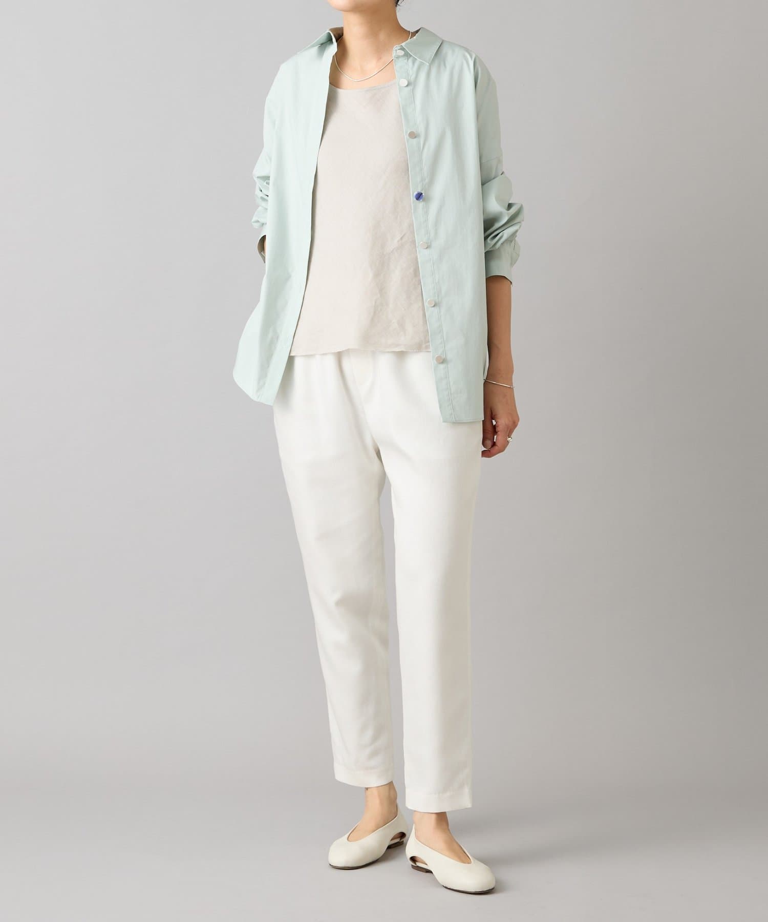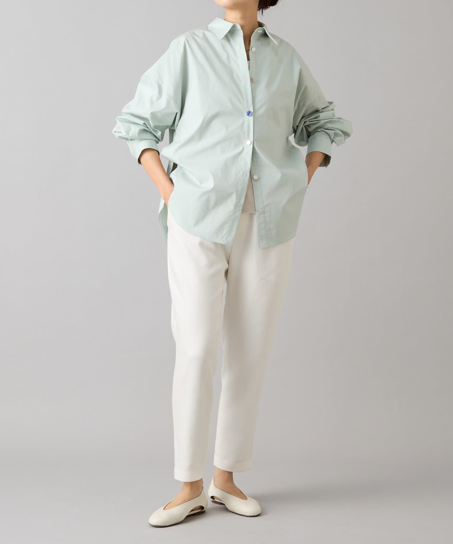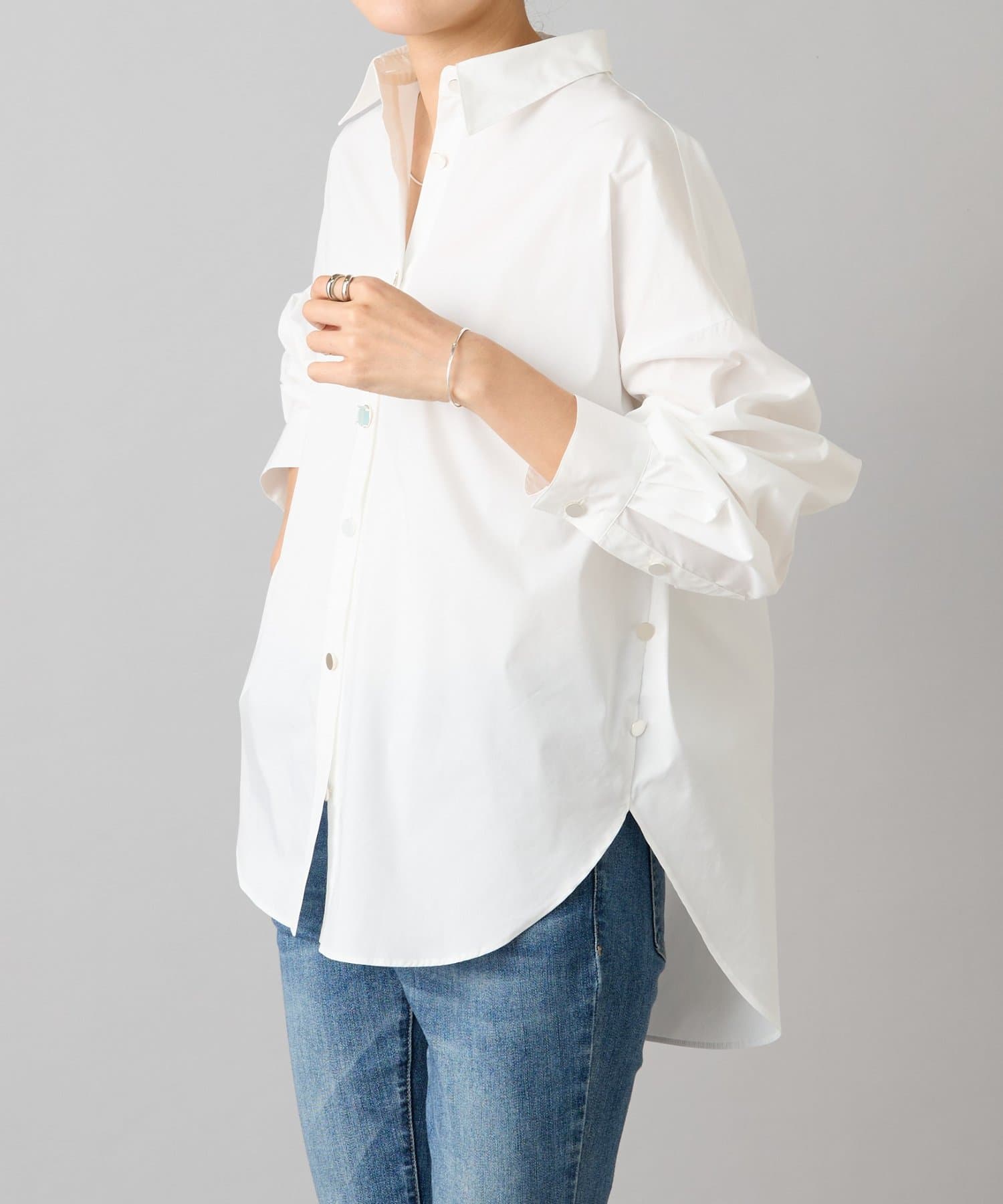 mukasa(ムカサ)とジュエリーブランド±BALANCE(バランス)のデザイナーでTHINGS THAT MATTER(シングスザットマター)のディレクターを手がける武笠綾子さんとのコラボレーションから生まれたシャツ。
