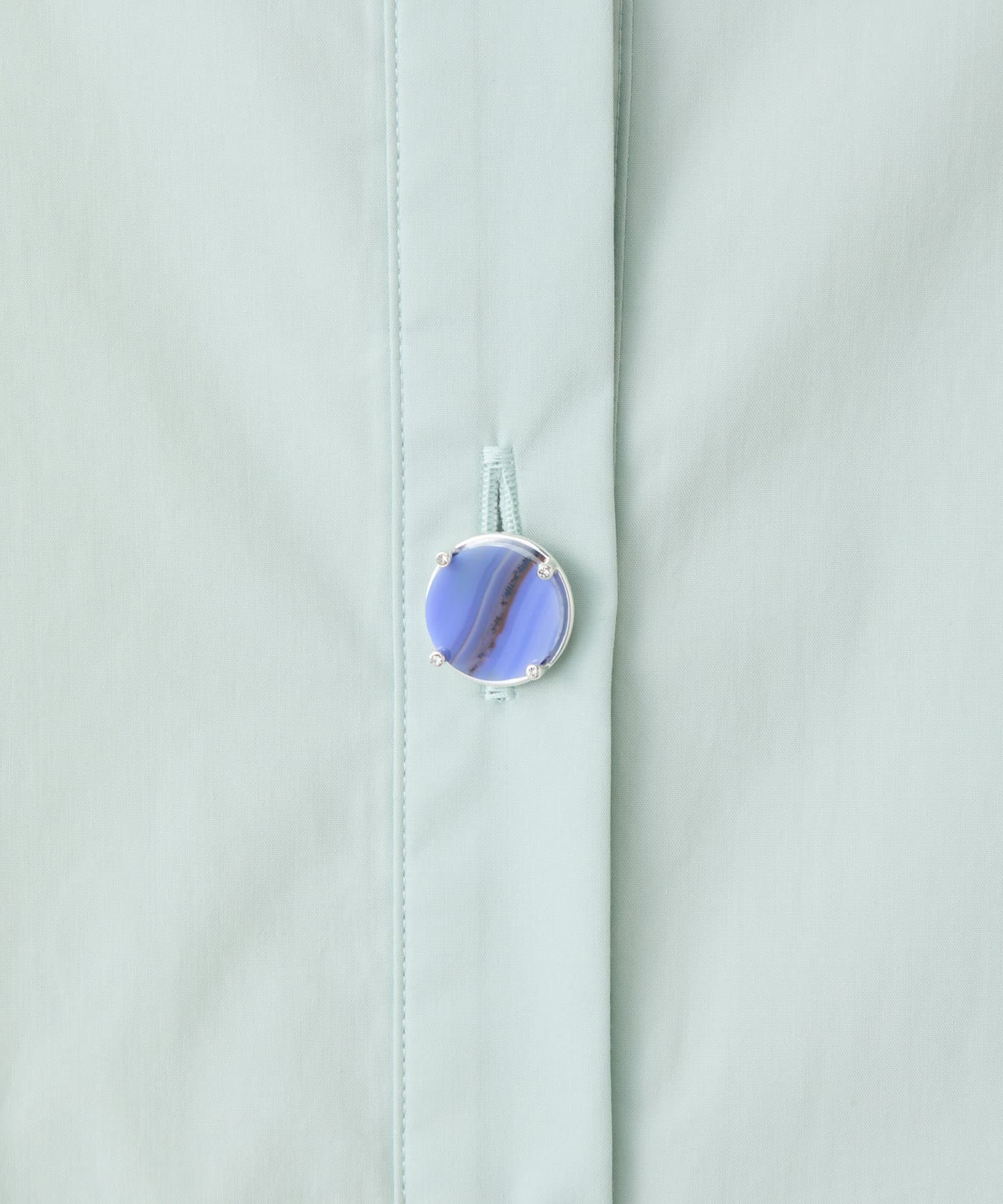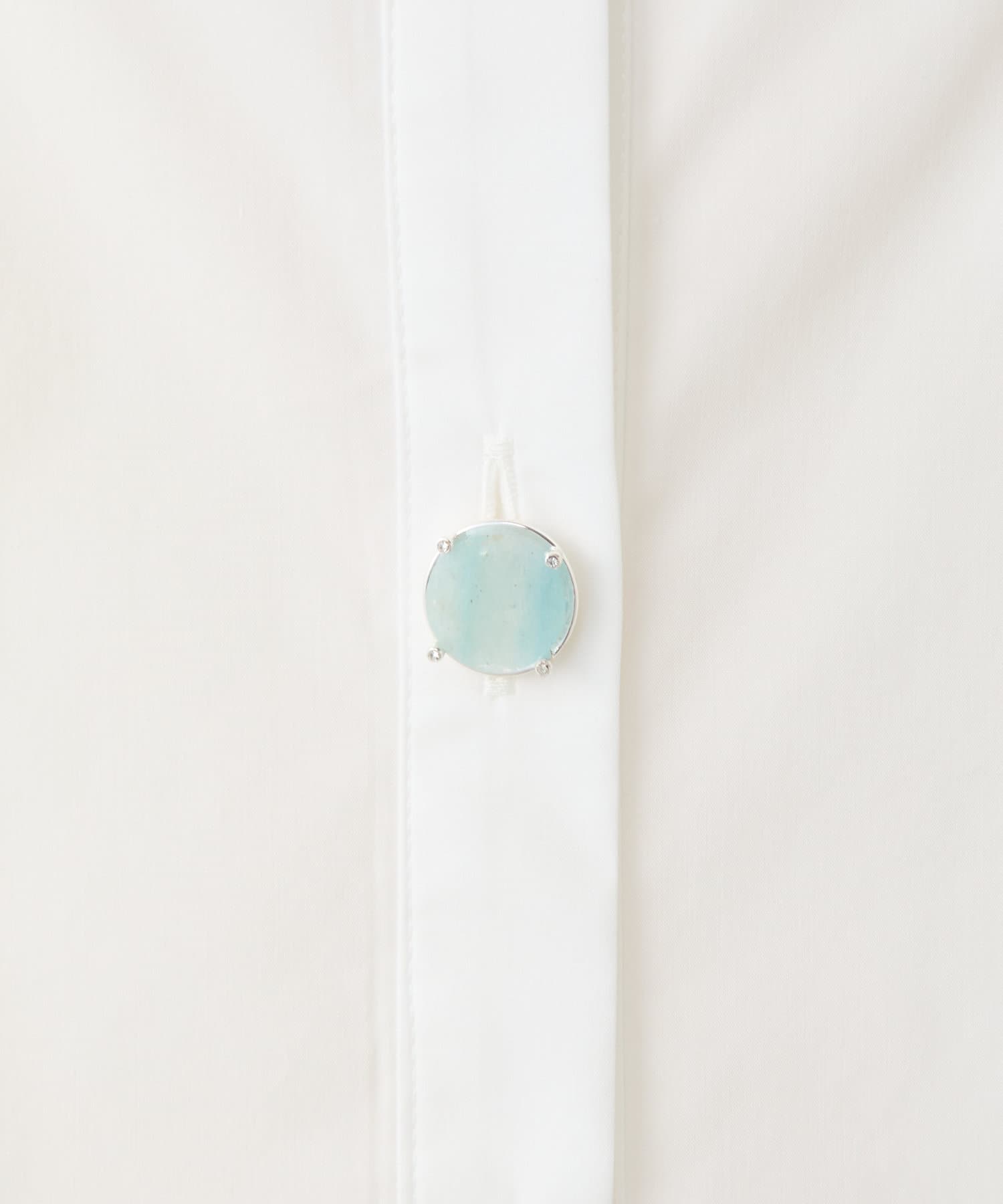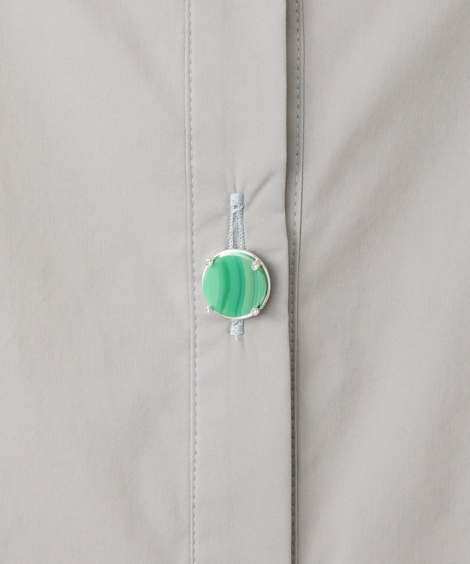 フロントには小さなシルバーボタンが並び、その中にひとつだけ武笠さんが手がけたジュエリーパーツを埋め込んだような、印象的なデザインを忍ばせました。