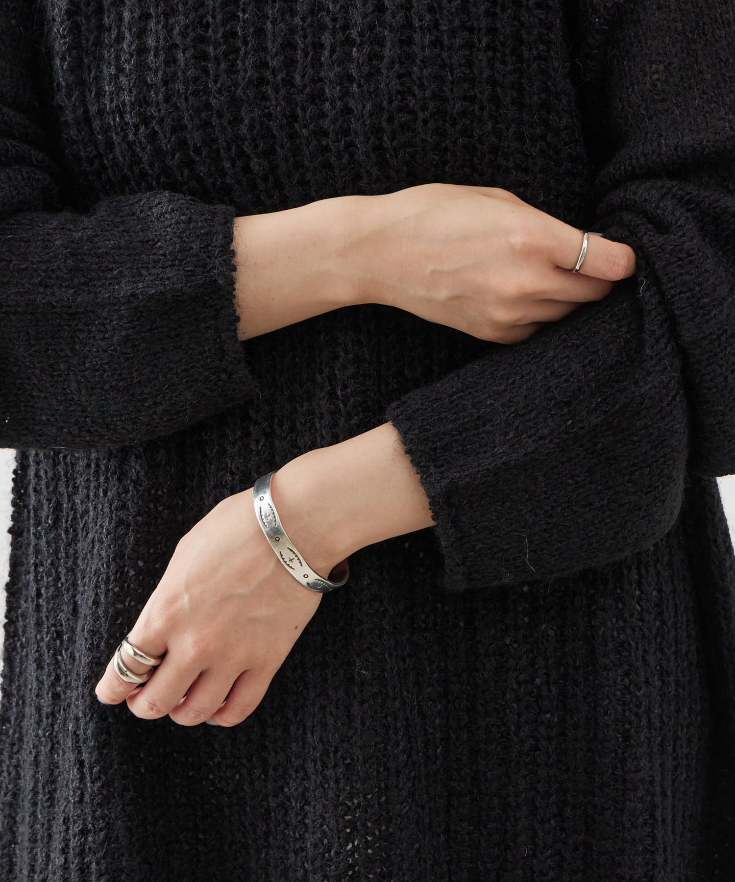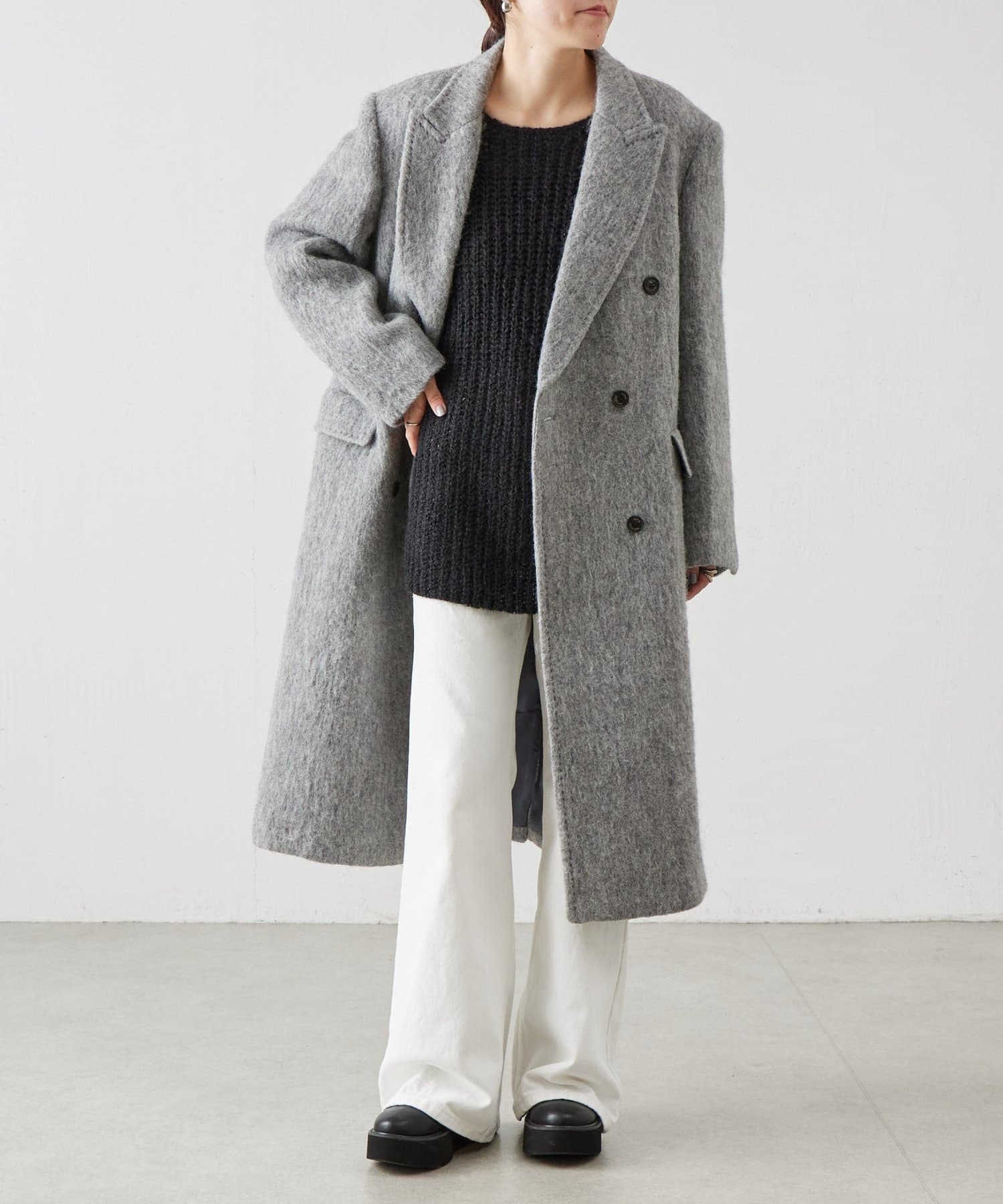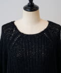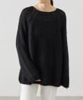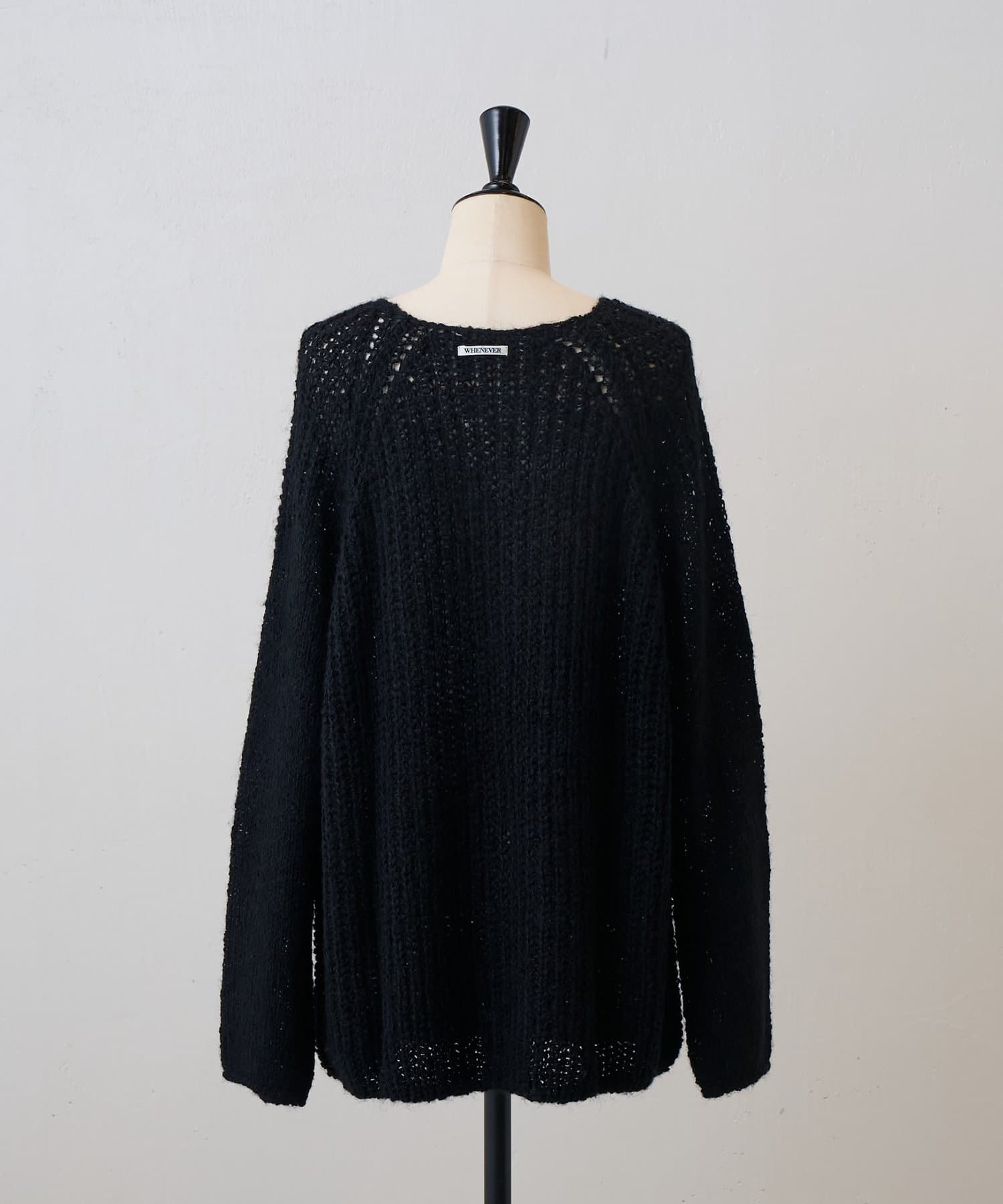 ローゲージの網目がわかいいルーズシルエットのニット。アルパカ混の節のあるニット糸を使用。