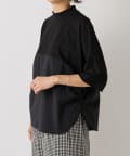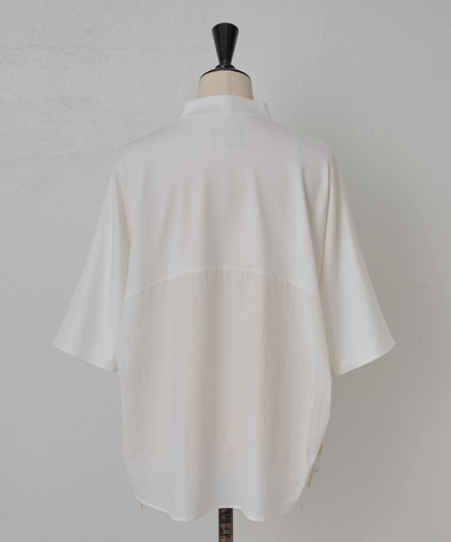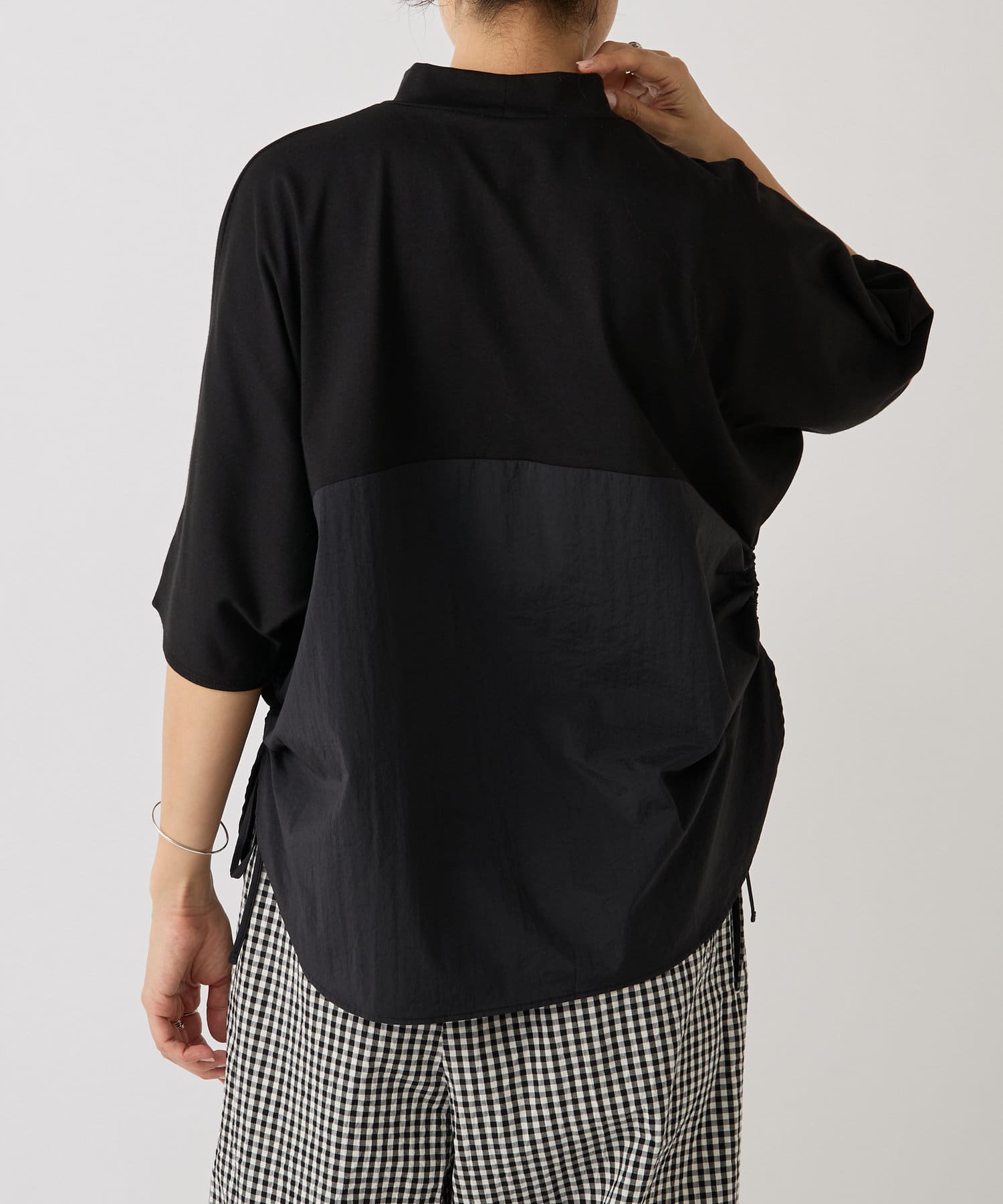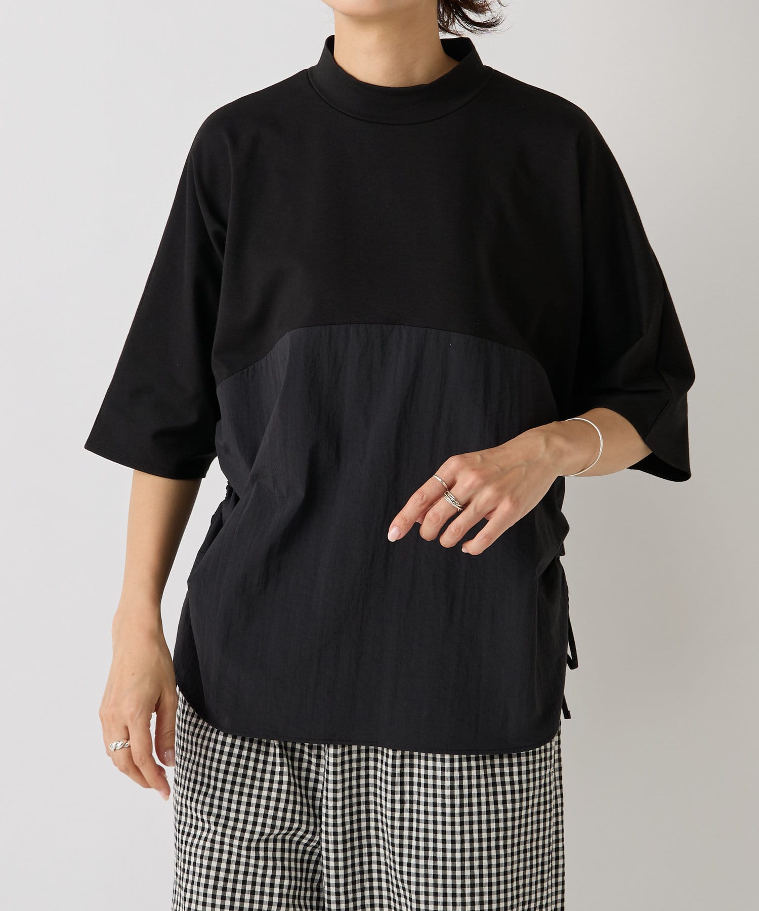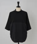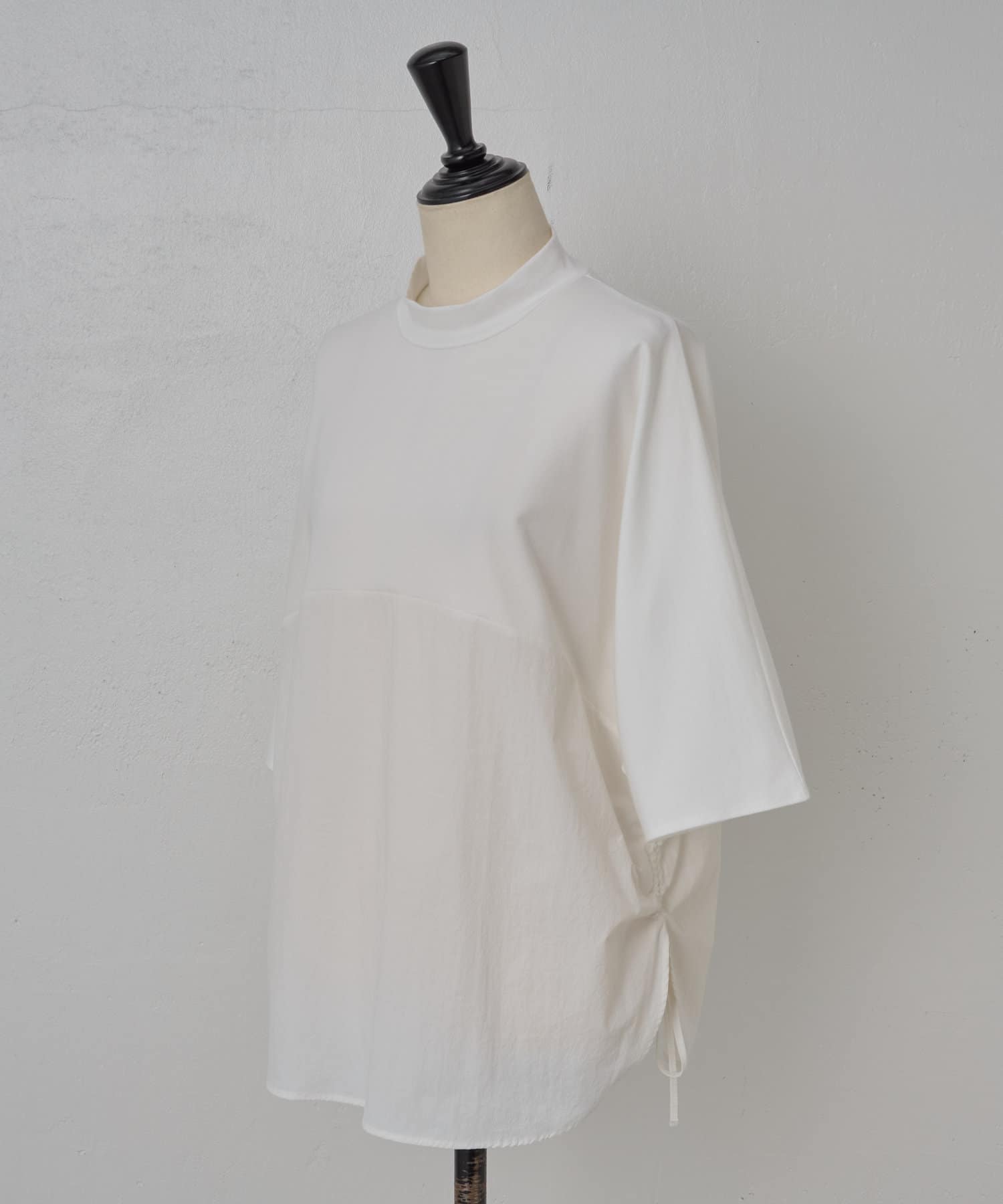 首元の開きが気になる方におすすめの、スタンドカラー仕様で安心感のあるカットソー。
