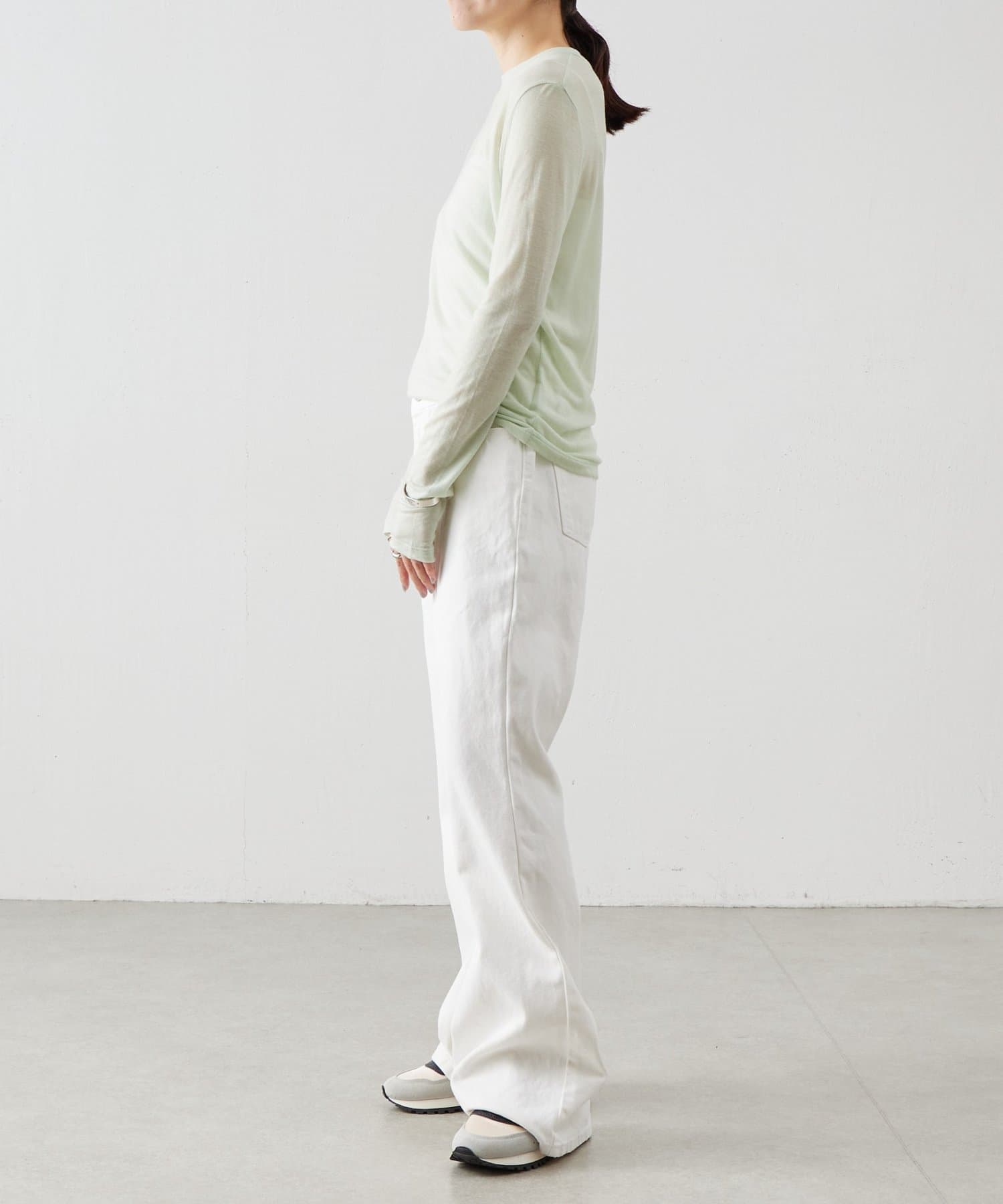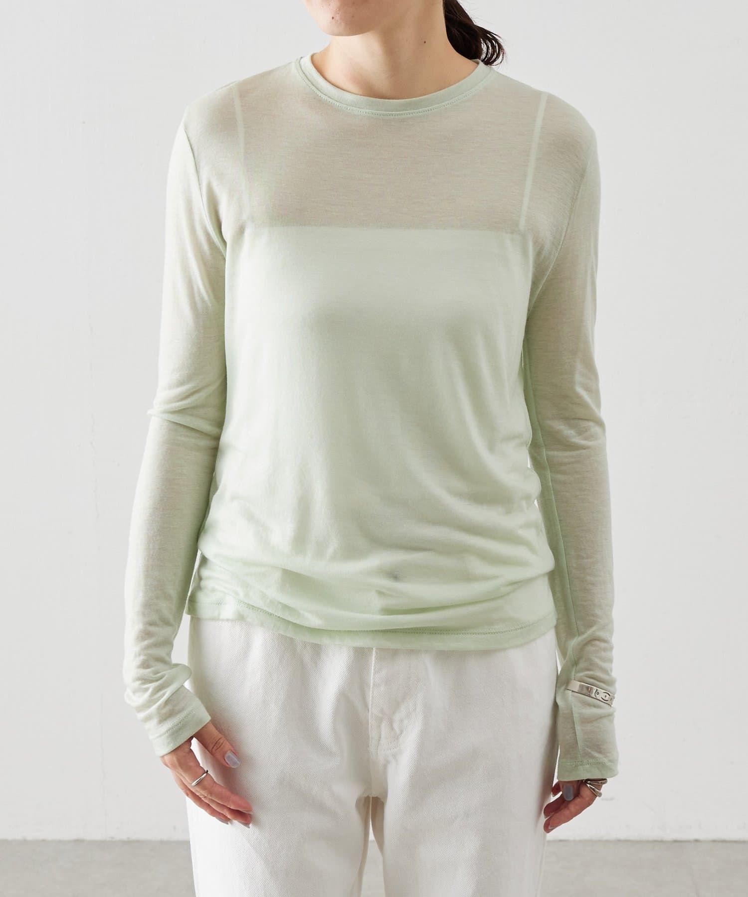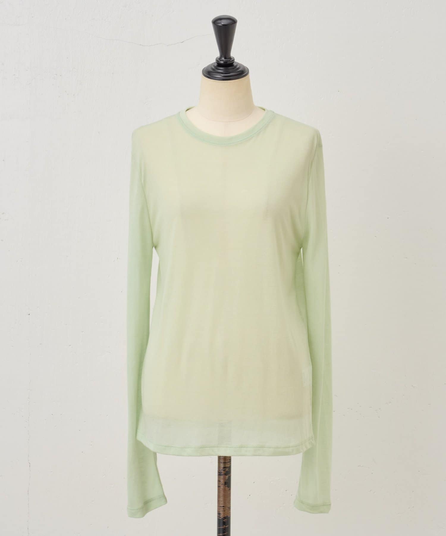 ウール混のテンセル素材を使用したアイリッシュミントのシアーカットソー。
