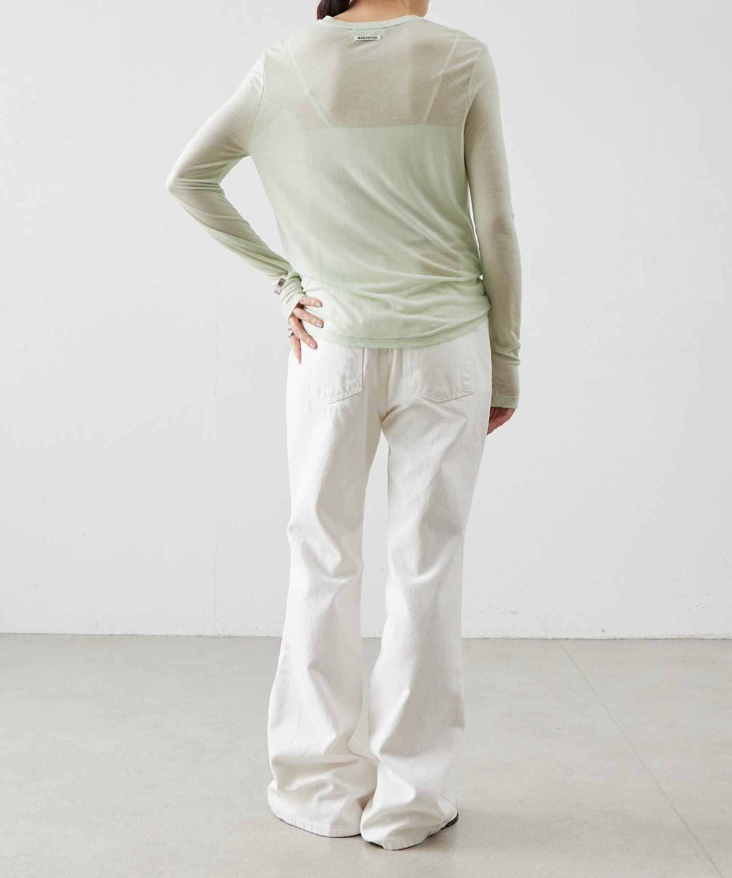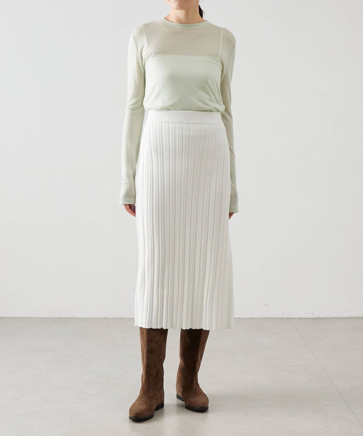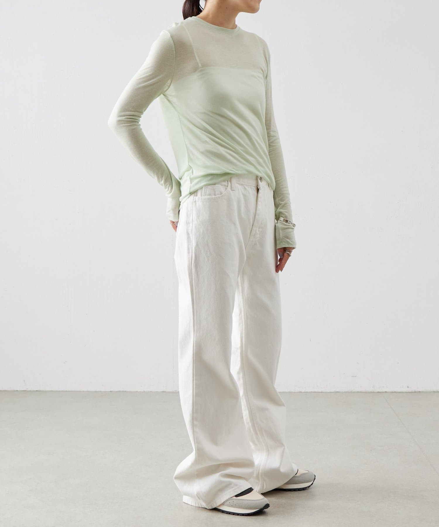 ウール混のテンセル素材を使用したアイリッシュミントのシアーカットソー。