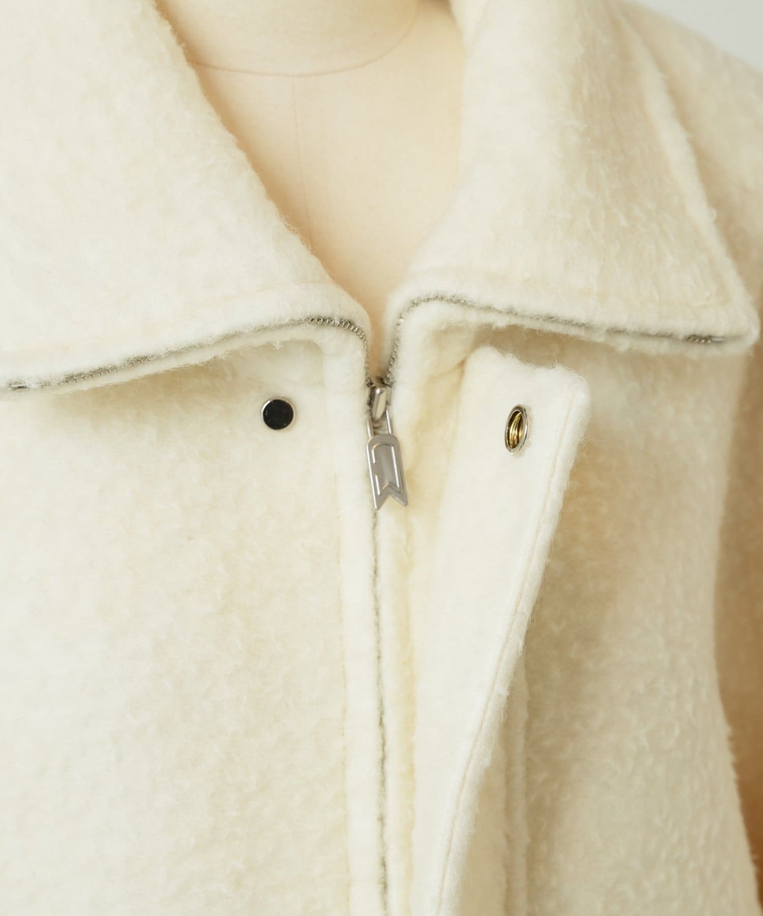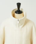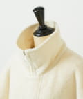 フロントファスナーはダブルジップ仕様で上下の調整ができ、衿を立てて高さに変化をつけることも可能。