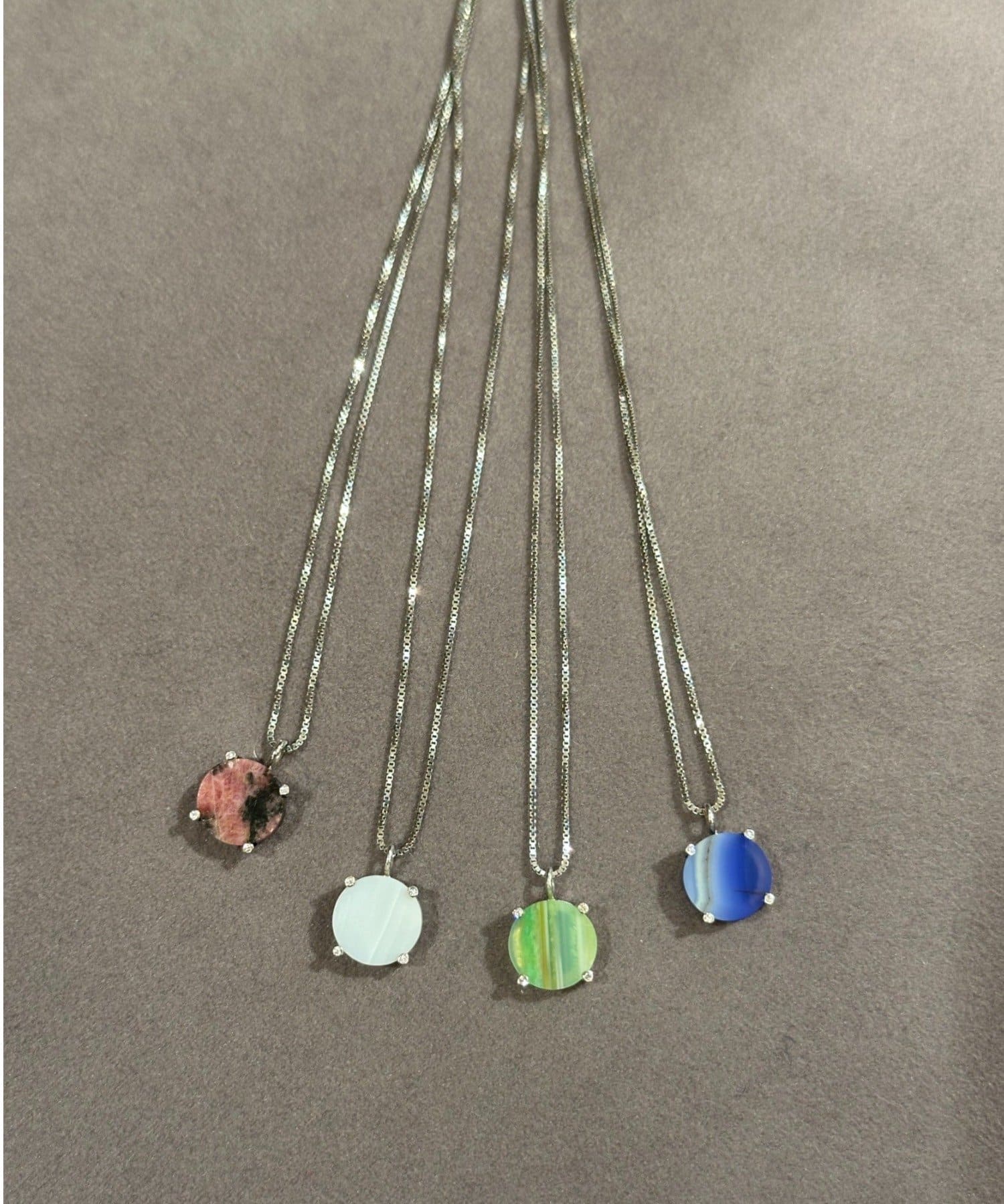 ホワイト、ピンク、グリーン、ブルーの4色のストーンが、それぞれに異なる表情を見せ、装いにさりげない彩りと透明感を添えます。