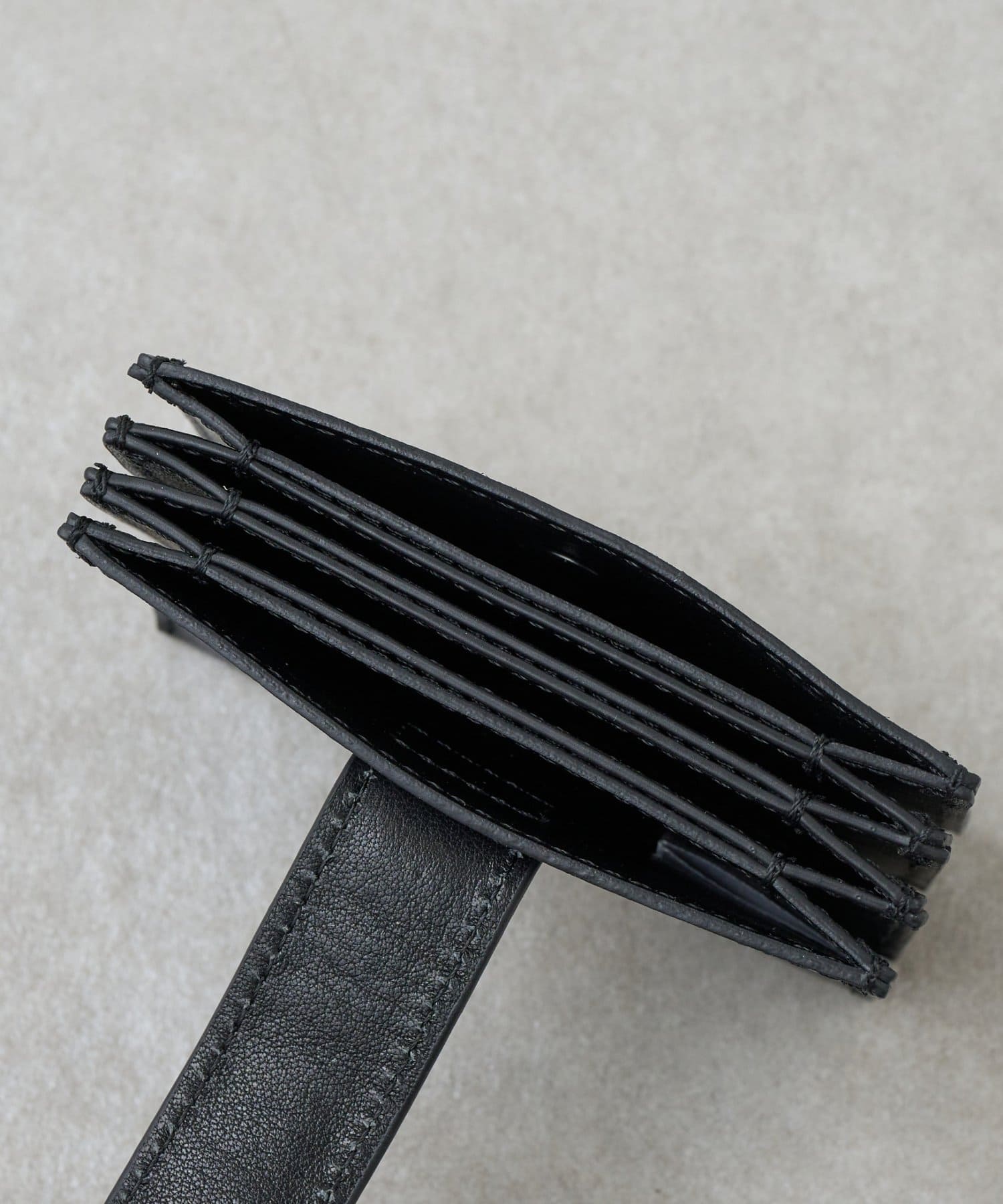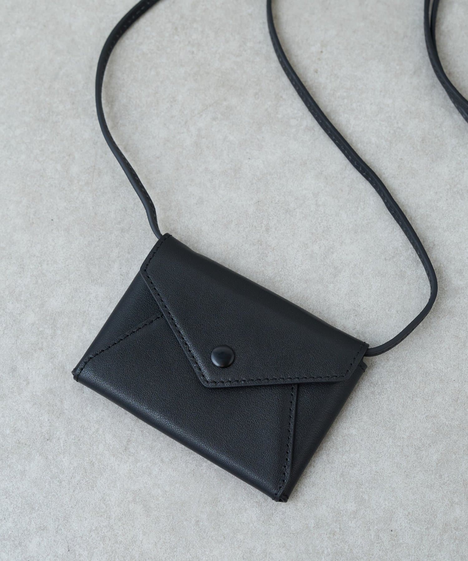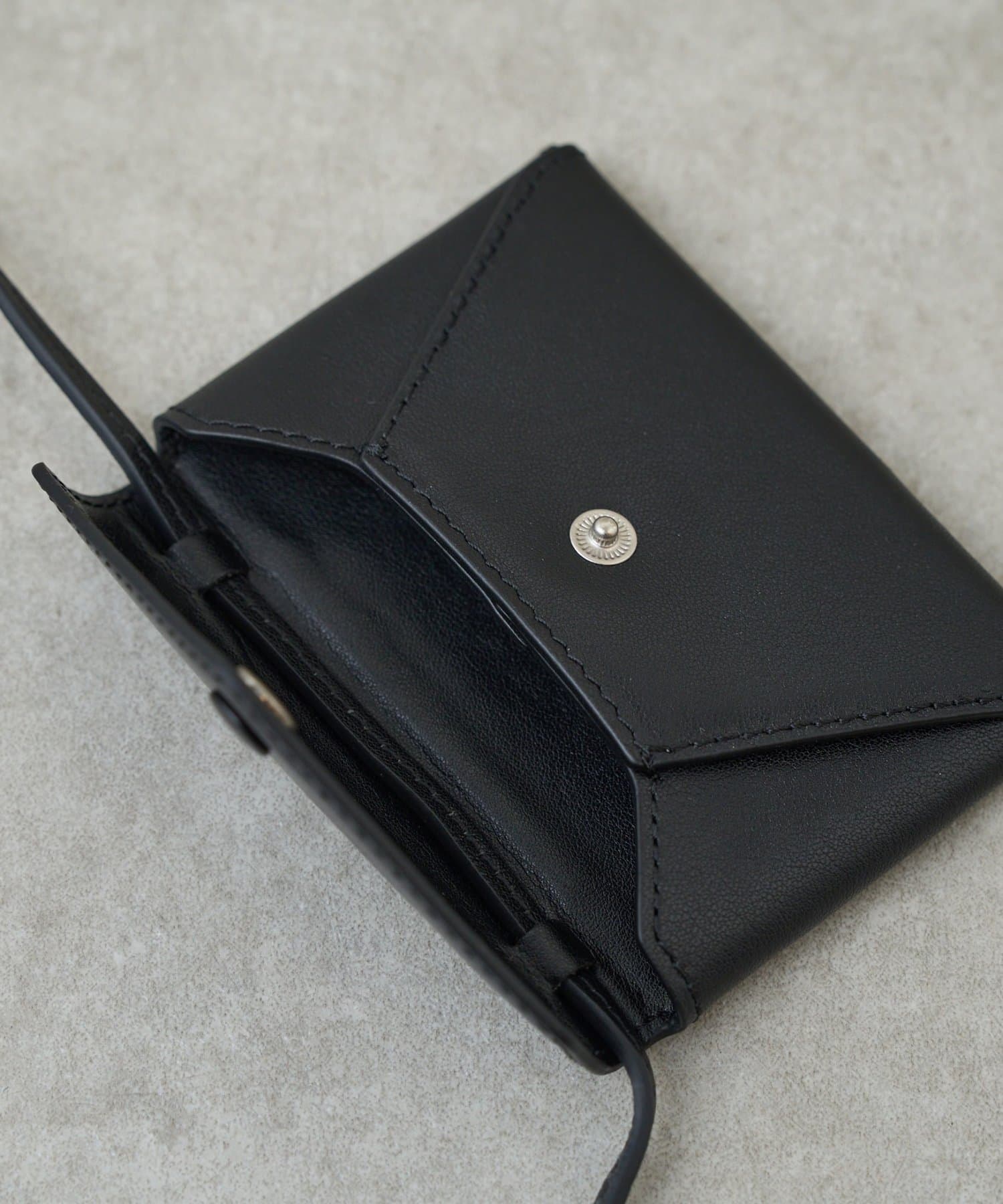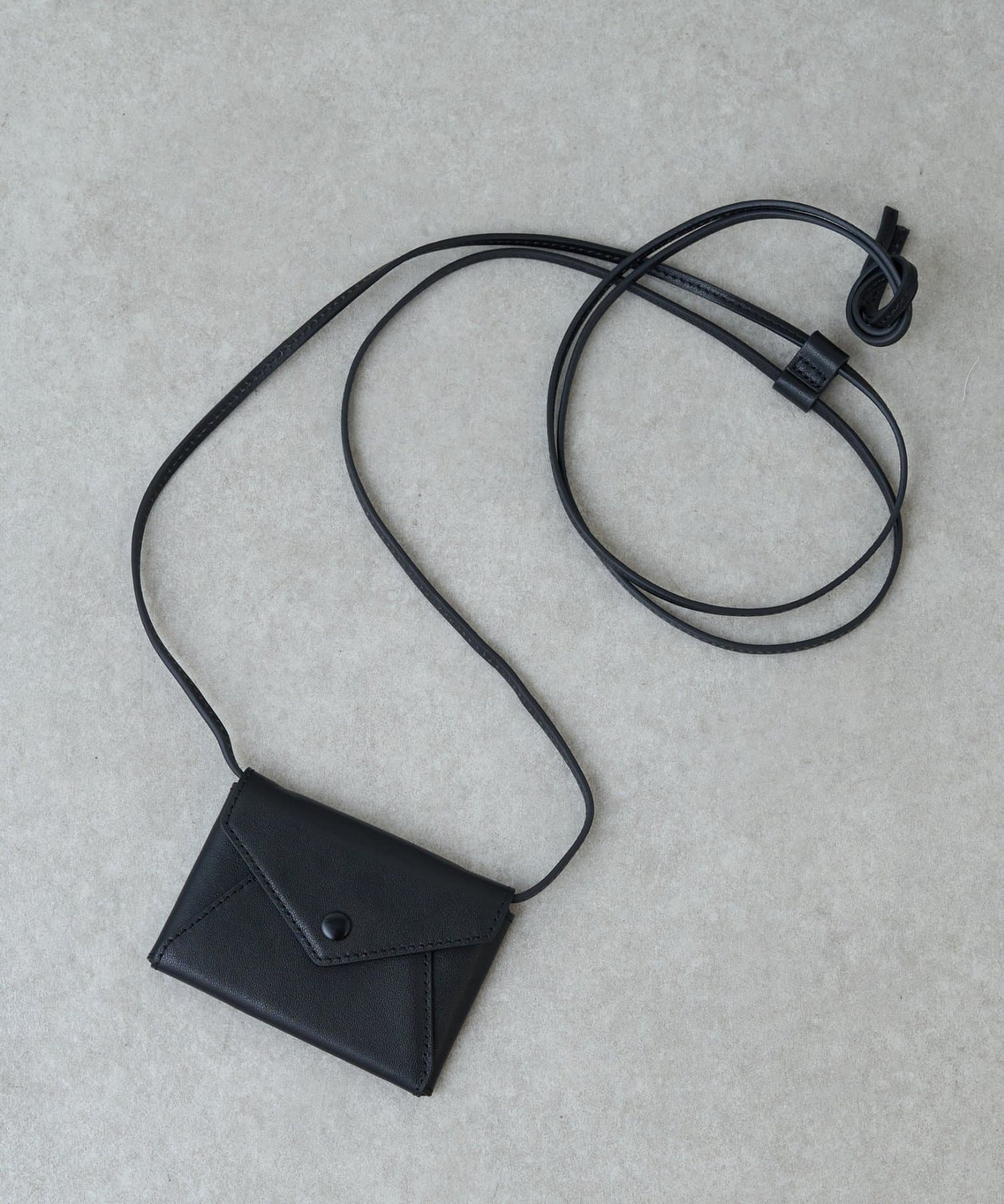 蛇腹になったカードケースとスリムな蓋つきケースがストラップでかけられるアイテム。