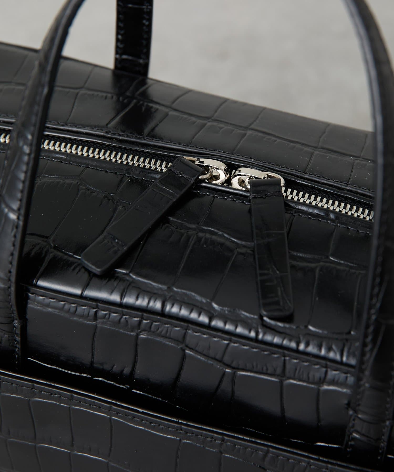 装いに華やかさをプラスするクロコダイルの型押しレザーバッグ。