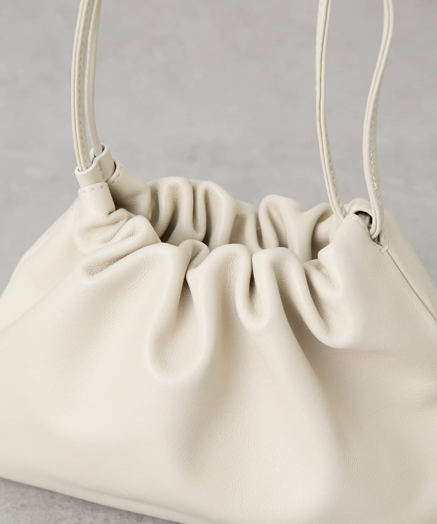 ストッパーがついているのでストラップをきゅっと絞って巾着のようにギャザーを寄せることも可能。