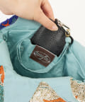 内側にはカニカン付きのストラップがついているので、パスケースなどを取り付けるのにも便利です。