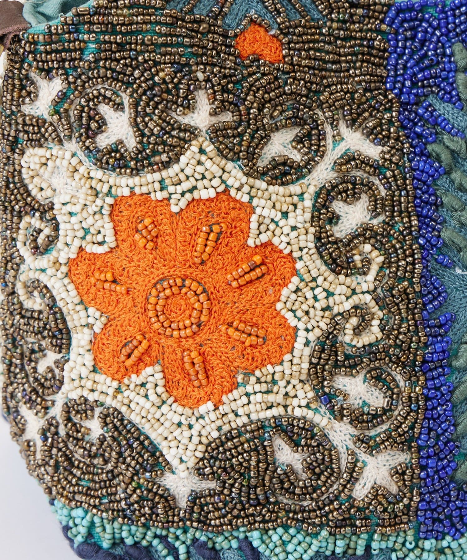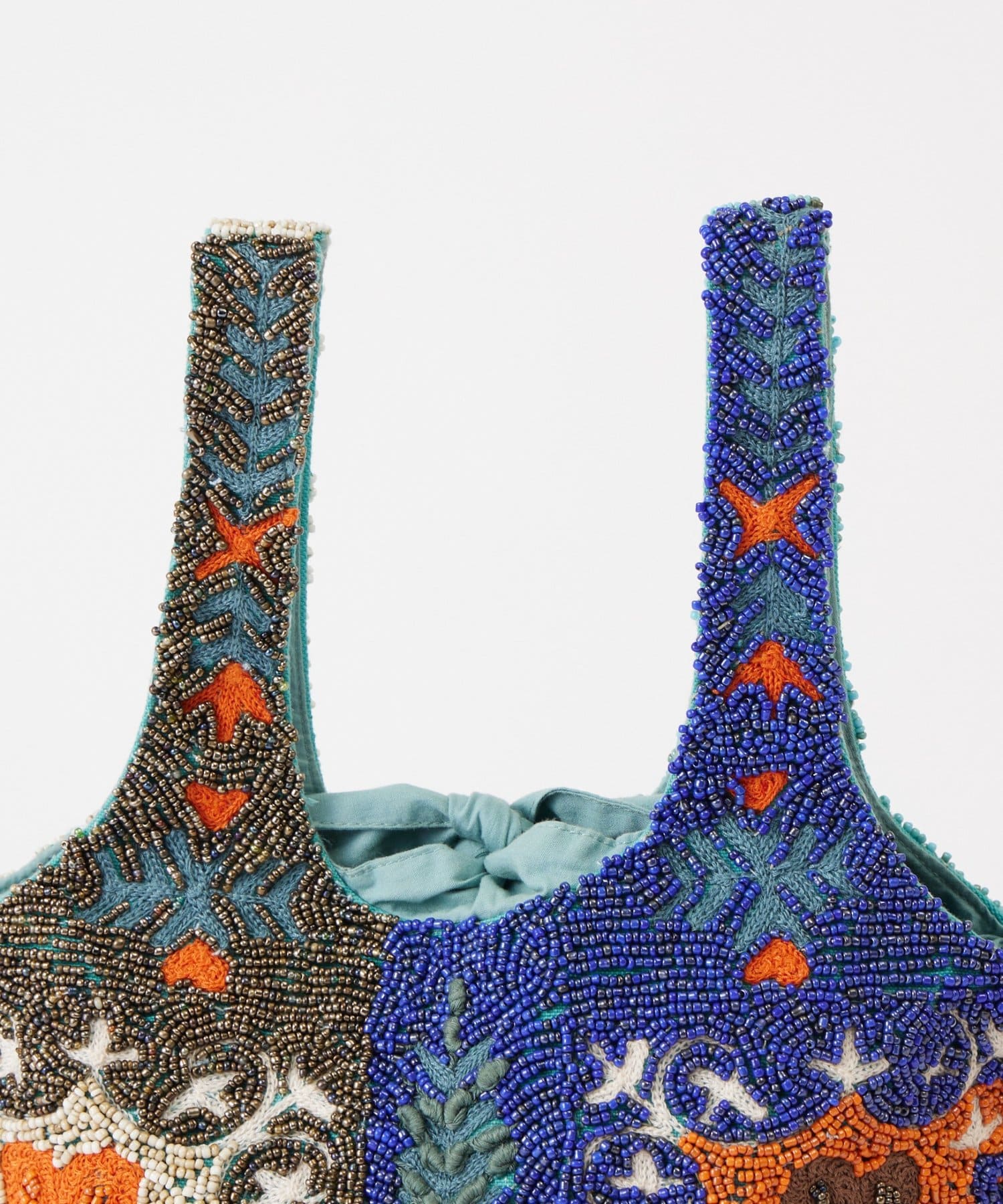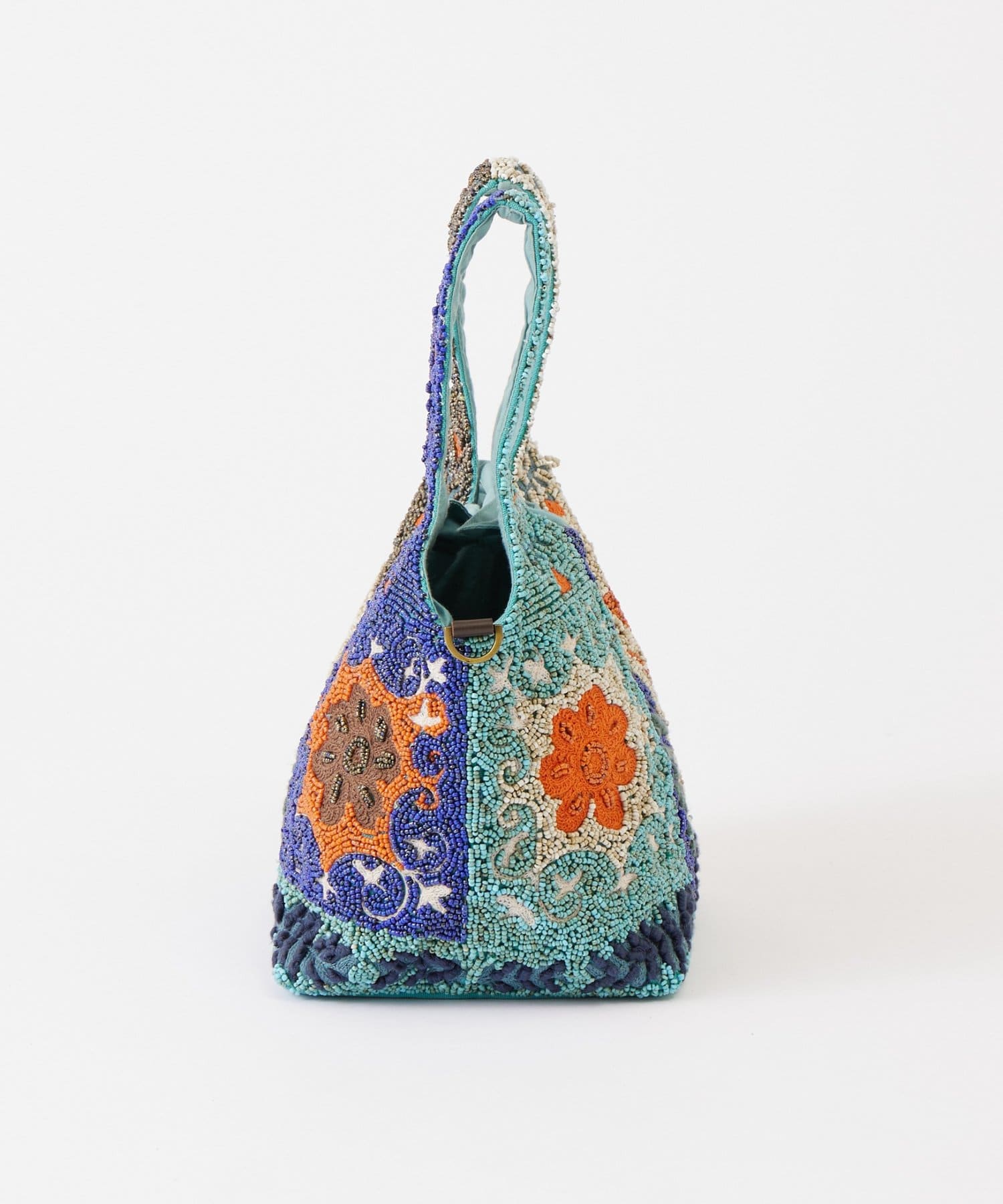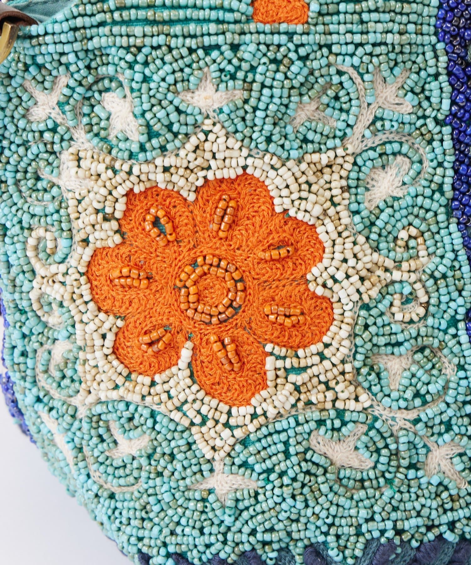 お花の文様を中心に、バッグ全体にたっぷりのビーズ刺繍を施した存在感のあるバッグ。