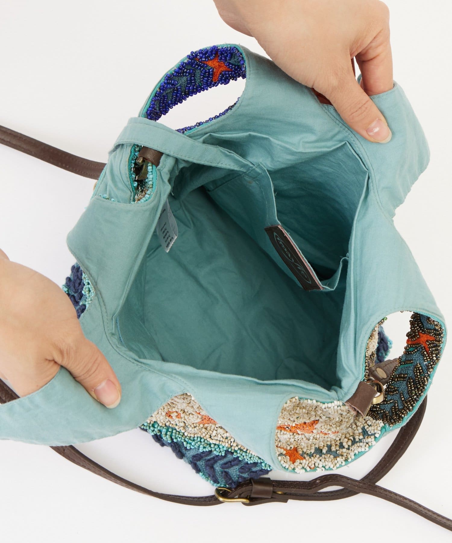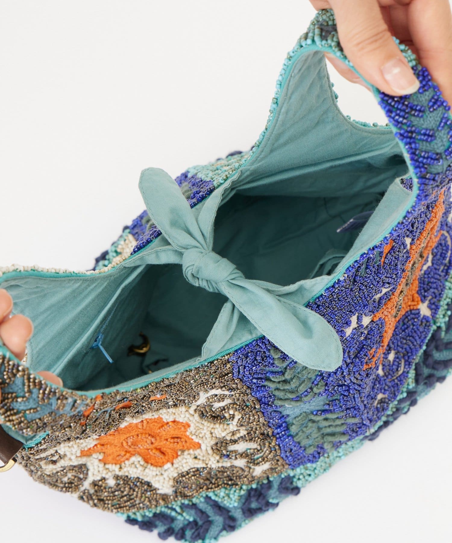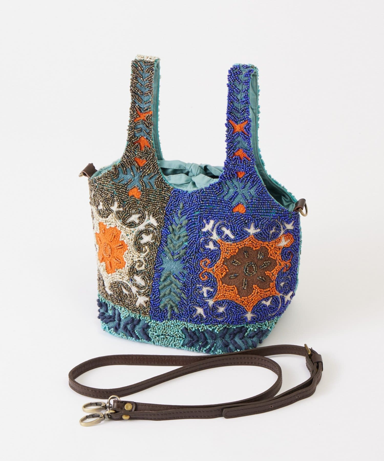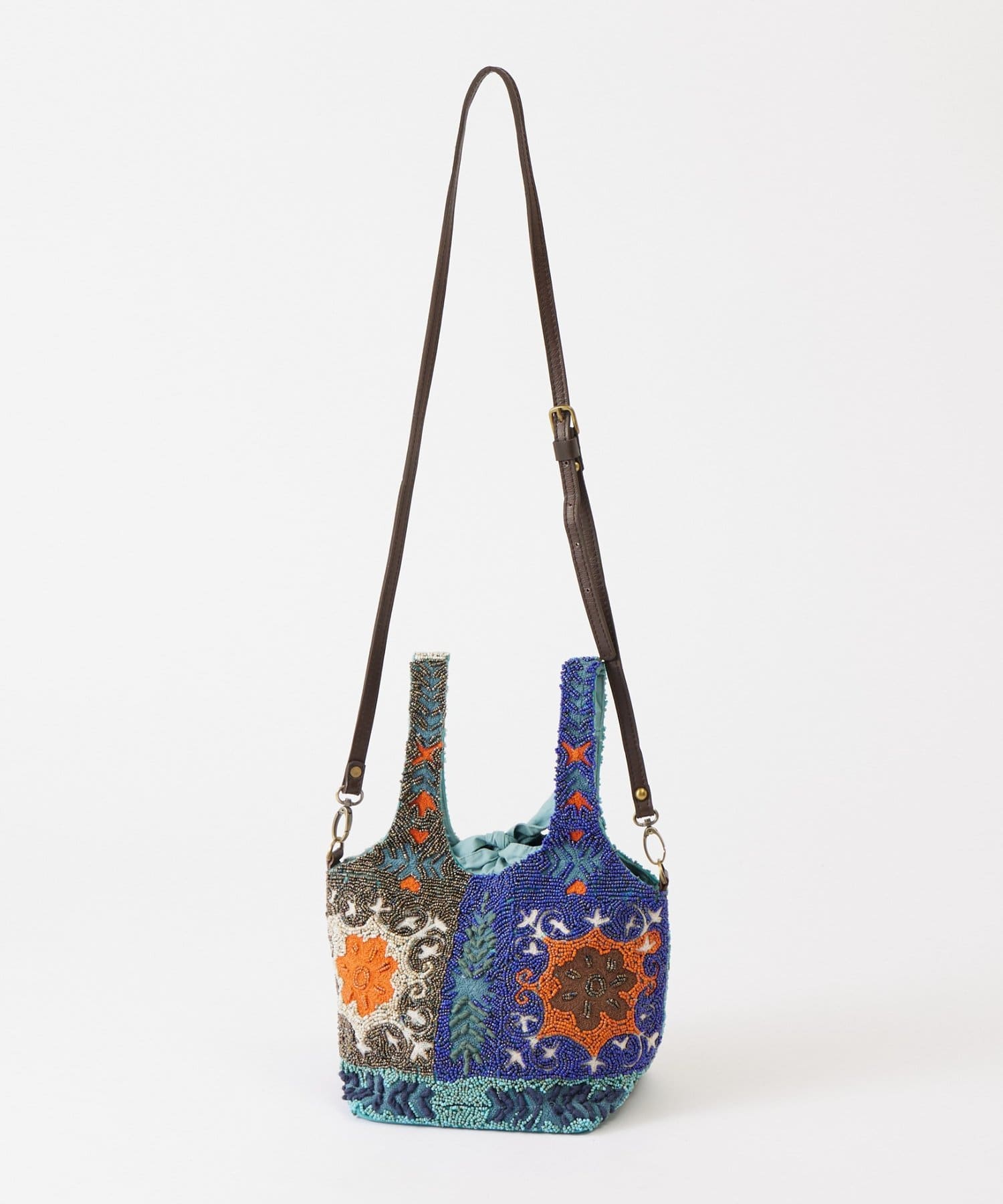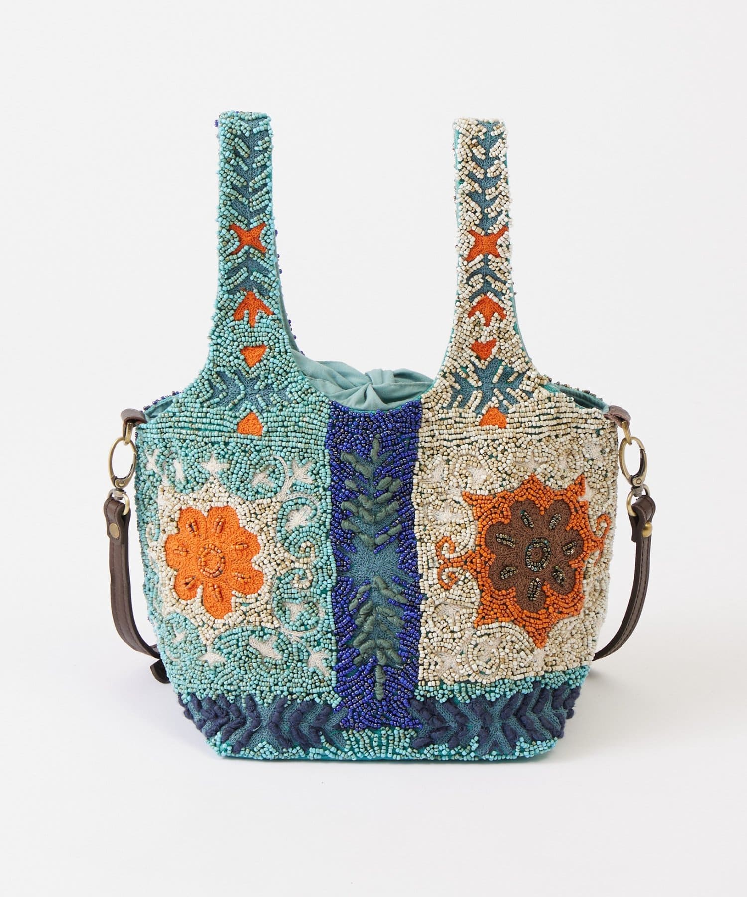 お花の文様を中心に、バッグ全体にたっぷりのビーズ刺繍を施した存在感のあるバッグ。