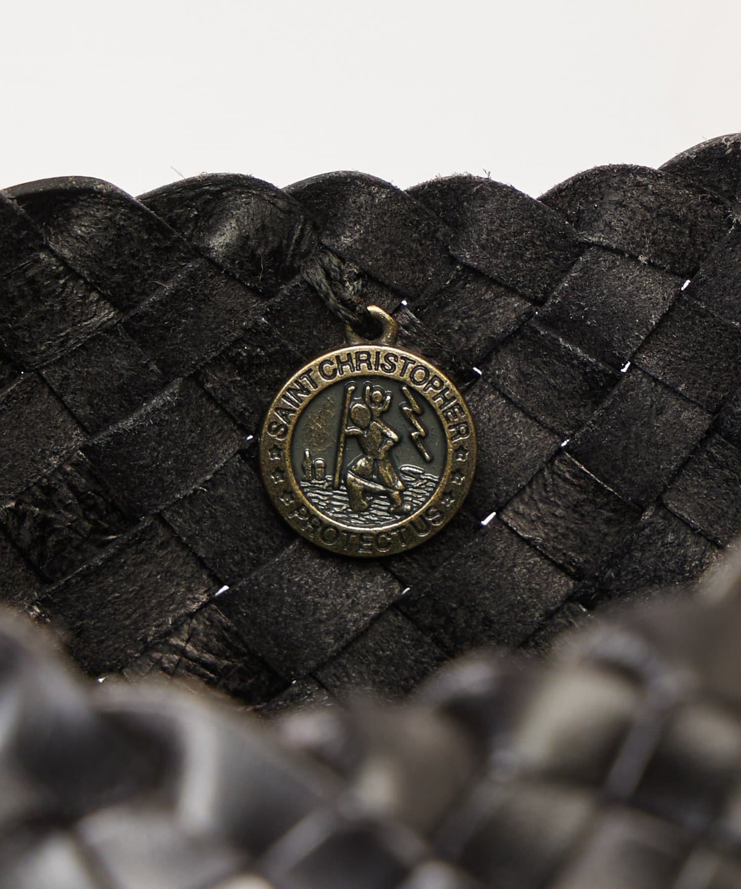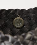 革の紐を職人が手作業で丁寧に編み込み、斜めの編み目模様に仕上げた味のあるアイテム。